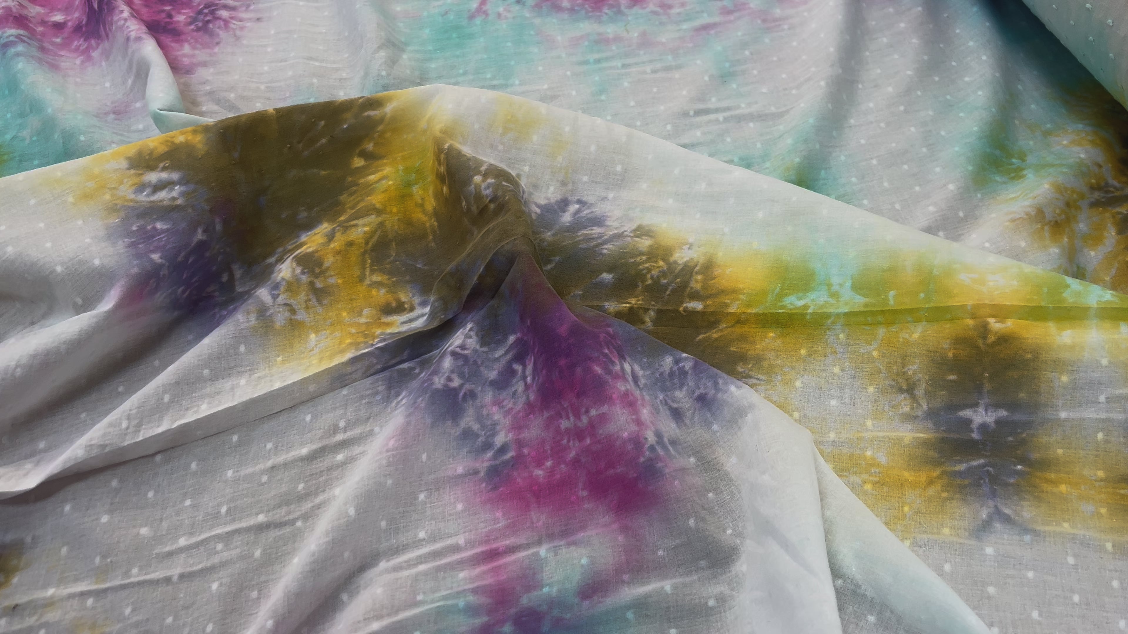 DOUBLE GAZE TYE AND DYE ARC EN CIEL PLUMETIS COTON ORGANIQUE CERTIFICATION GOTS