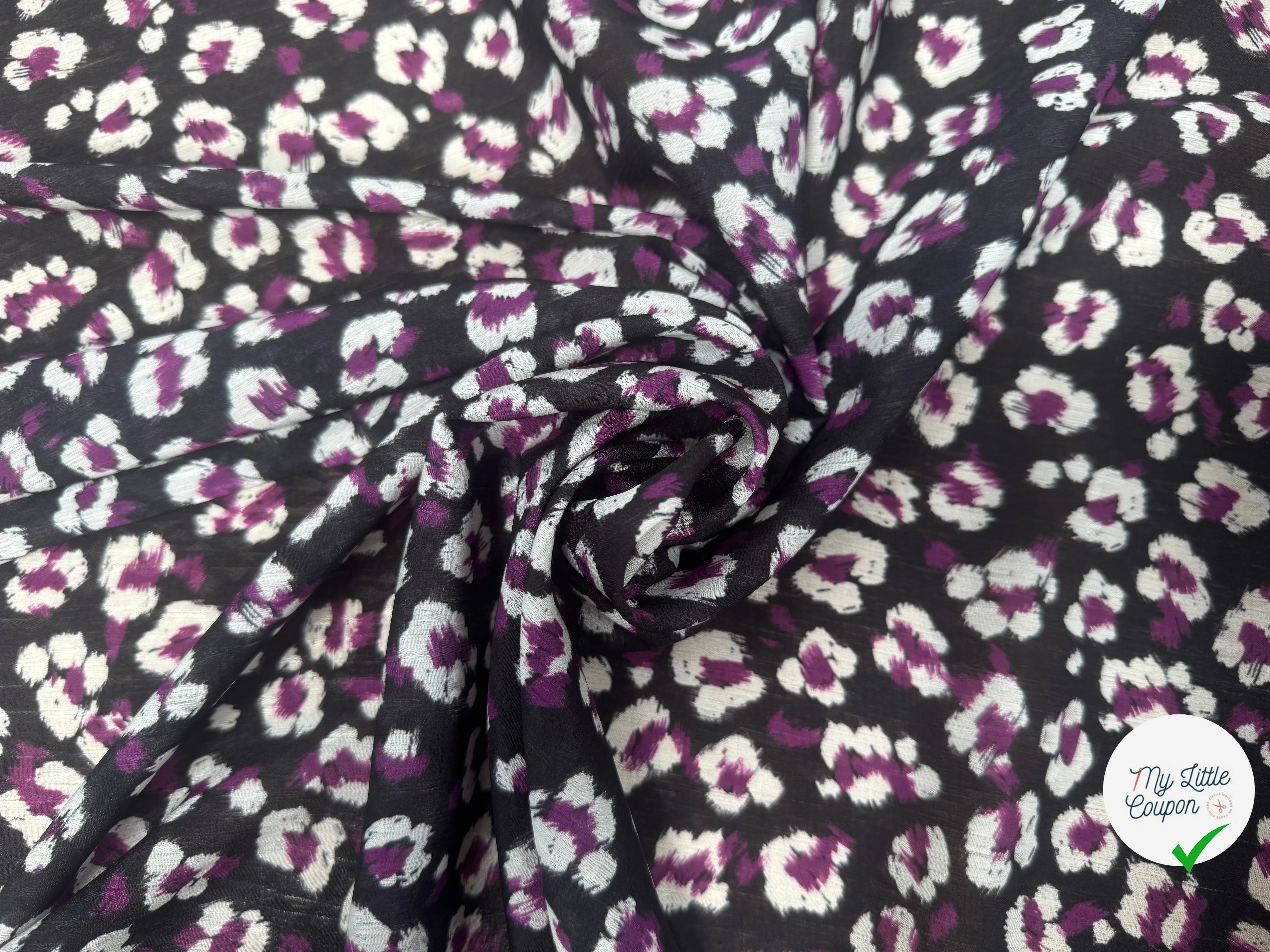 CREPON FOND NOIR FLEURS VIOLET ET BLANC
