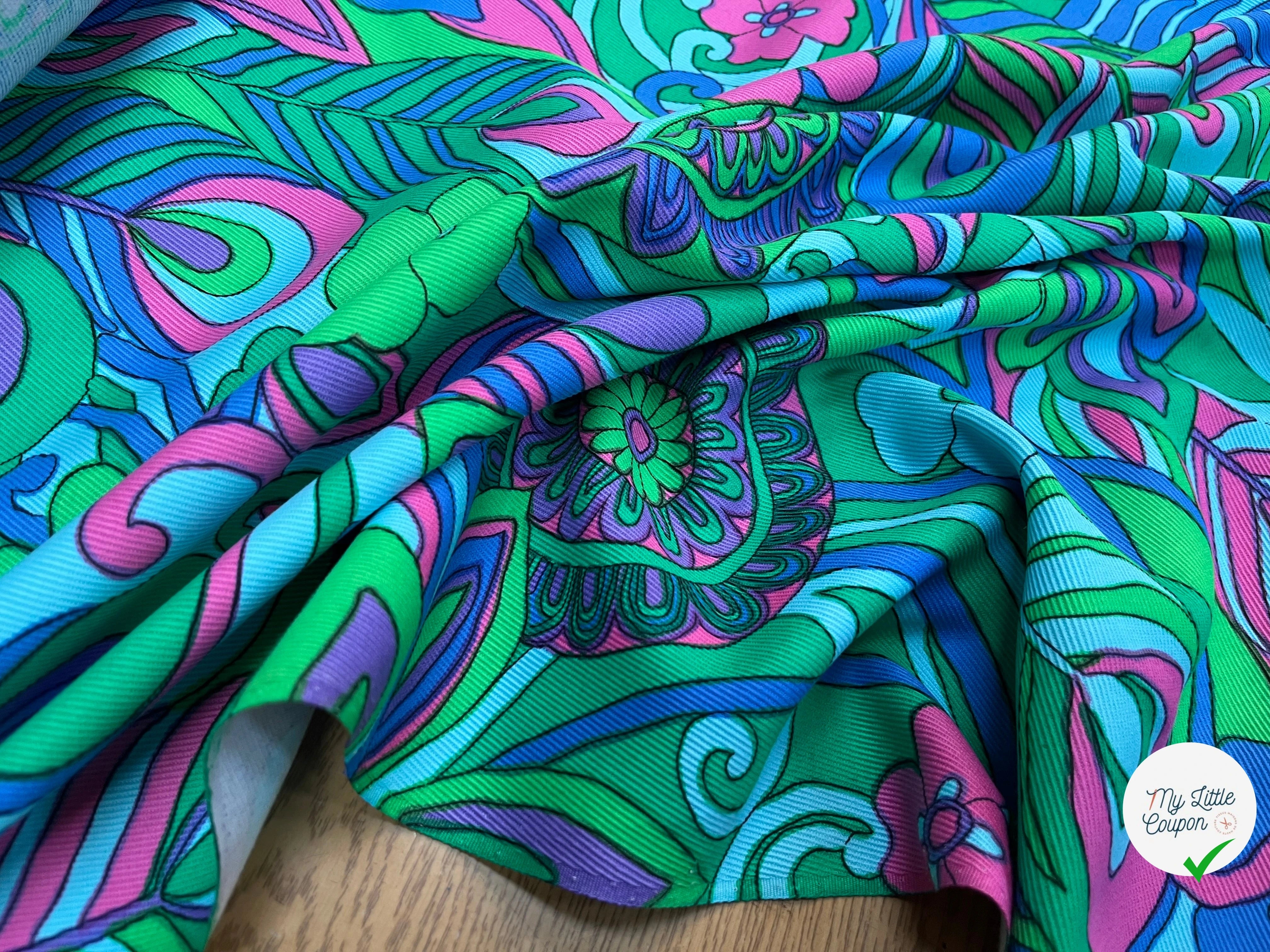GABARDINE DE COTON STRIÉE MOTIF GROSSES FLEURS VERT BLEU ROSE 90CM