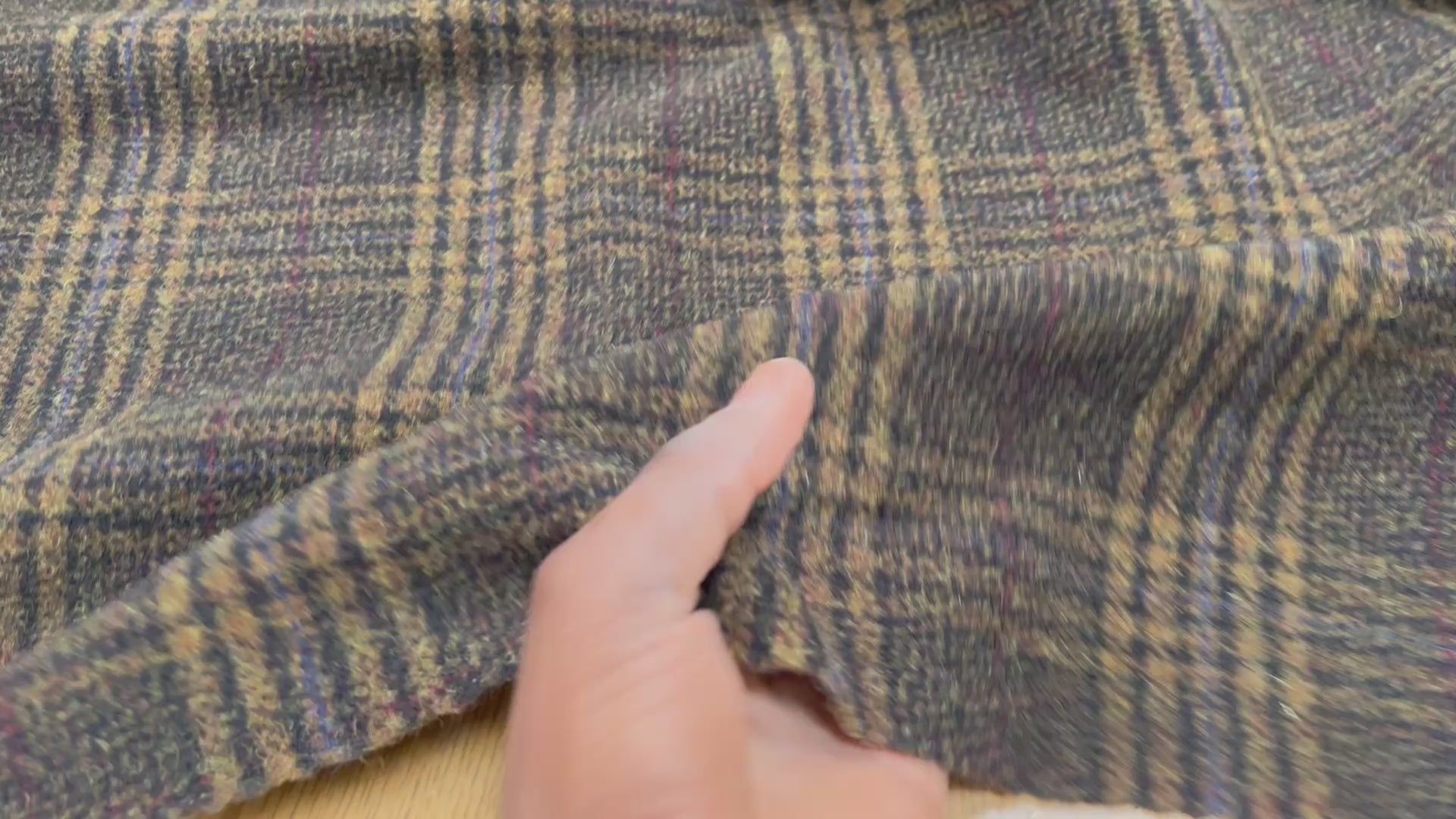 - Motif chiné kaki et noir — nuance polyvalente, facile à assortir avec doublures et boutons.