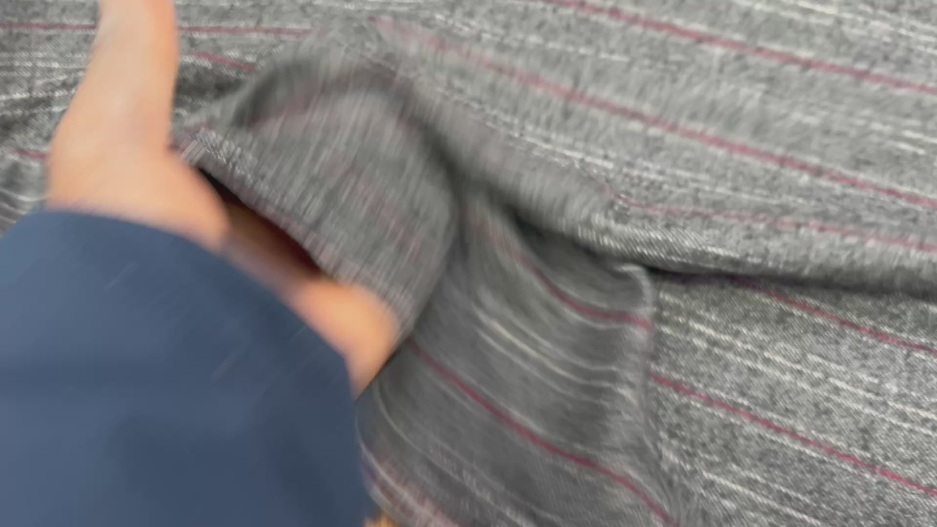 SERGÉ DE LAINE VISCOSE GRIS RAYURES ROUGE ET BLANC 31% LAINE 27% VISCOSE