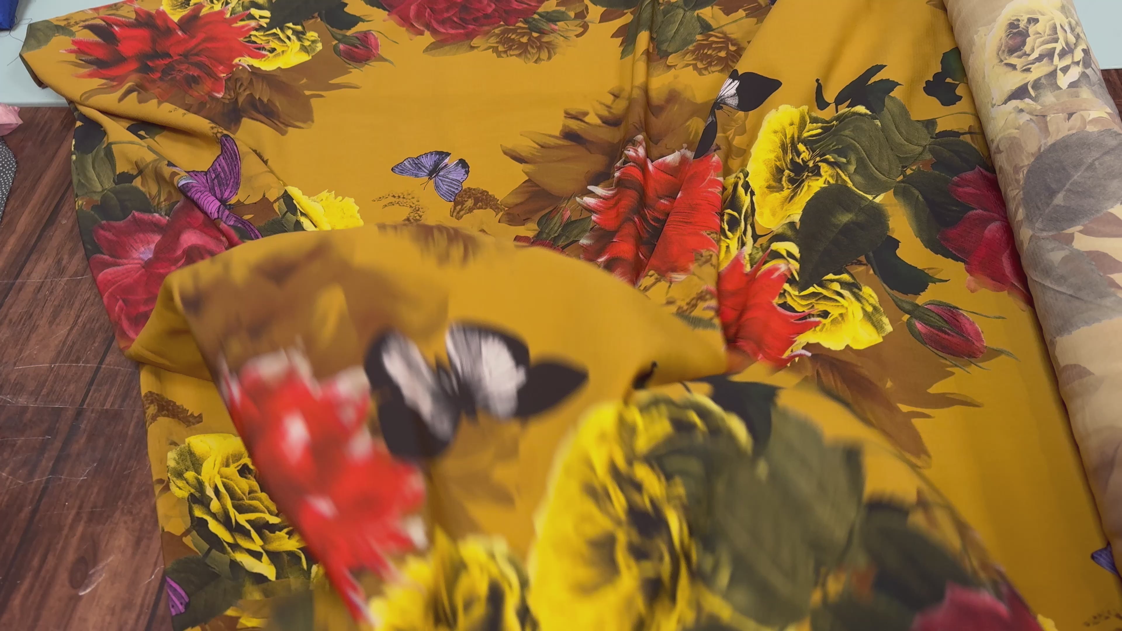 CREPE GAUFFRÉ JAUNE PAPILLONS & FLEURS