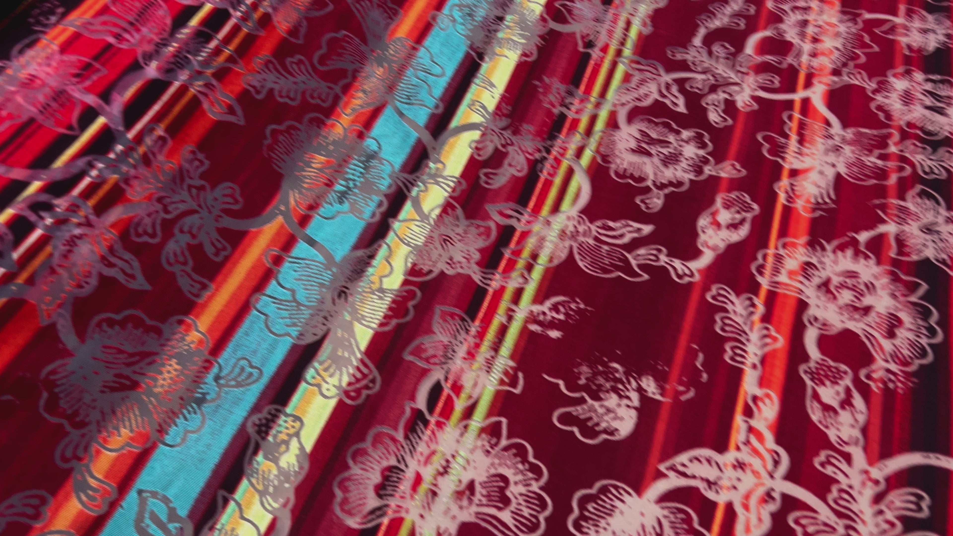 MAILLE DEVORÉE DE FLEURS RAYÉE FOND ROUGE