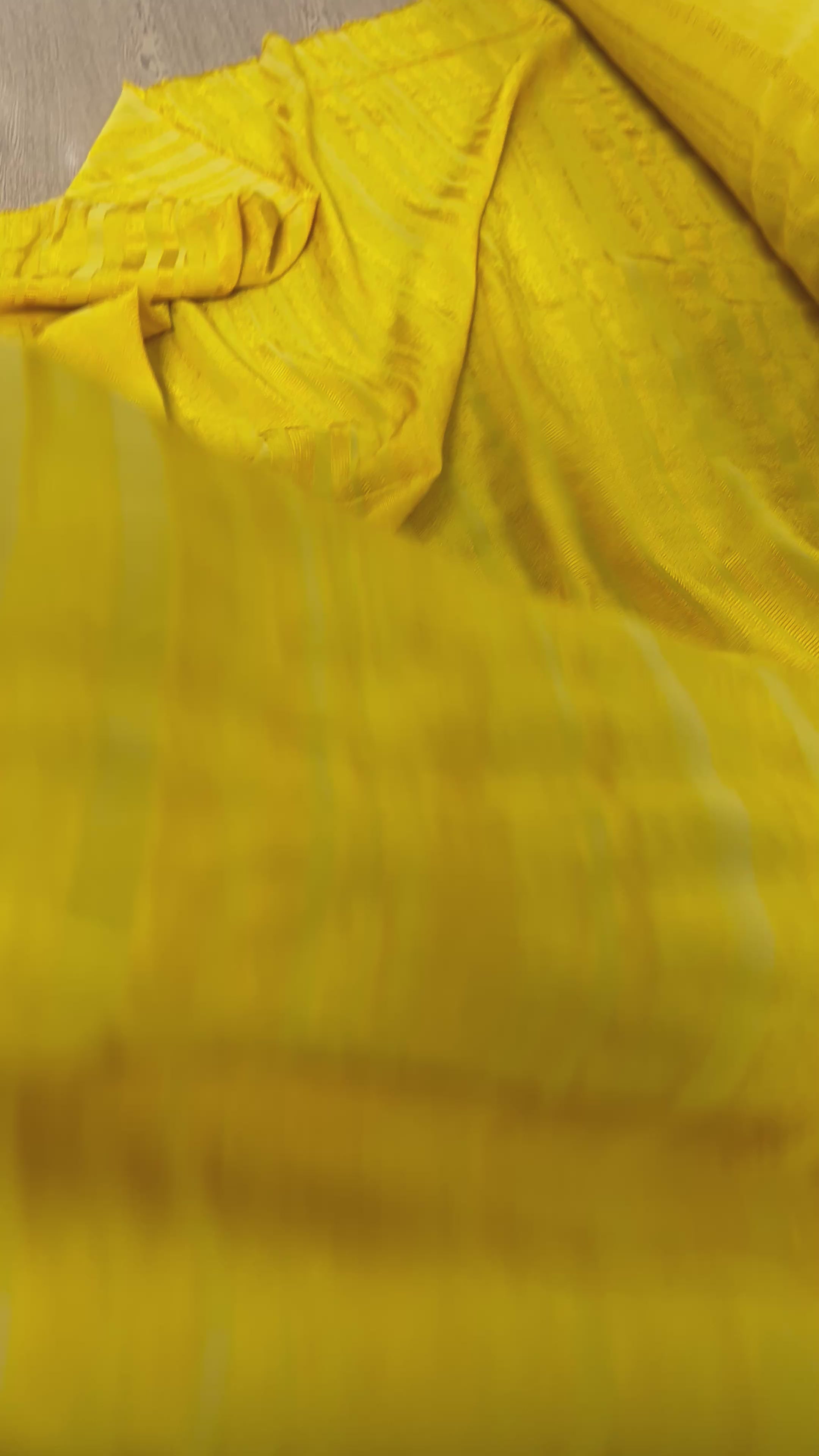 Découvrez notre magnifique tissu en viscose uni jaune à rayures texturées, un tissu de luxe en fin de rouleau, soigneusement revalorisé par notre équipe en France. Ce produit, d'origine italienne, se distingue par sa qualité premium et sa quantité limitée, idéal pour les passionnés de couture.