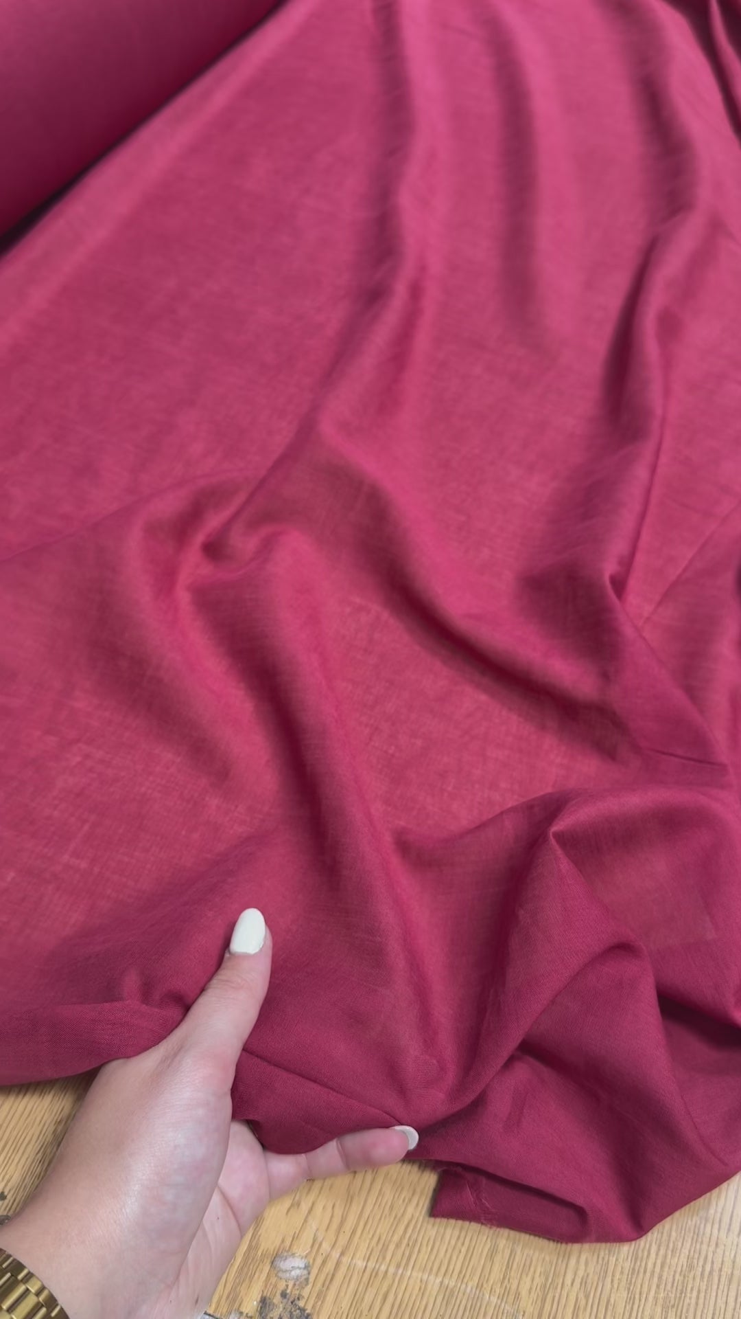 Découvrez notre VOILE DE COTON UNI ROUGE BORDEAUX, un tissu exceptionnel fabriqué en Italie, idéal pour vos projets de couture et de décoration. Composé à 100% de coton, ce voile légèrement transparent allie élégance et fonctionnalité. Sa teinte rouge bordeaux en fait un choix parfait pour apporter une touche de chaleur à n'importe quel espace.