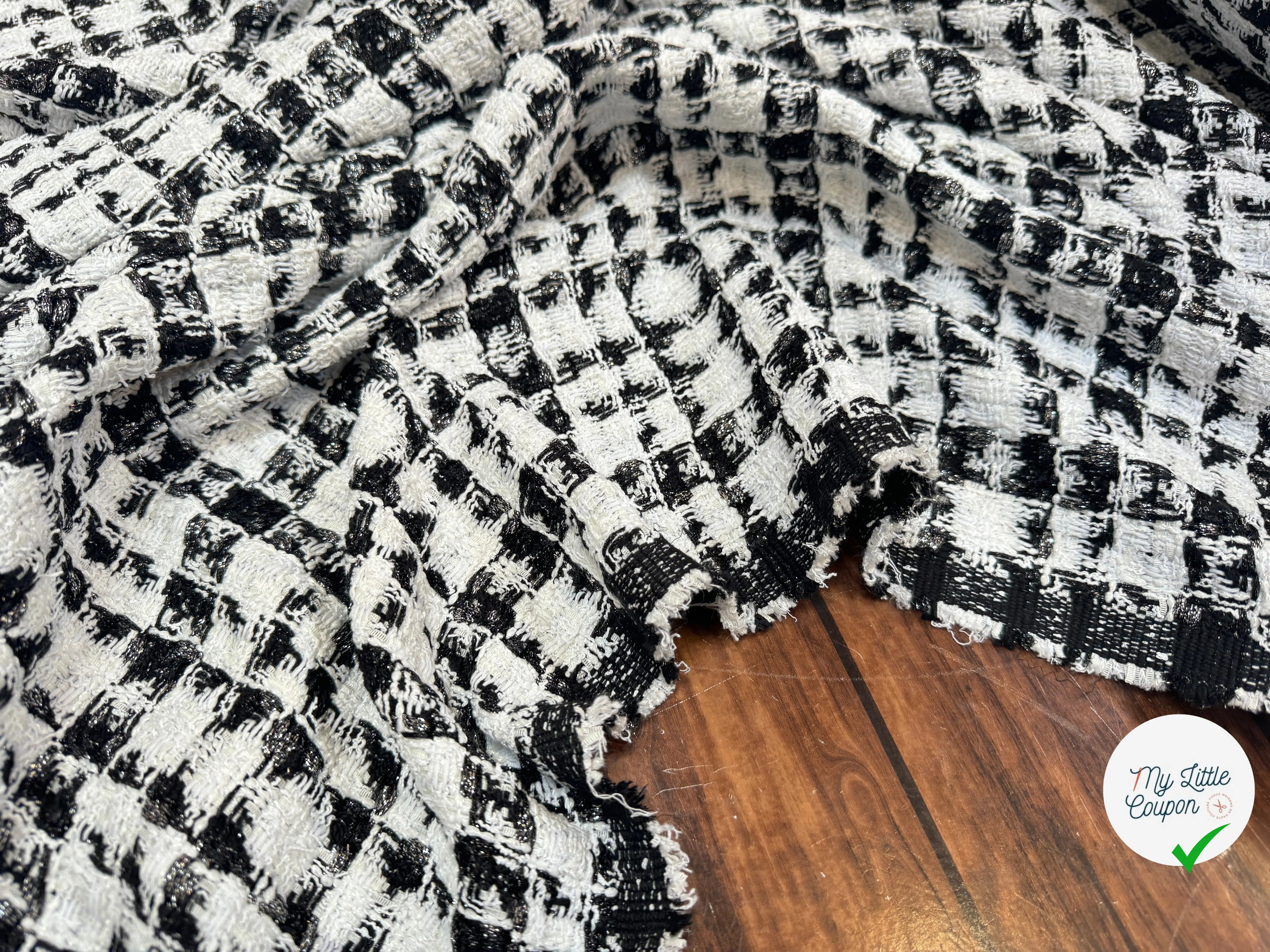 Description : Fabriqué en France 🇫🇷, ce tweed de prestige incarne l'élégance et le savoir-faire artisanal. Ce tissu d'exception est conçu pour des créations sophistiquées, parfait pour des vêtements tels que des vestes, tailleurs, ou accessoires haute couture. Son mélange de fibres assure une texture luxueuse, tout en garantissant confort et durabilité.