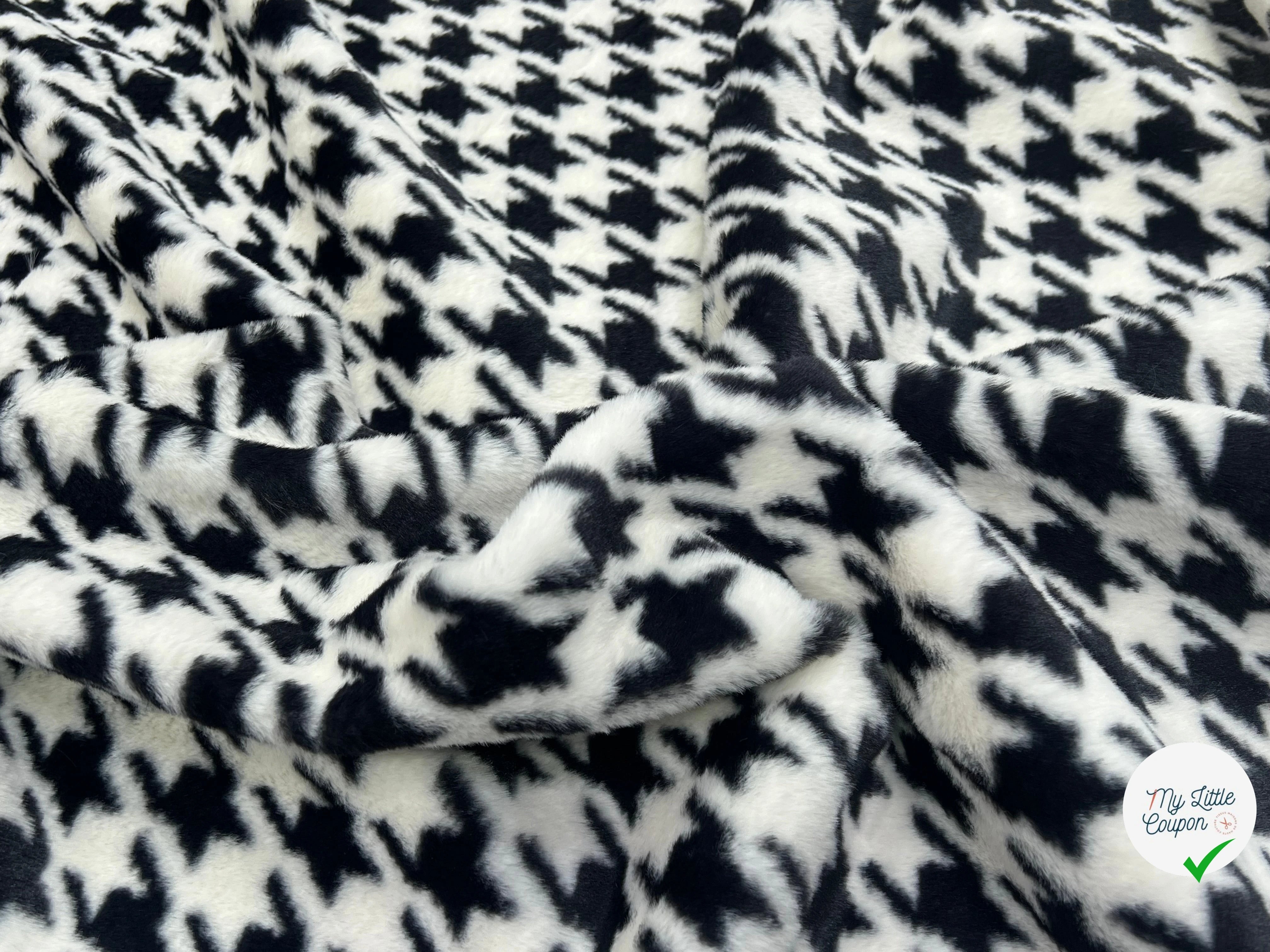 FOURRURE À POILS DOUX PIED DE COQ BLANC NOIR