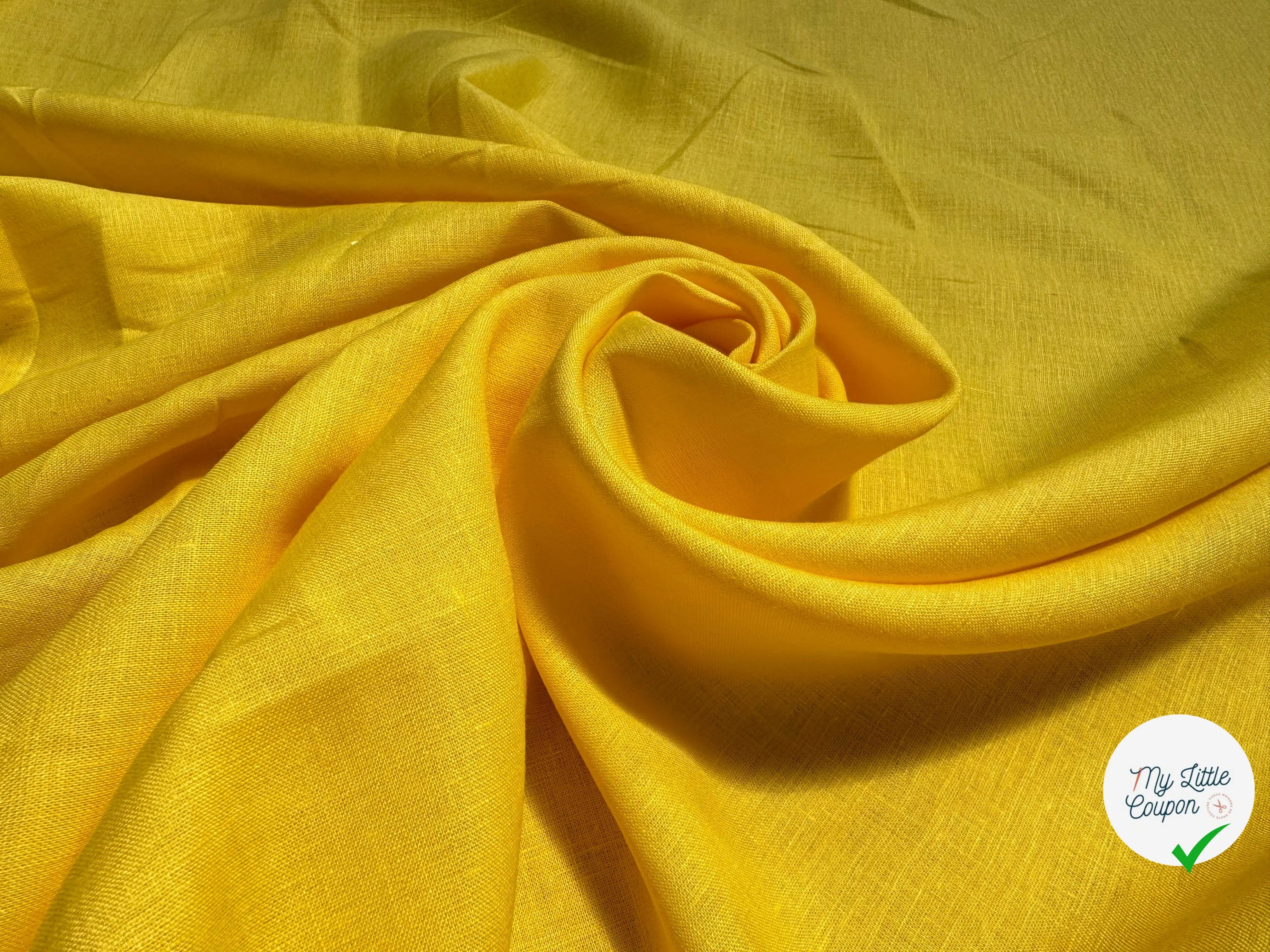 Découvrez le LIN JAUNE OR UNI, un tissu de qualité supérieure fabriqué en Italie, reconnu pour sa finesse et sa durabilité. Avec une laize de 156 cm, il offre une excellente surface pour réaliser divers projets de couture avec précision et élégance.
