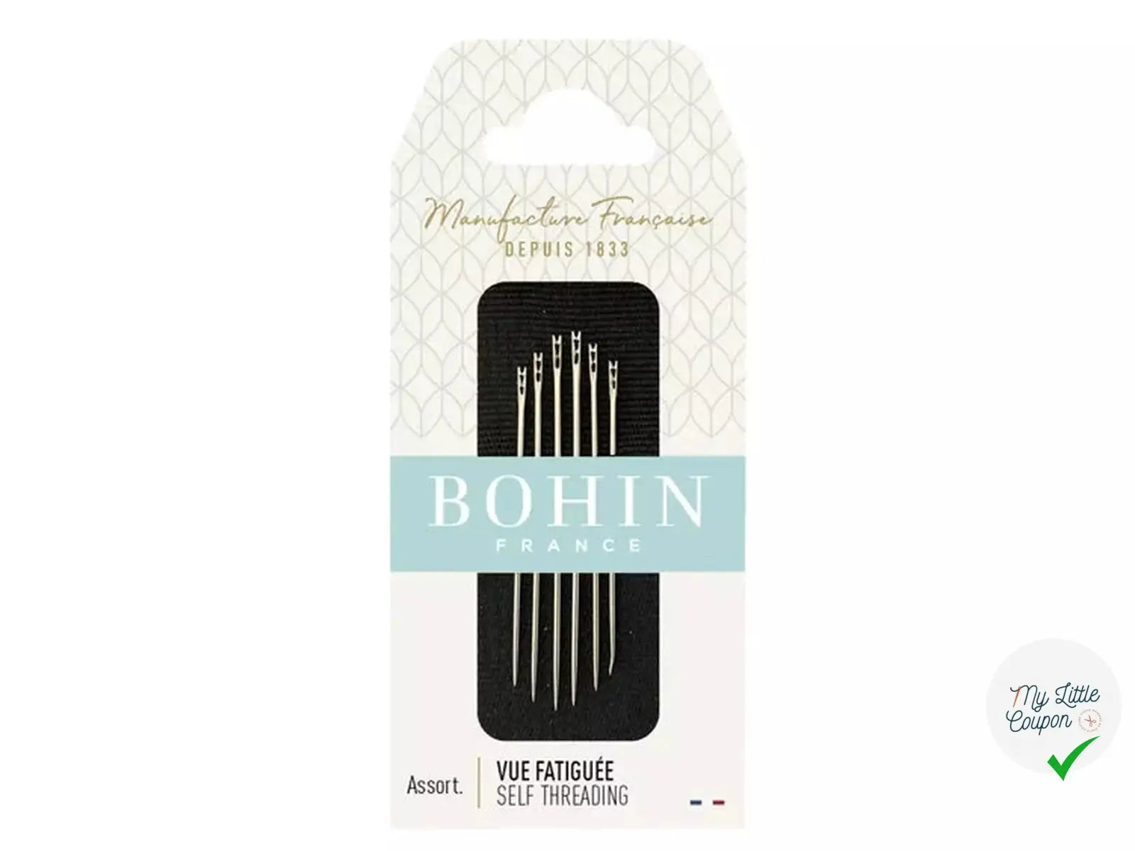 Pochette de 6 aiguilles. Cet assortiment d'aiguilles enfilage facile BOHIN vous offrira davantage de flexibilité dans la réalisation de vos travaux de couture. Ces aiguilles BOHIN possèdent un astucieux système qui permet un enfilage facile. Le chas de ces aiguilles est ouvert sur le haut ce qui permet de laisser passer votre fil. Très pratique pour les personnes ayant des problèmes de vue ou celles qui ne veulent pas perdre de temps.