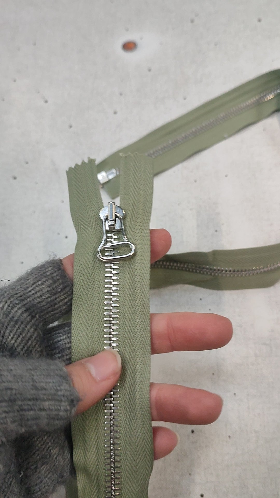 Fermeture éclair métallique séparable RIRI, modèle M6, couleur vert clair. Longueur 80 cm. Cette fermeture convient parfaitement aux vêtements, à la maroquinerie et aux accessoires, offrant une réalisation fiable et esthétique.