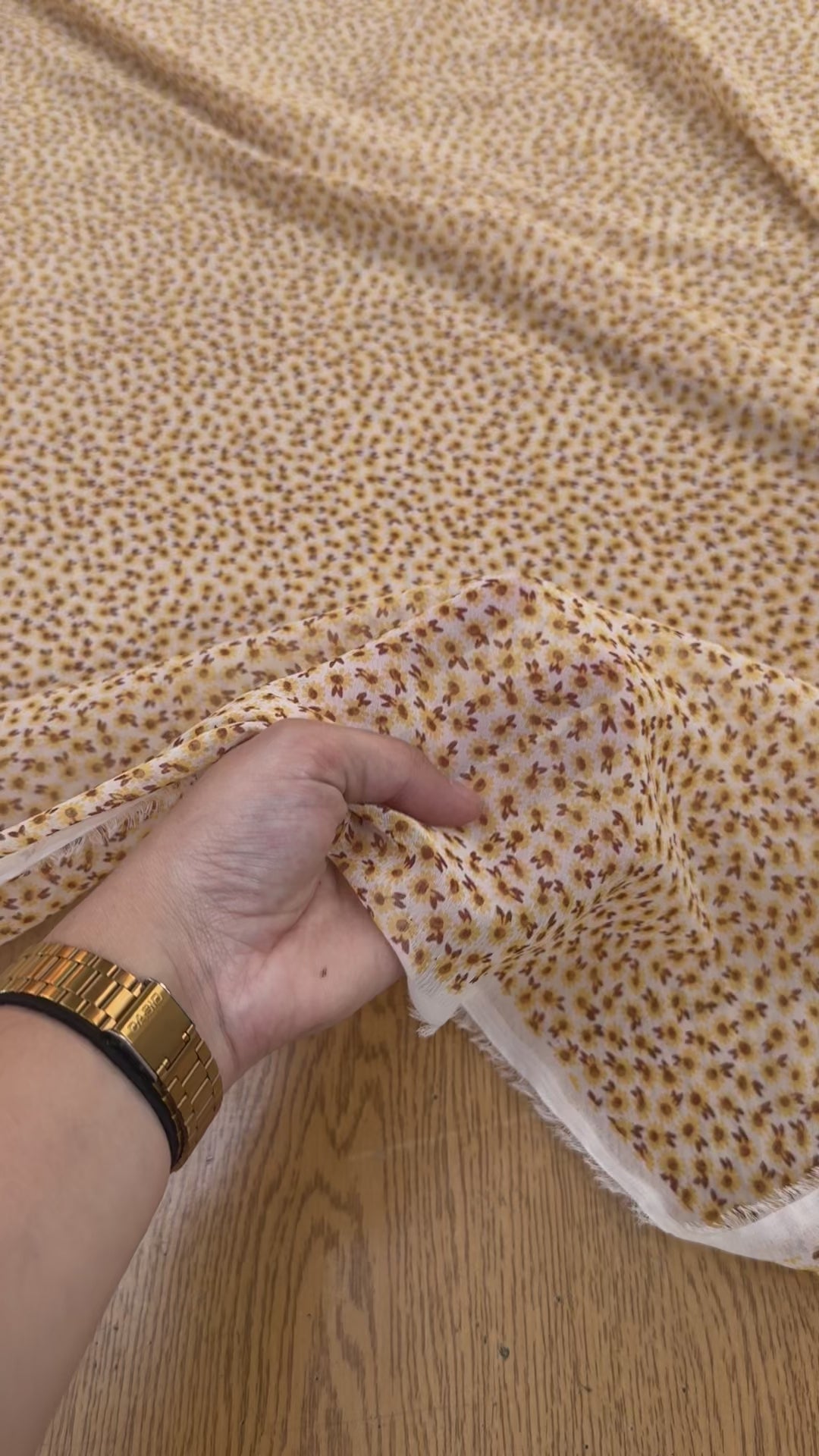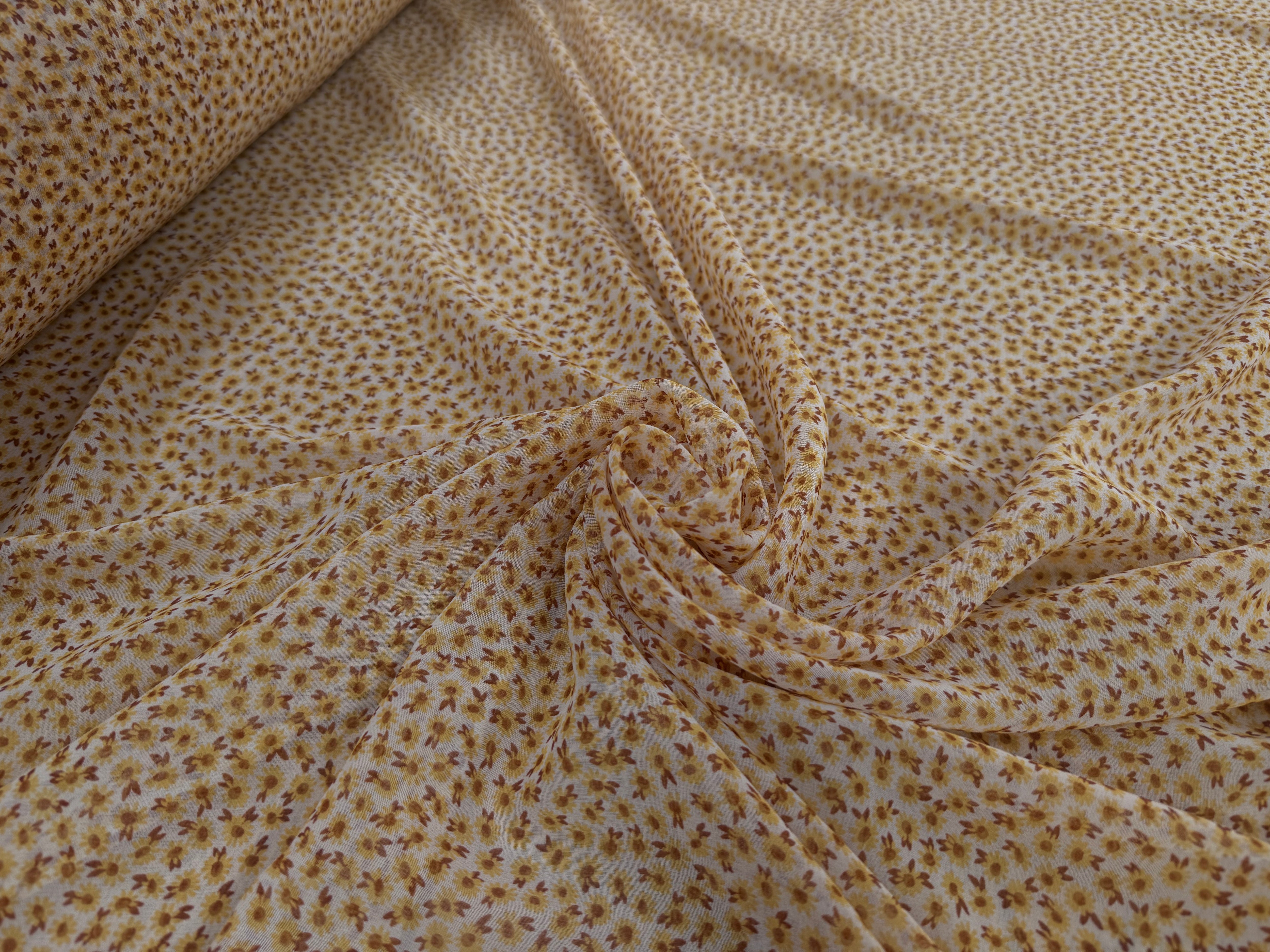 MOUSSELINE FOND JAUNE MOTIFS PETITS TOURNESSOL