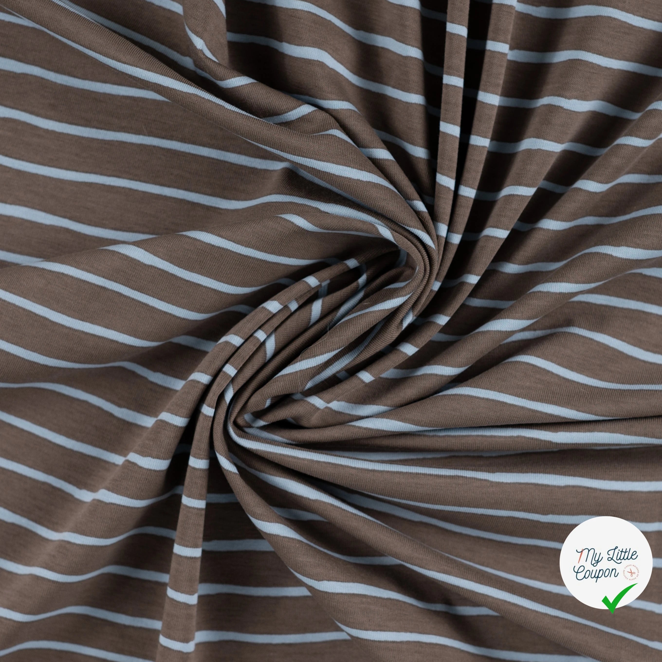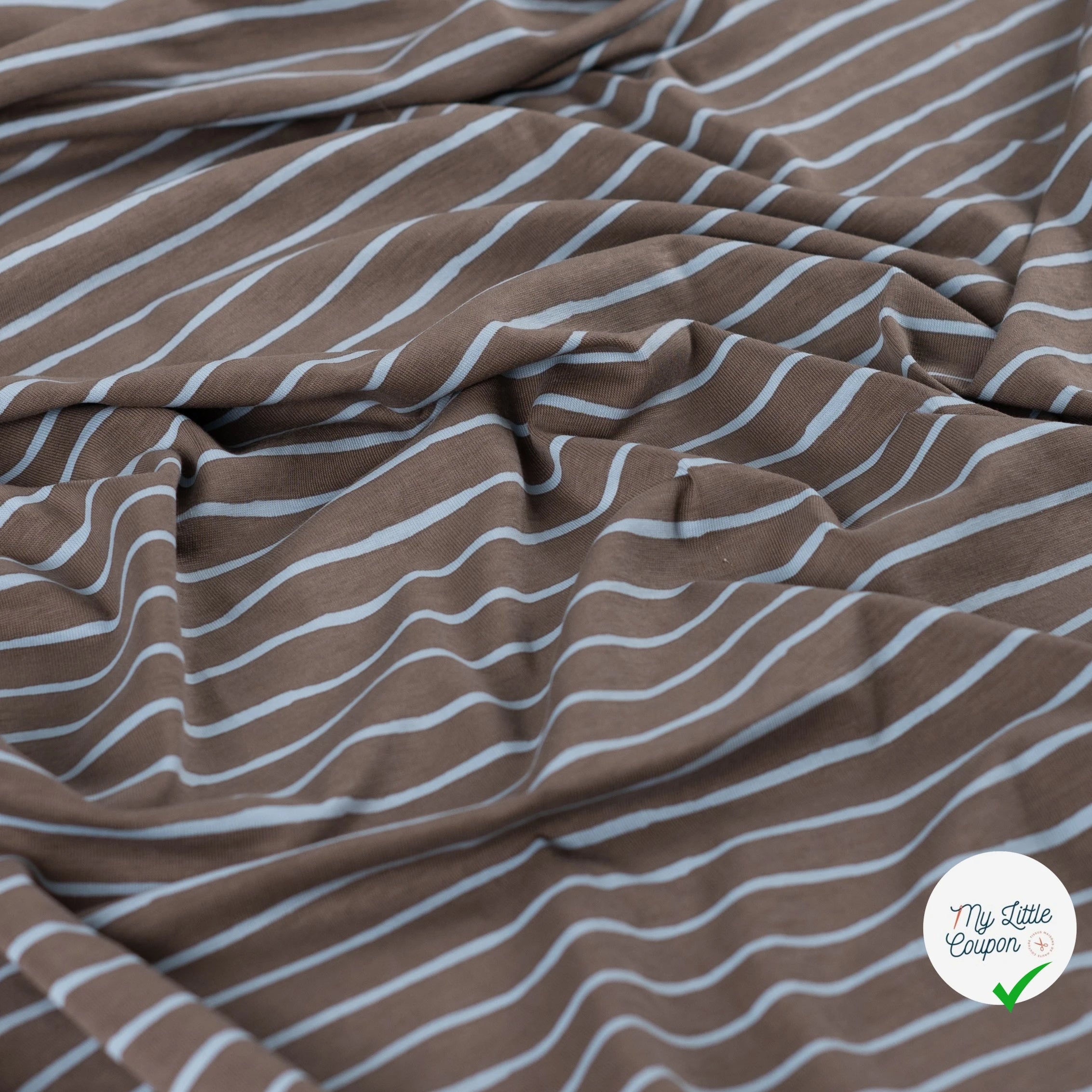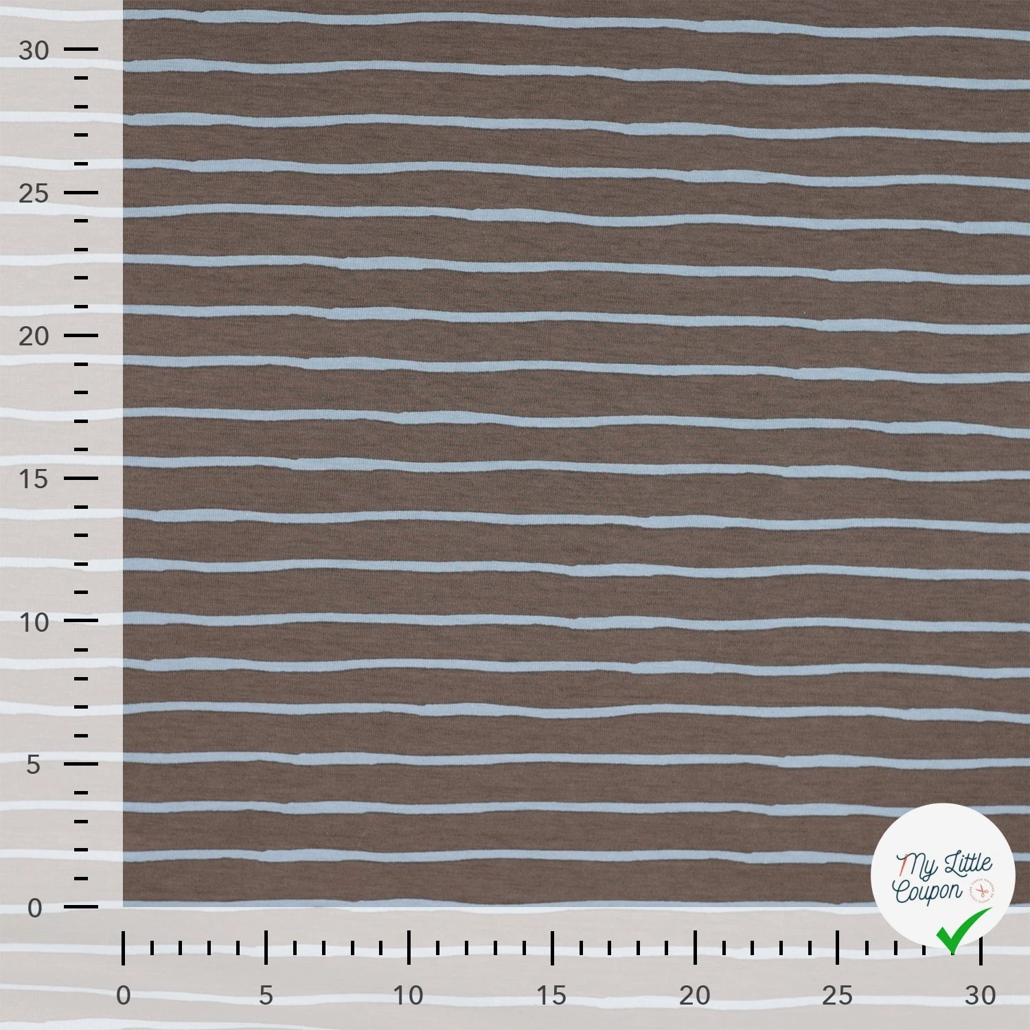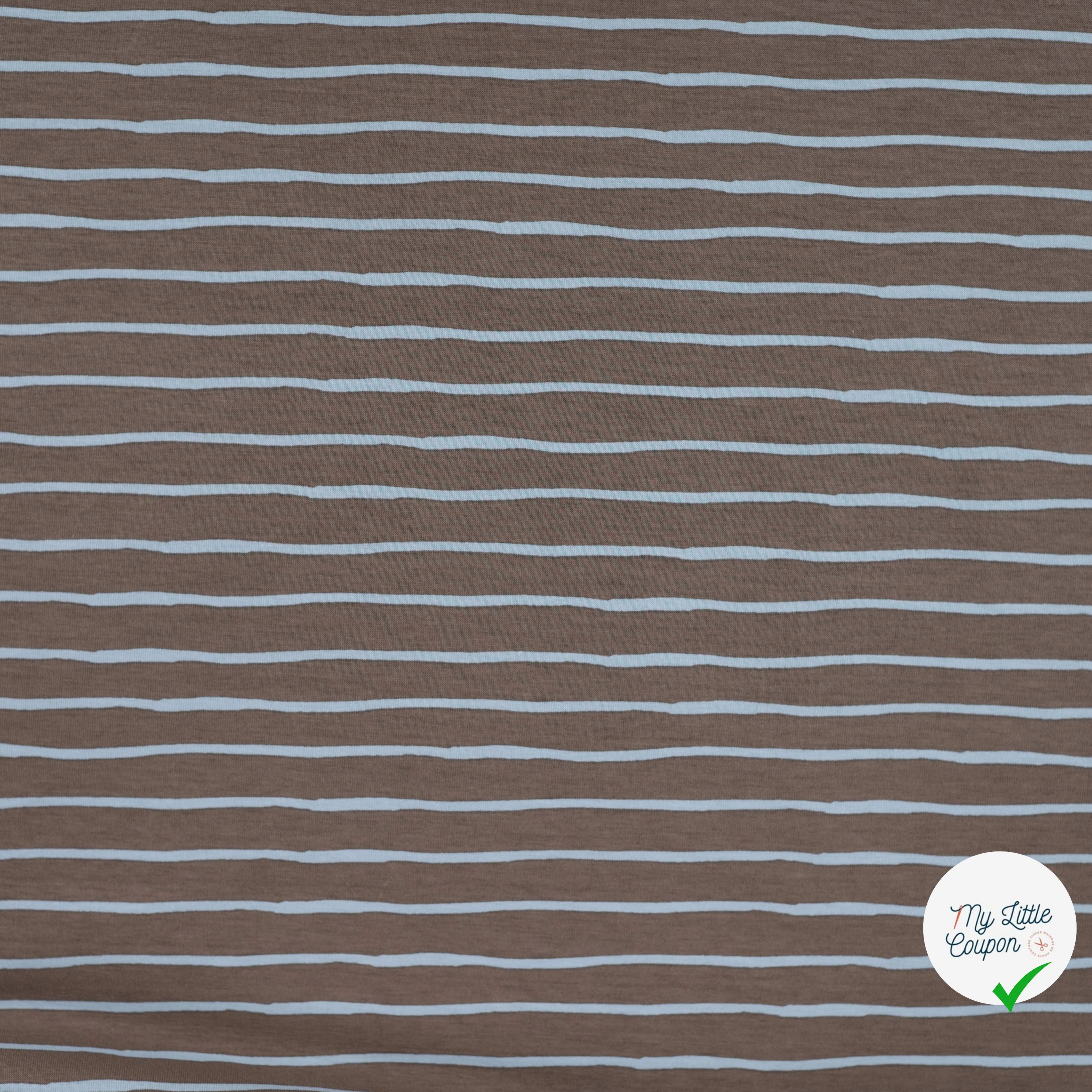 JERSEY DE COTON IMPRIMÉ RAYURES FOND KAKI FONCÉ