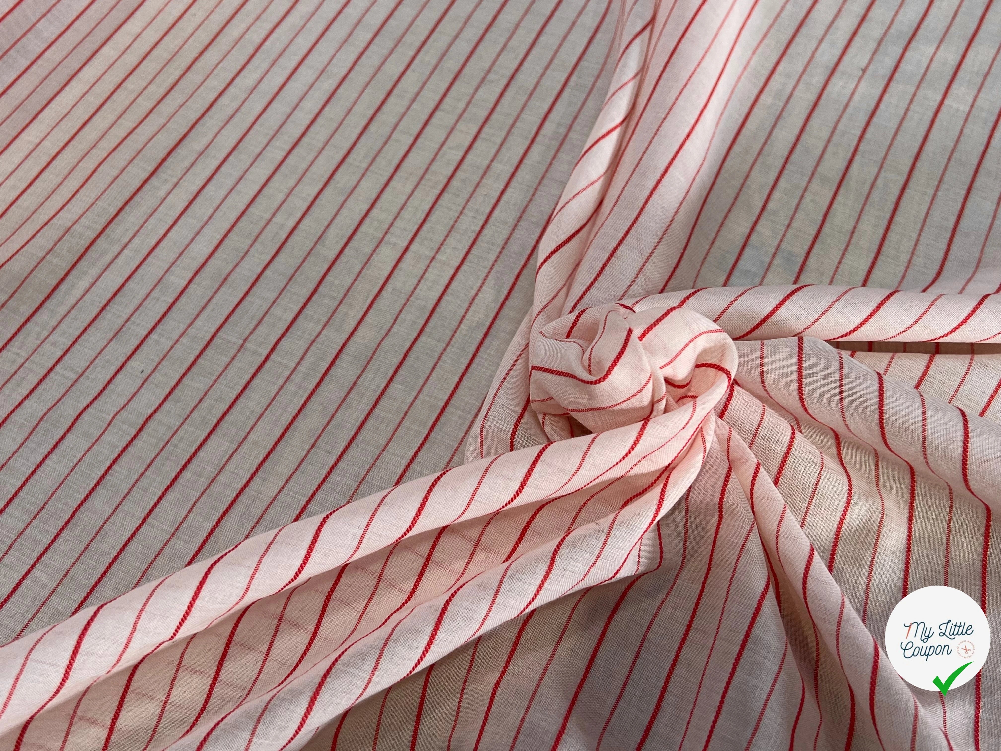 VOILE DE COTON BAIN ROSE CLAIR RAYURES ROUGE
