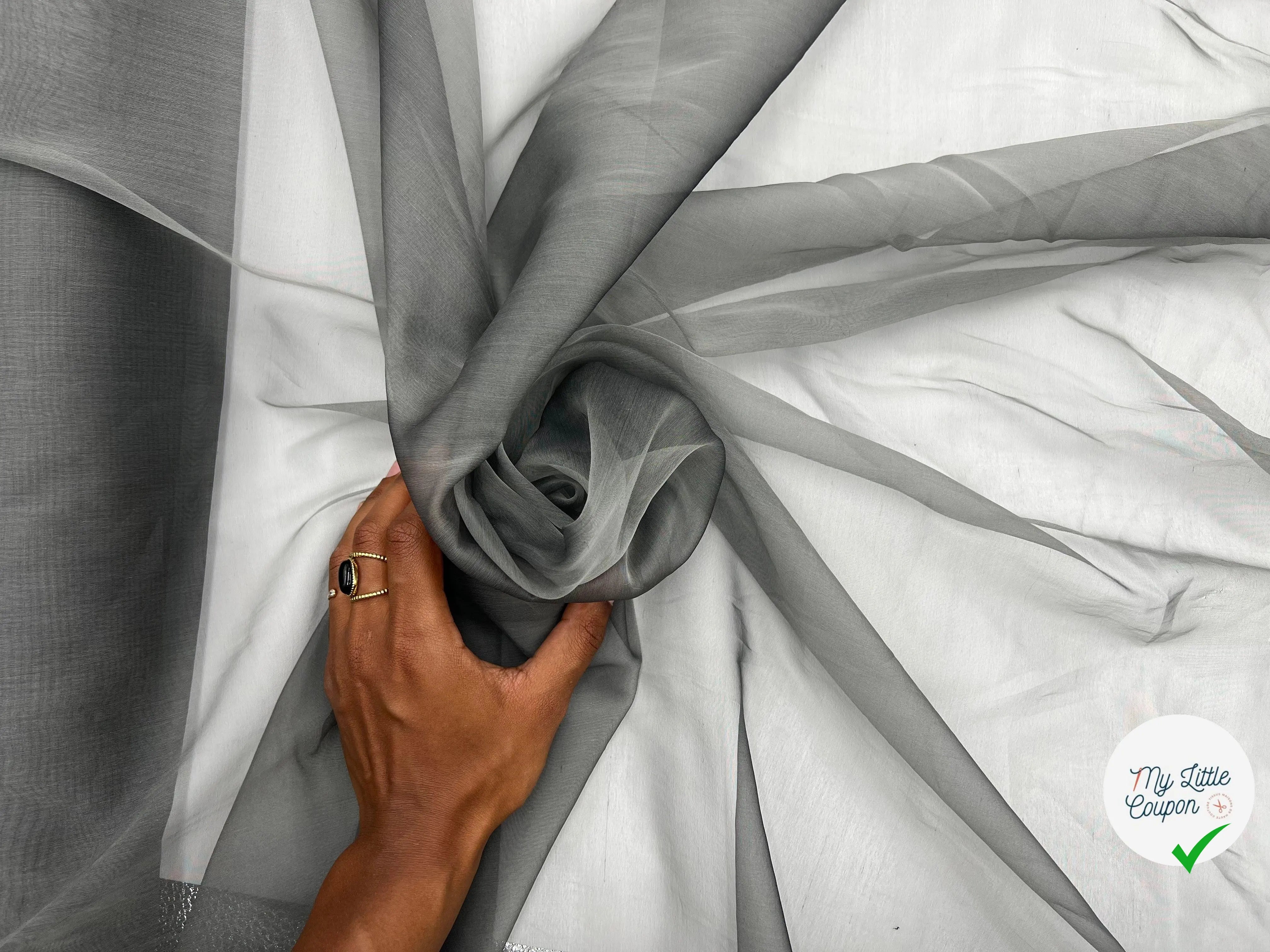 ORGANZA DE SOIE COULEUR NUAGES DE CENDRES