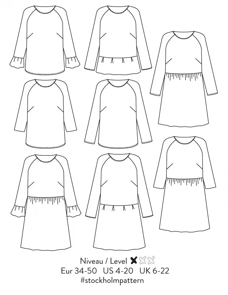 | Tissu laize 140 (cm) : blouse | 120 | 125 | 125 | 130 | 130 | 135 | 135 | 140 | 145 |