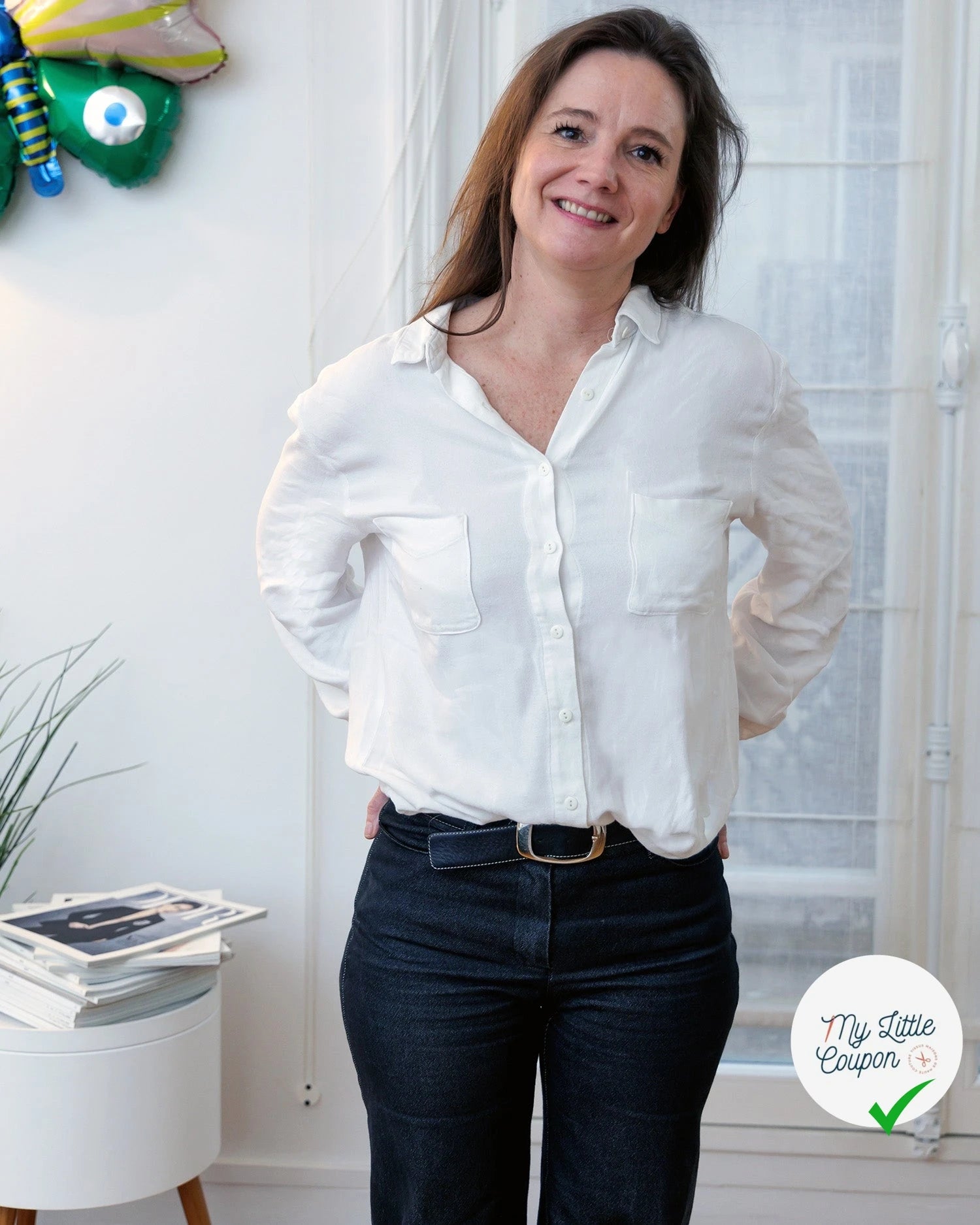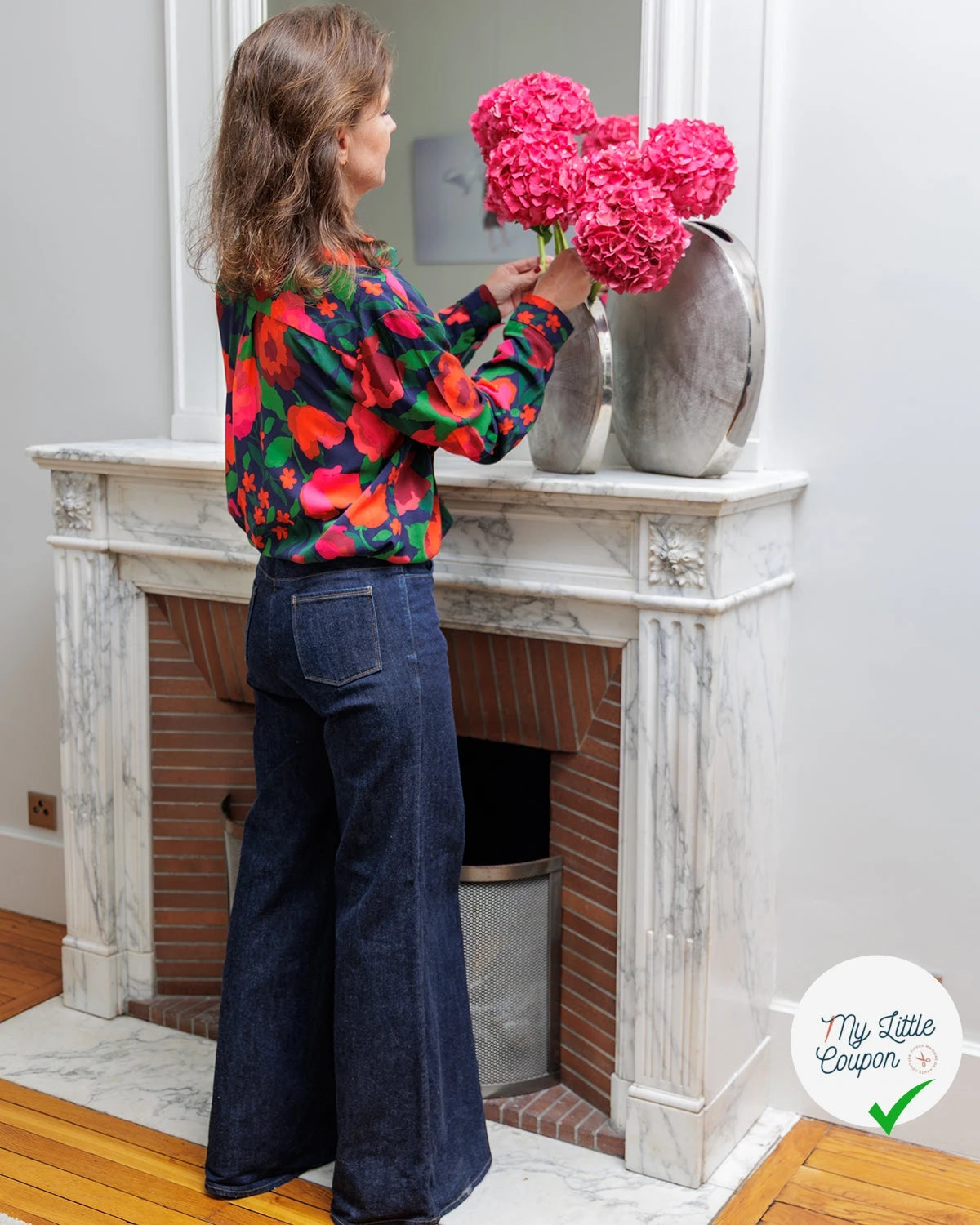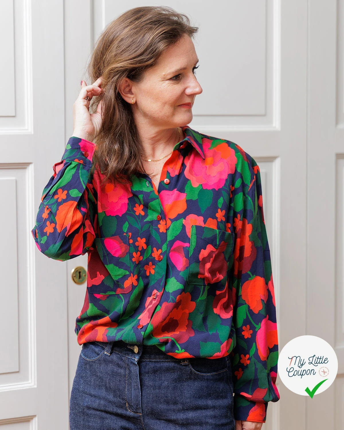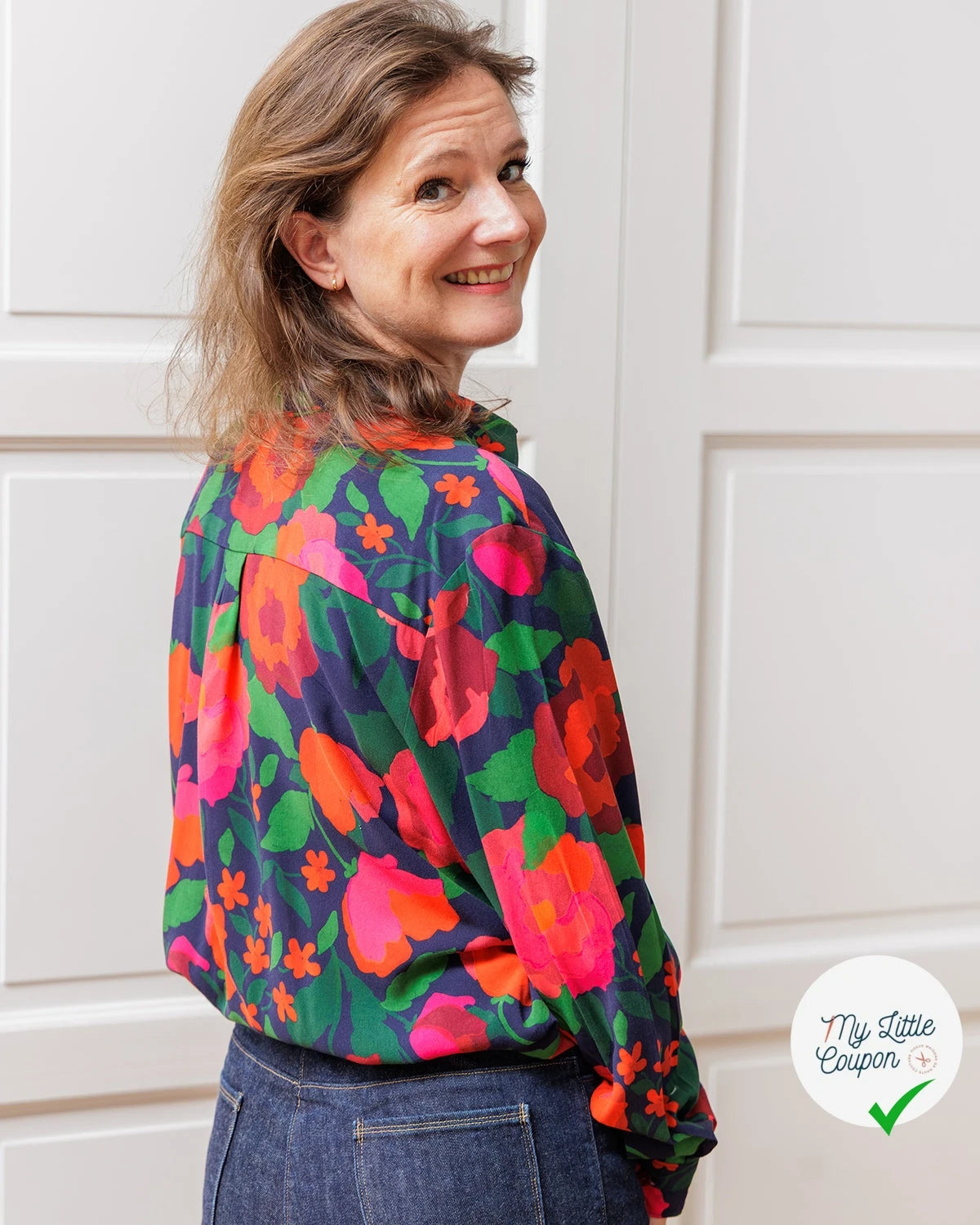Féminine et intemporelle, cette chemise est déclinable à l’envie ! Vous pouvez utiliser un grand nombre de matières. coton, voile, crêpe, viscose... Poids : 150-300 gr/m2, 4,5-8 oz/y2