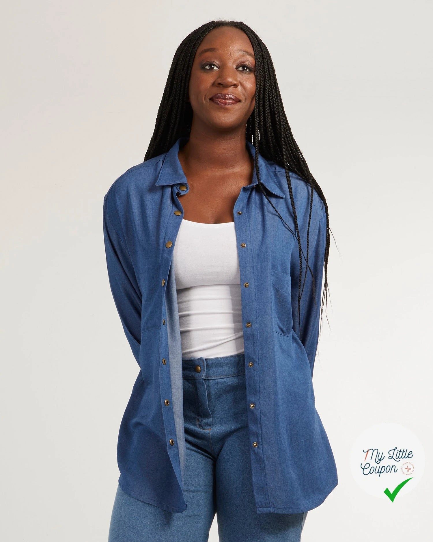 Découvrez le patron de couture Effigie : une chemise oversize au style masculin/féminin qui incarne le chic décontracté.