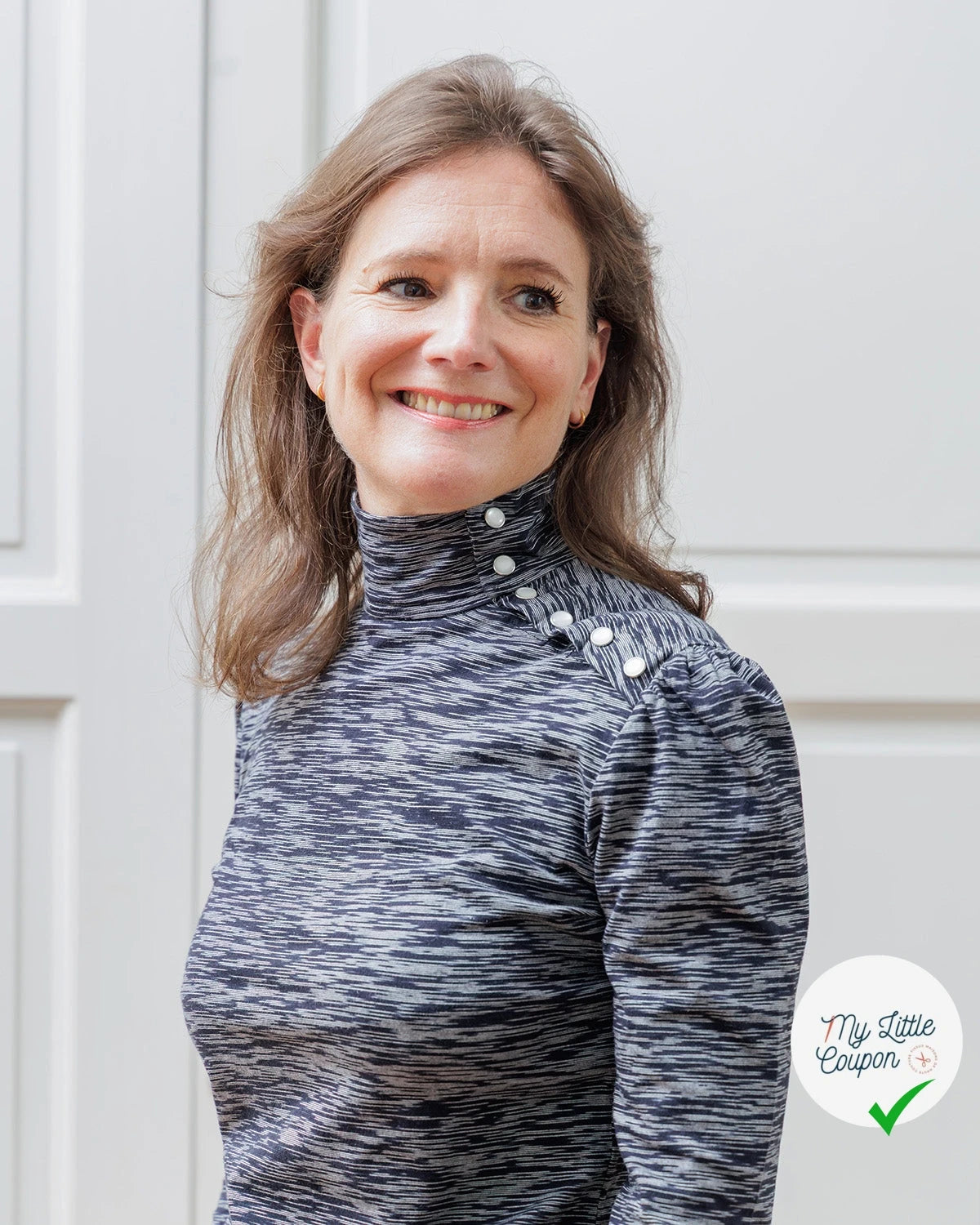 Erell, le T-shirt à col montant et détail boutonné Élégant, moderne et facile à porter, Erell twiste le basique avec son col montant délicat et son boutonnage sur l’épaule gauche. Un clin d’œil couture qui signe la silhouette sans rien sacrifier au confort. Personnalisez votre style grâce à ses 4 déclinaisons de manches : courtes ou longues, version simple pour une ligne épurée, ou ballon pour une touche féminine assumée. Porté rentré dans un jean, sous un blazer ou associé à une jupe, Erell s’adapte à toutes vos envies, du bureau au week-end. Ce modèle se coud exclusivement en jersey de 150–300 g/m² (4.5–8 oz/yd²). Tailles : S à 3XL.