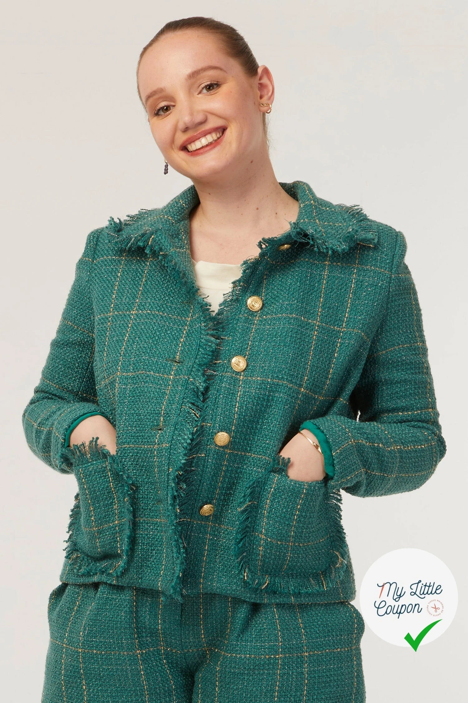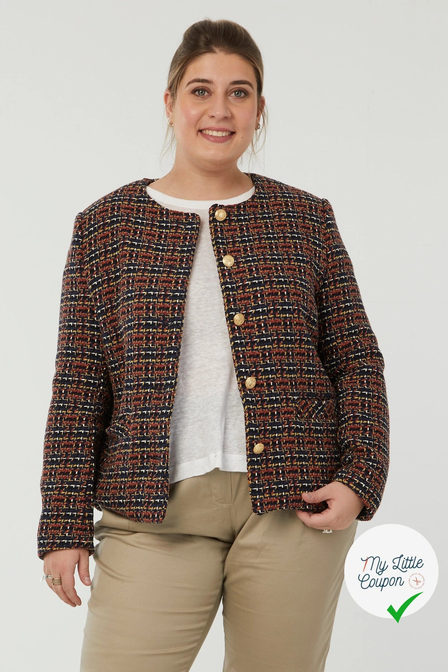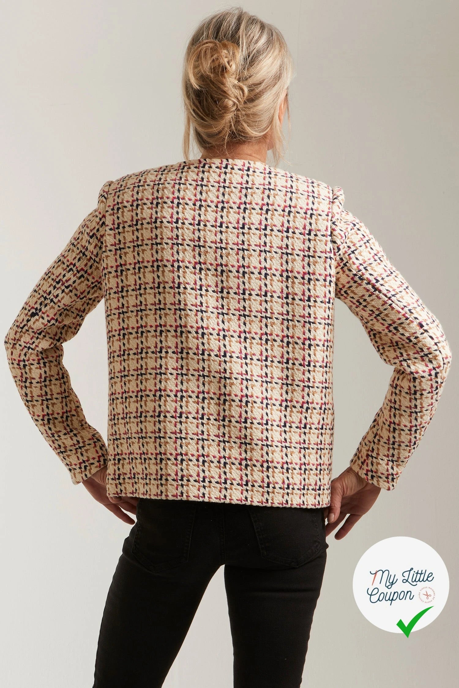 Nancy revisite avec modernité la célèbre veste boîte chère à Mademoiselle Chanel. Élégante, structurée et féminine, elle incarne le chic français dans toute sa splendeur. À porter avec un jean pour un look décontracté chic, ou sur une robe pour une allure plus habillée, Nancy se glisse dans toutes les garde-robes avec naturel.