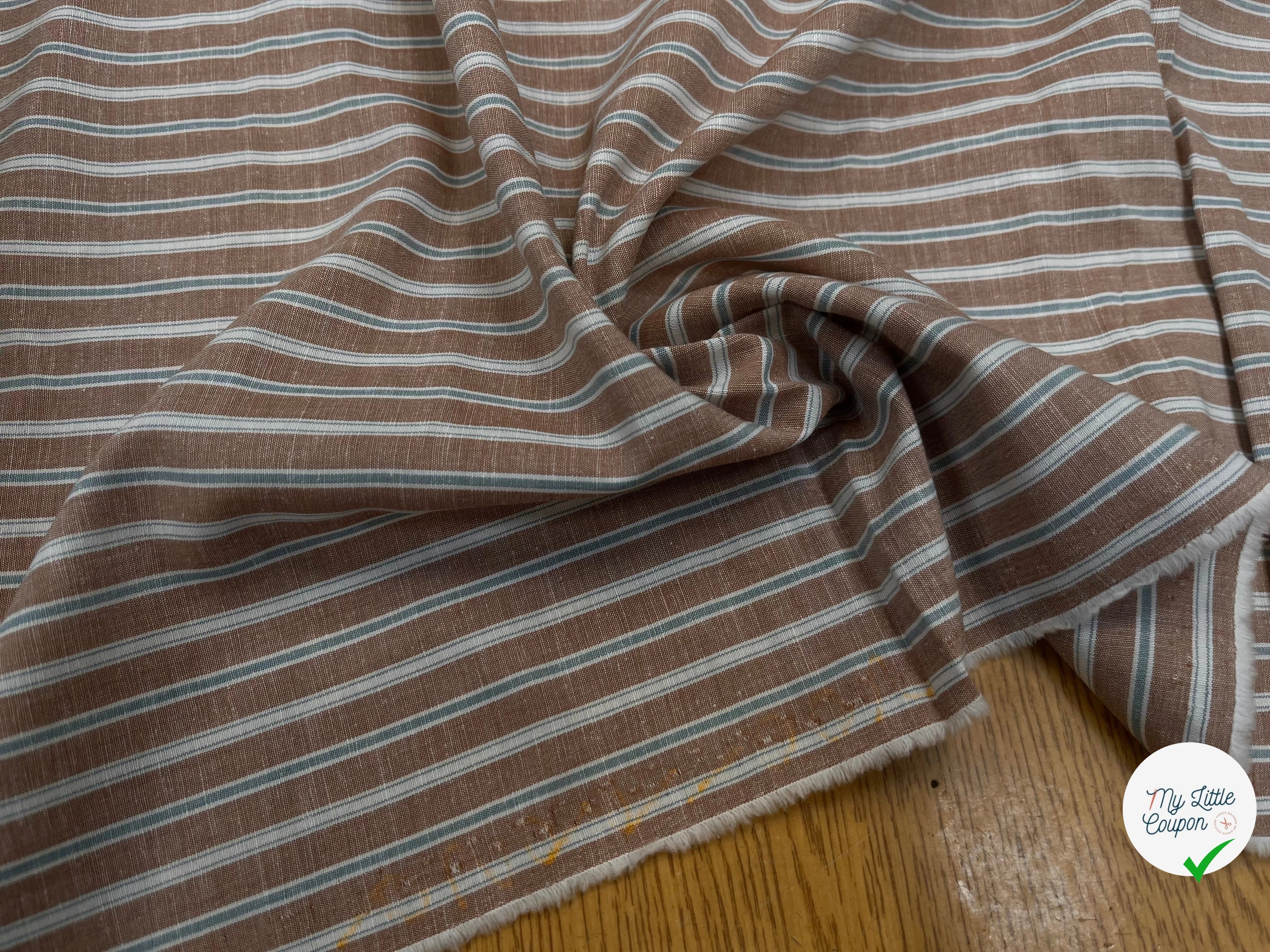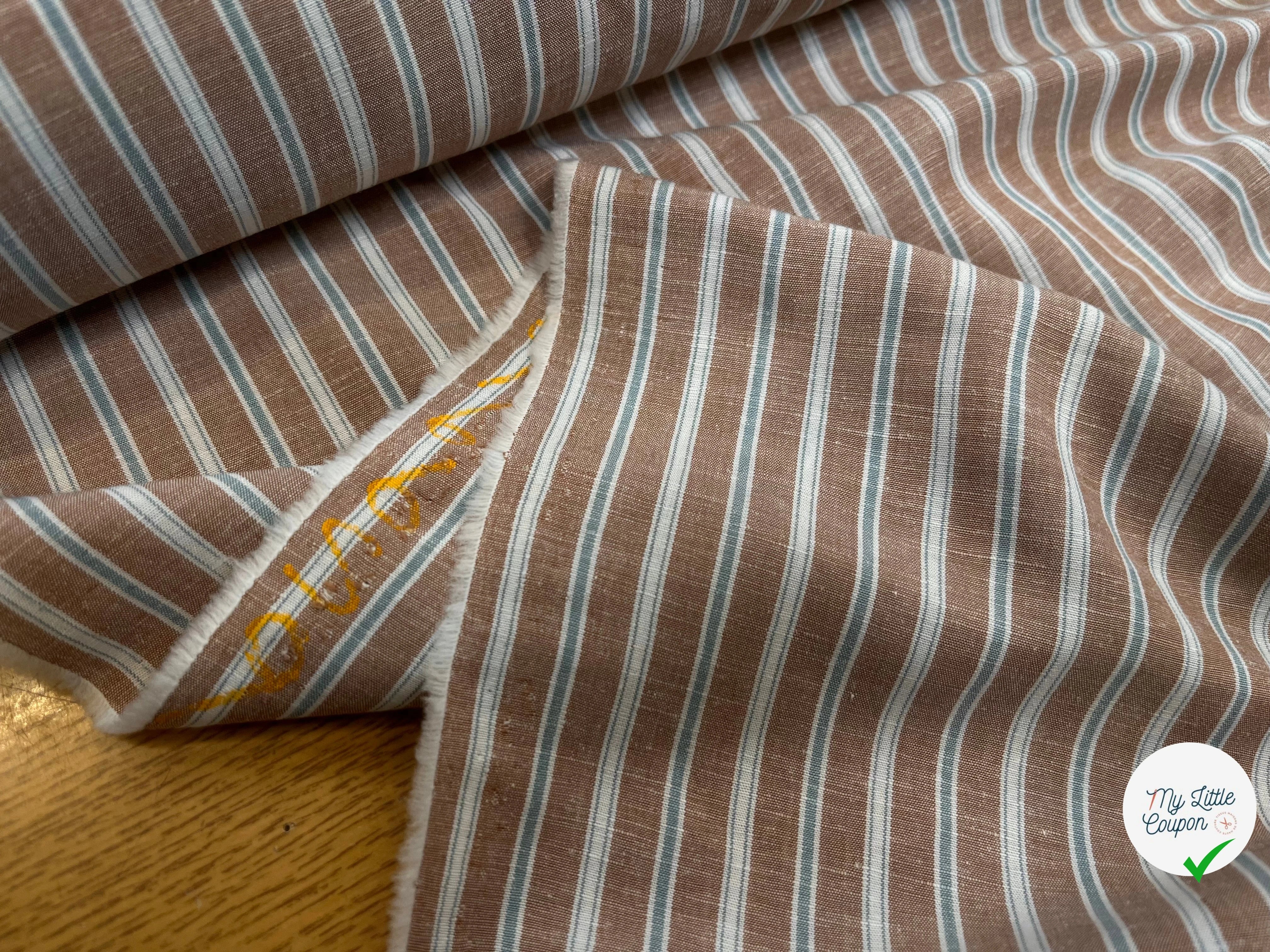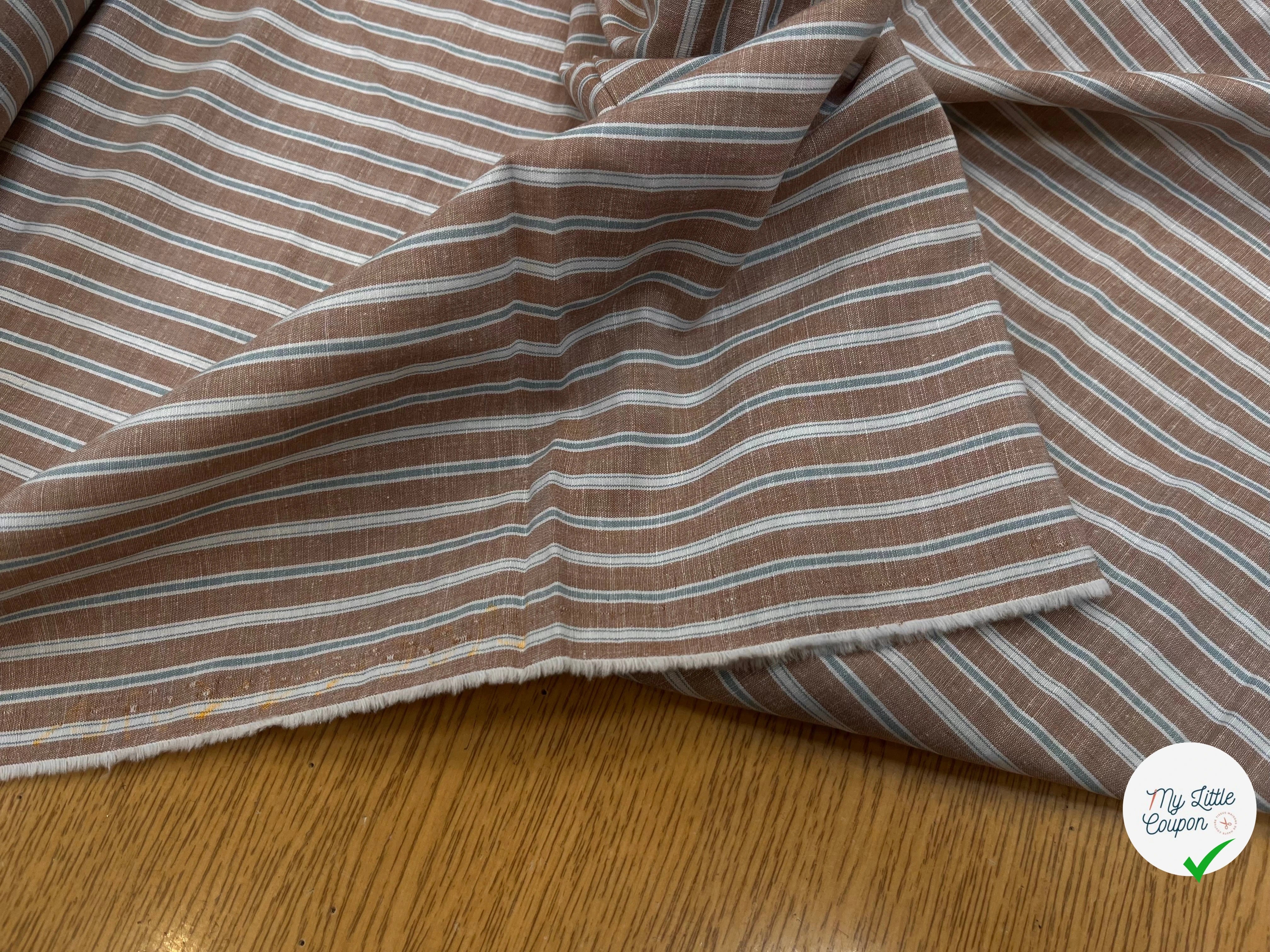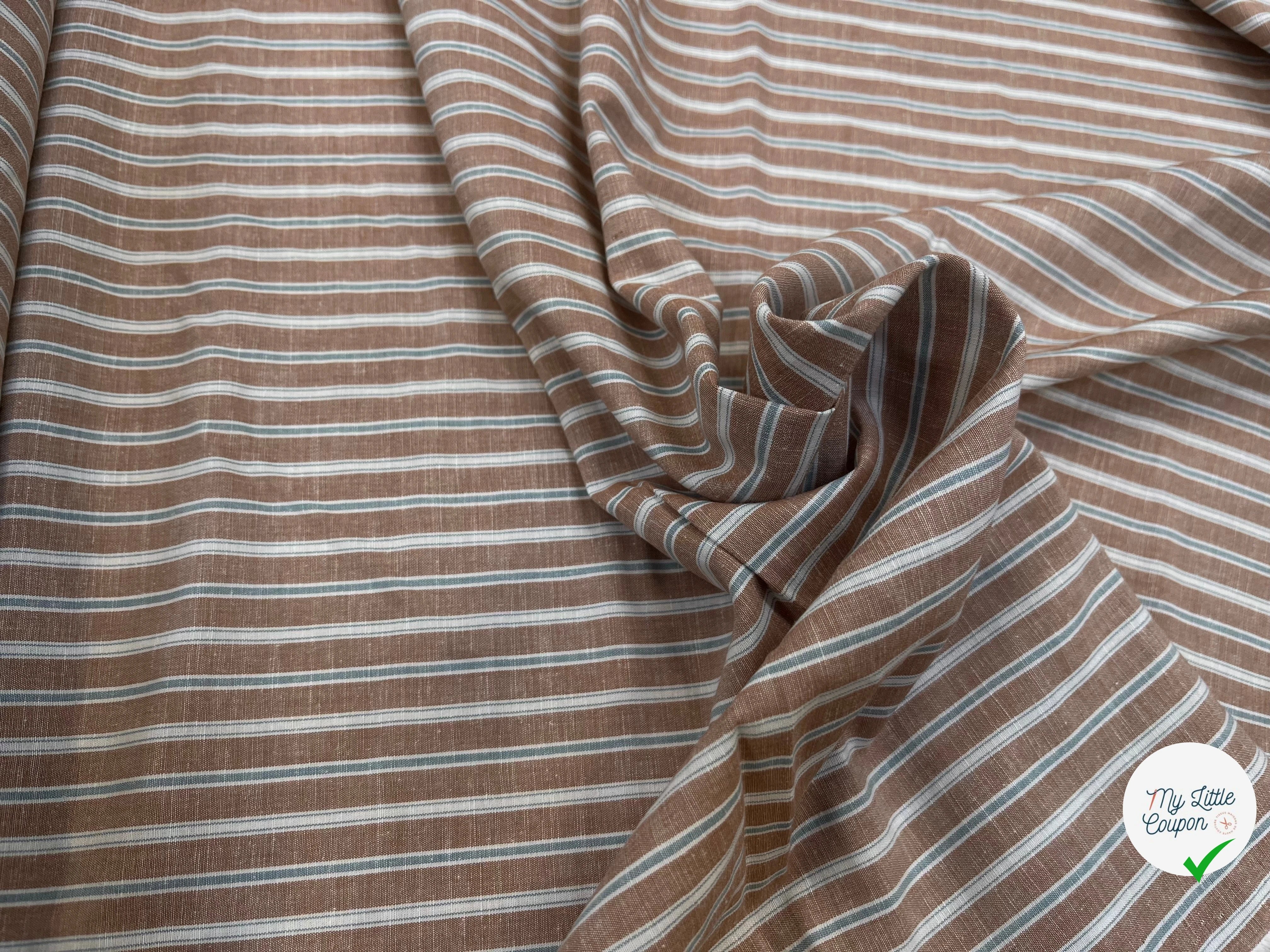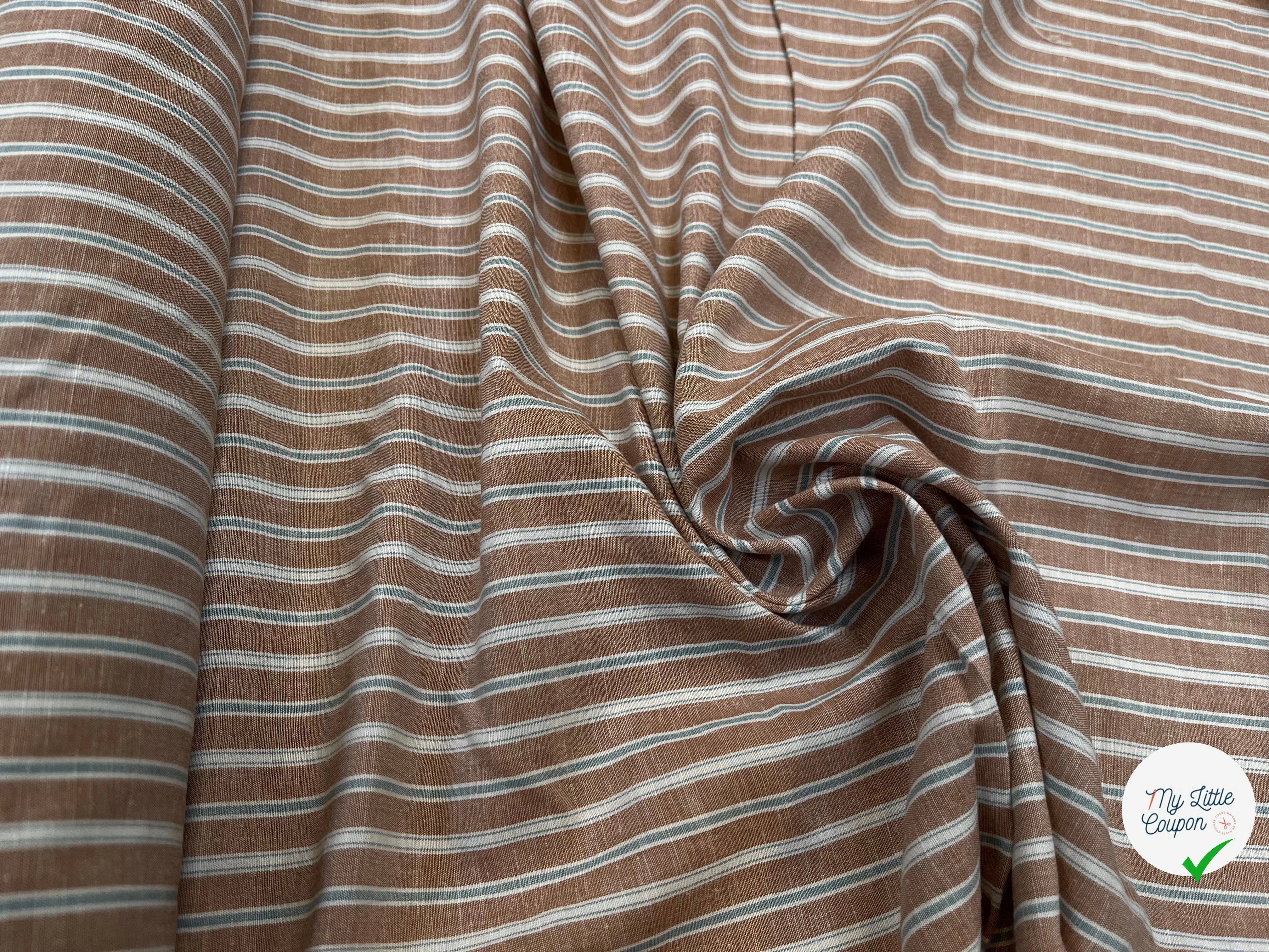 (Chute) POPELINE DE COTON CANELLE À RAYURES BLEUES ET BLANCHES