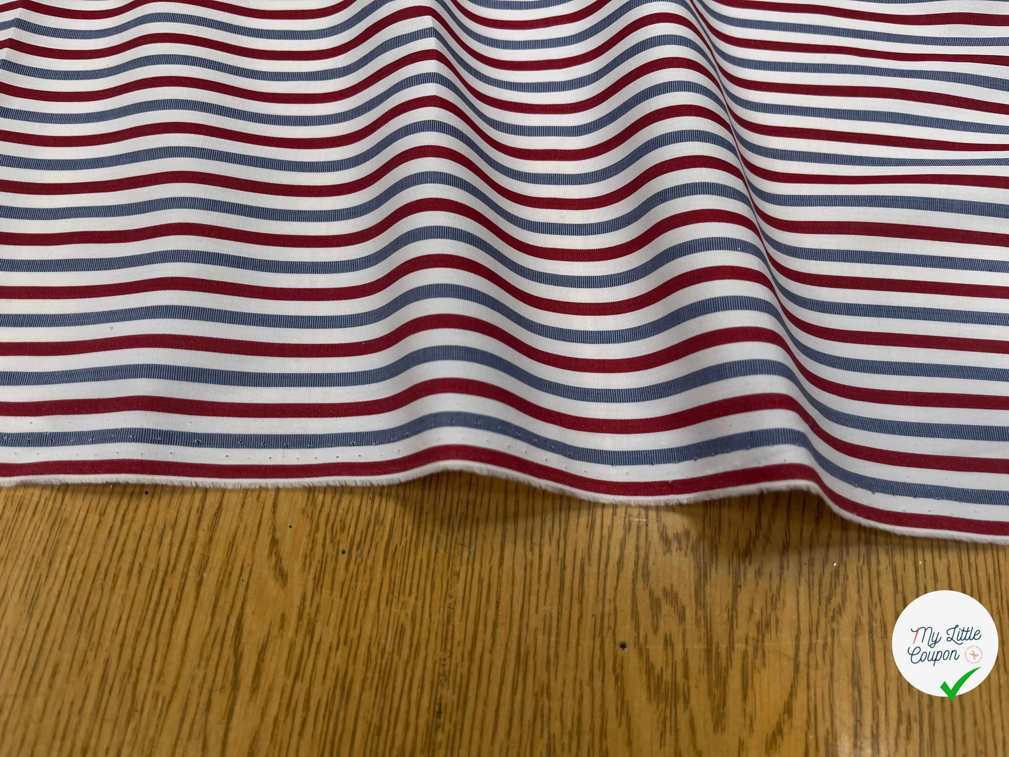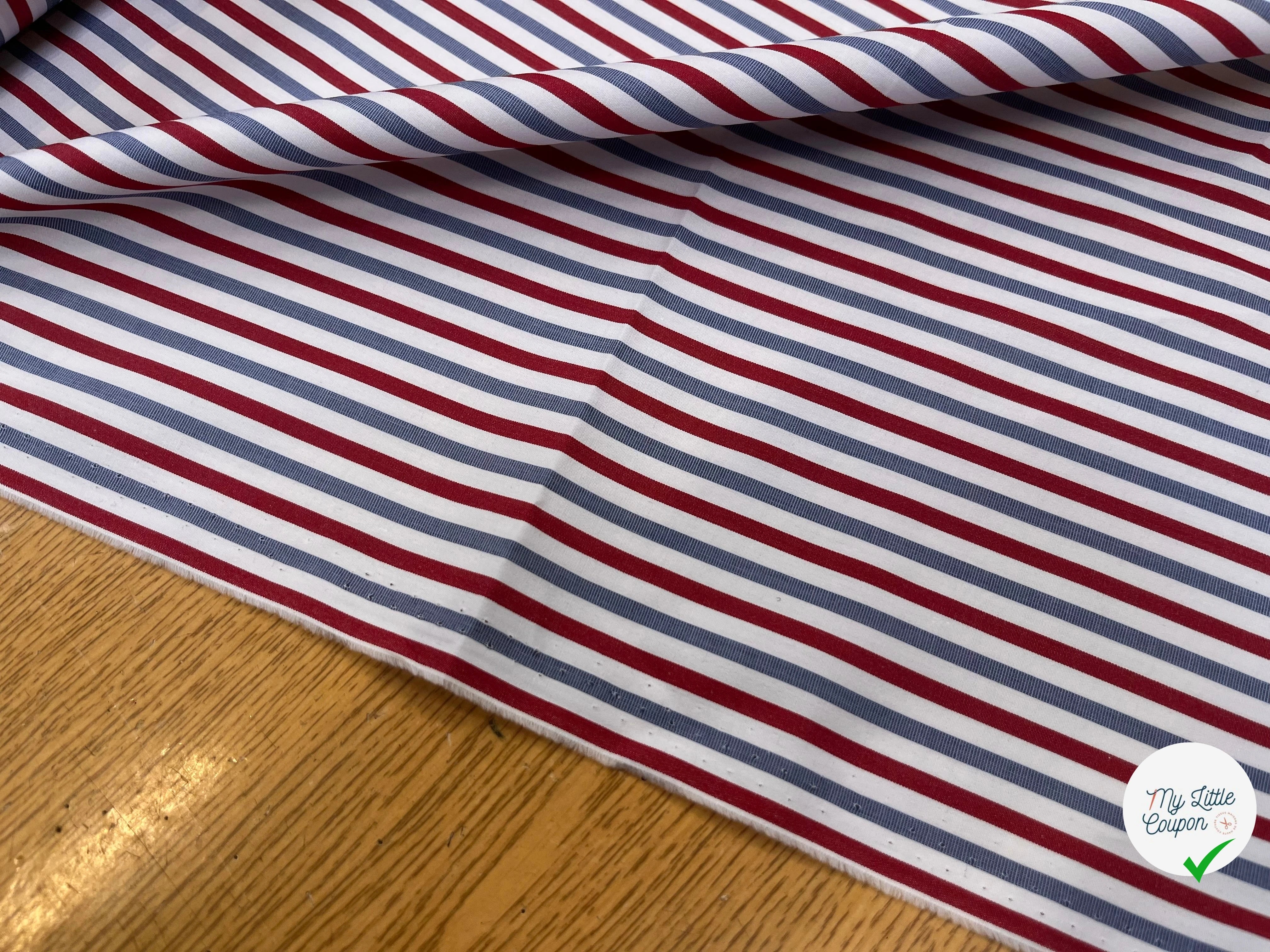 POPELINE DE COTON À RAYURES BLEUES ET ROUGES 153CM
