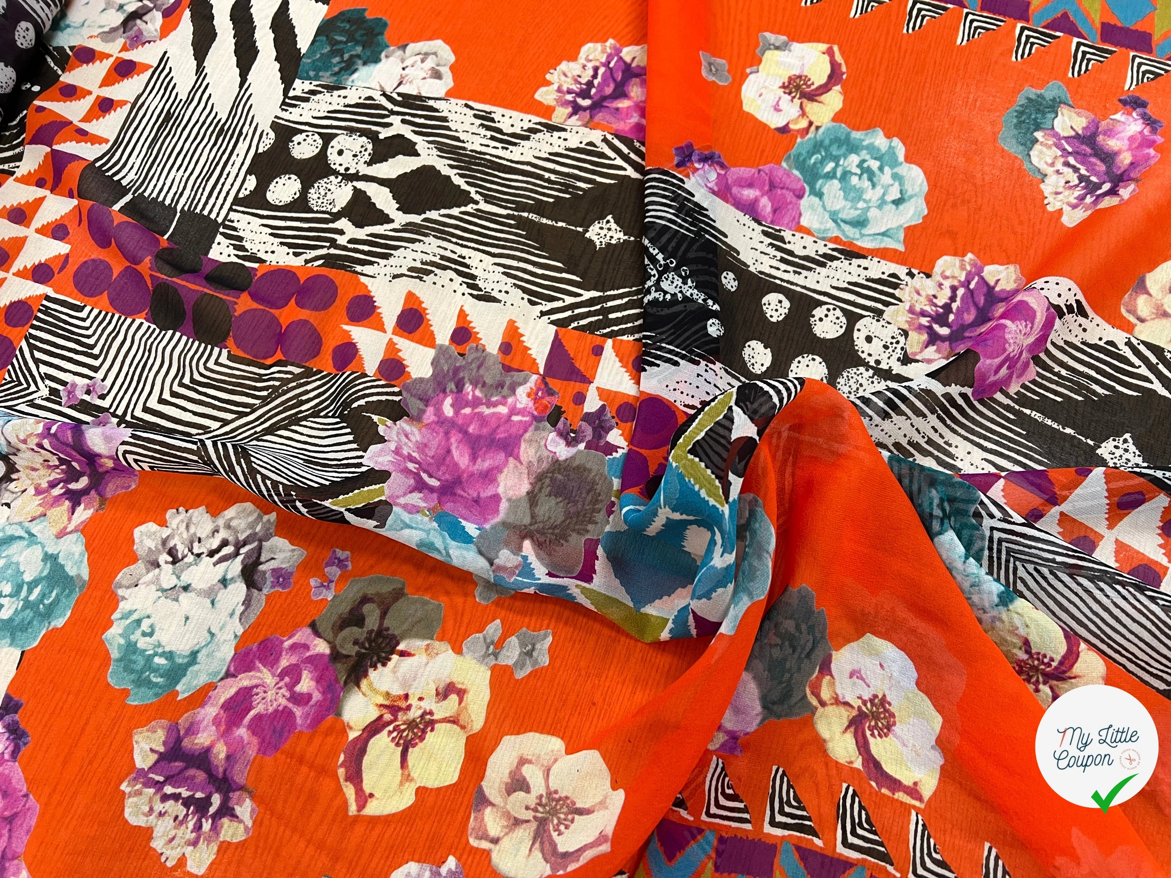 (Chute) CRÈPON DE OIE MOTIF GÉOMETRIQUE À FLEURS 142CM