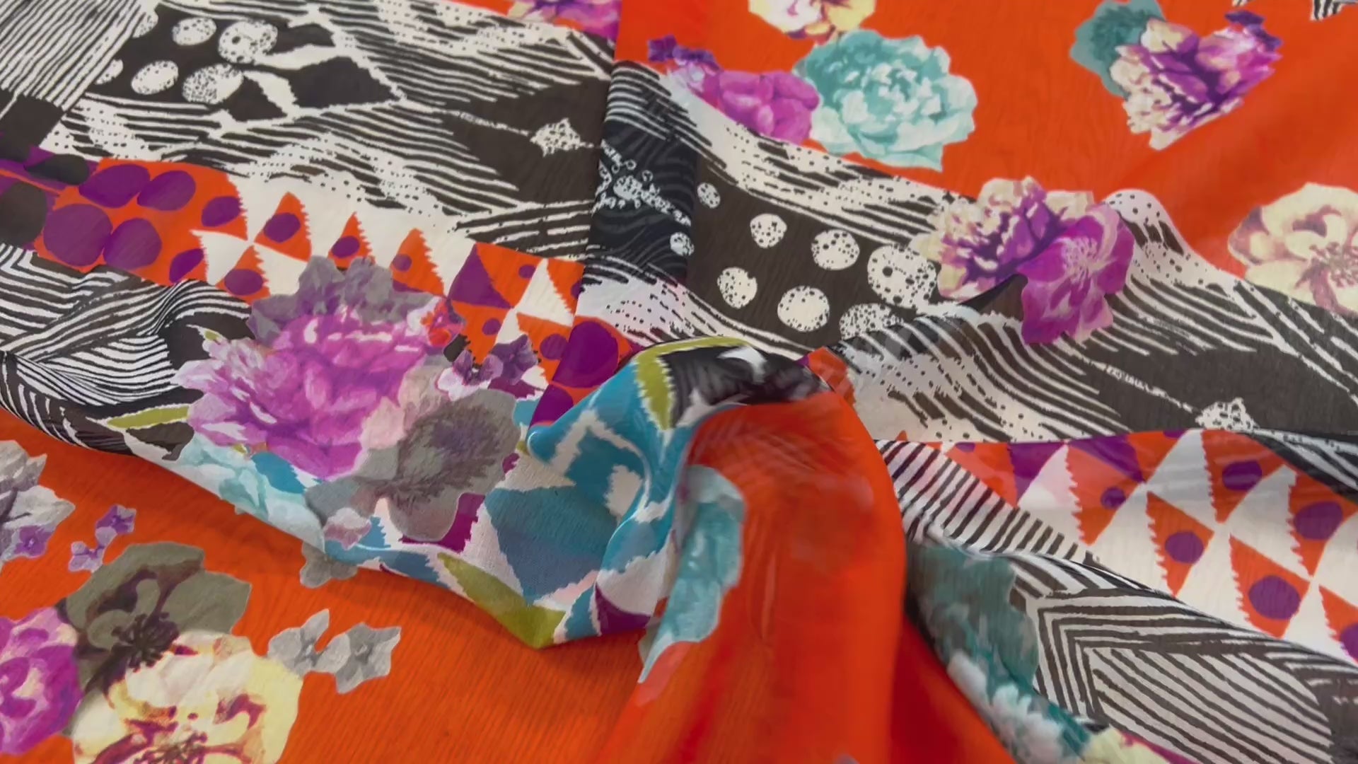 Le crêpon de soie motif géométrique à fleurs est un tissu couture d'exception, fabriqué en Italie. Largeur 142 cm, 100% soie, il offre un tombé fluide et une brillance discrète, idéal pour robes, chemises et foulards élégants. Ce tissu a été chiné avec passion par notre équipe achat, et Marc, notre acheteur spécialiste des fins de série de tissus depuis 1982.