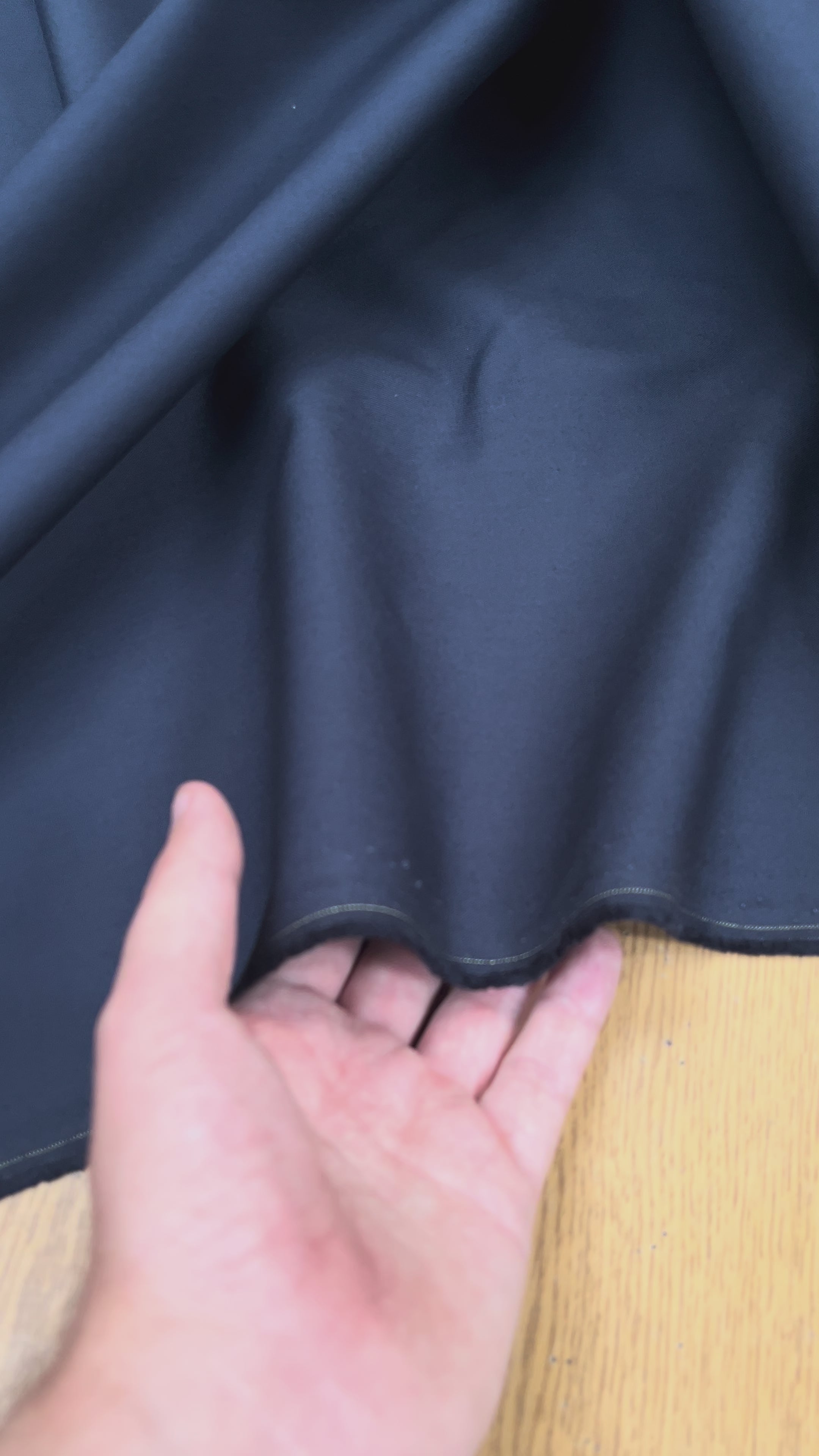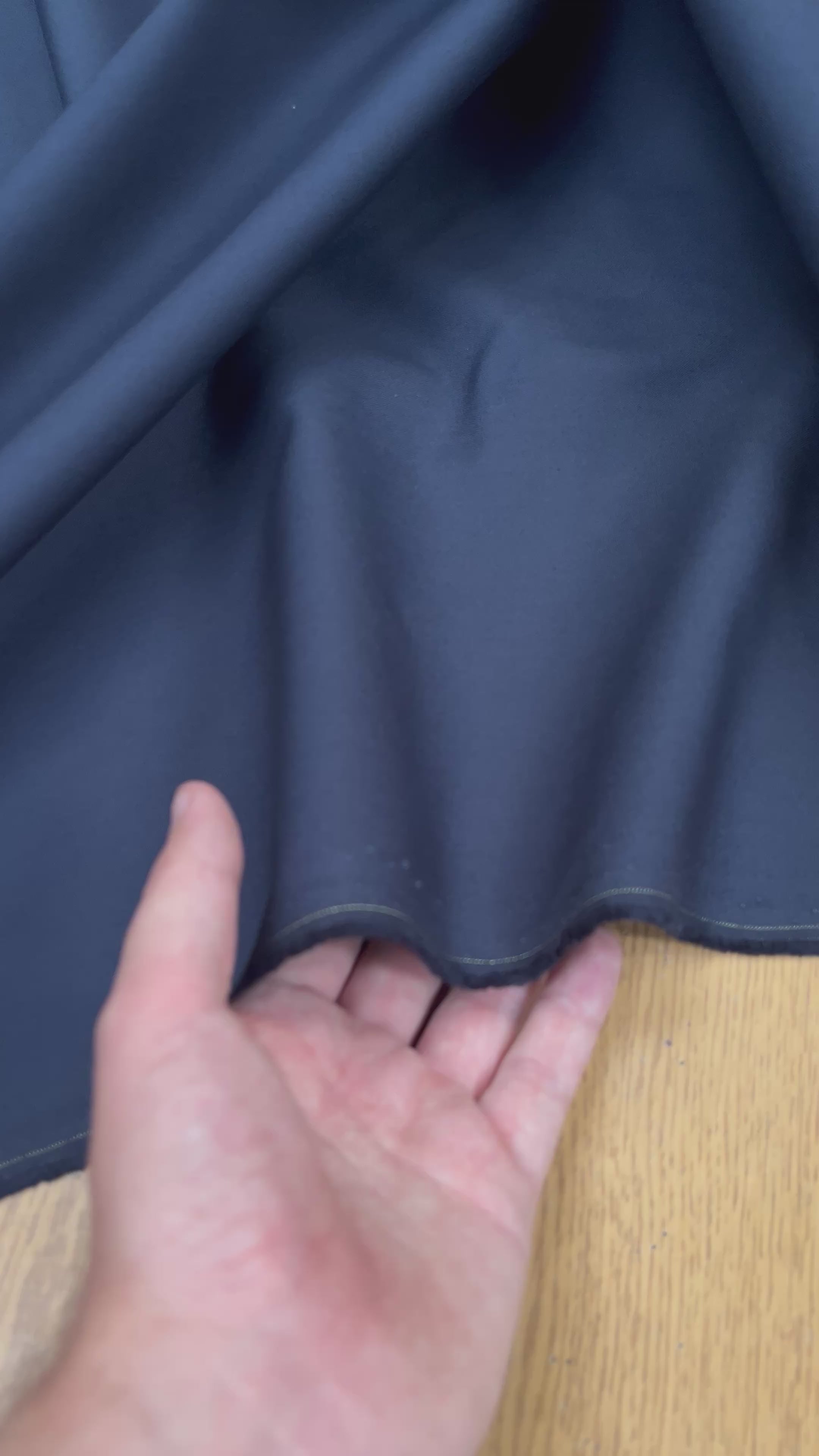 Gabardine de coton de fin de rouleau, revalorisée par notre équipe chez My Little Coupon. Fabrication: Italie. Ce tissu lourd présente un très beau marine foncé, presque noir, offrant une tenue remarquable et une finition premium. Quantités limitées — pièce rare idéale pour projets exigeants.
