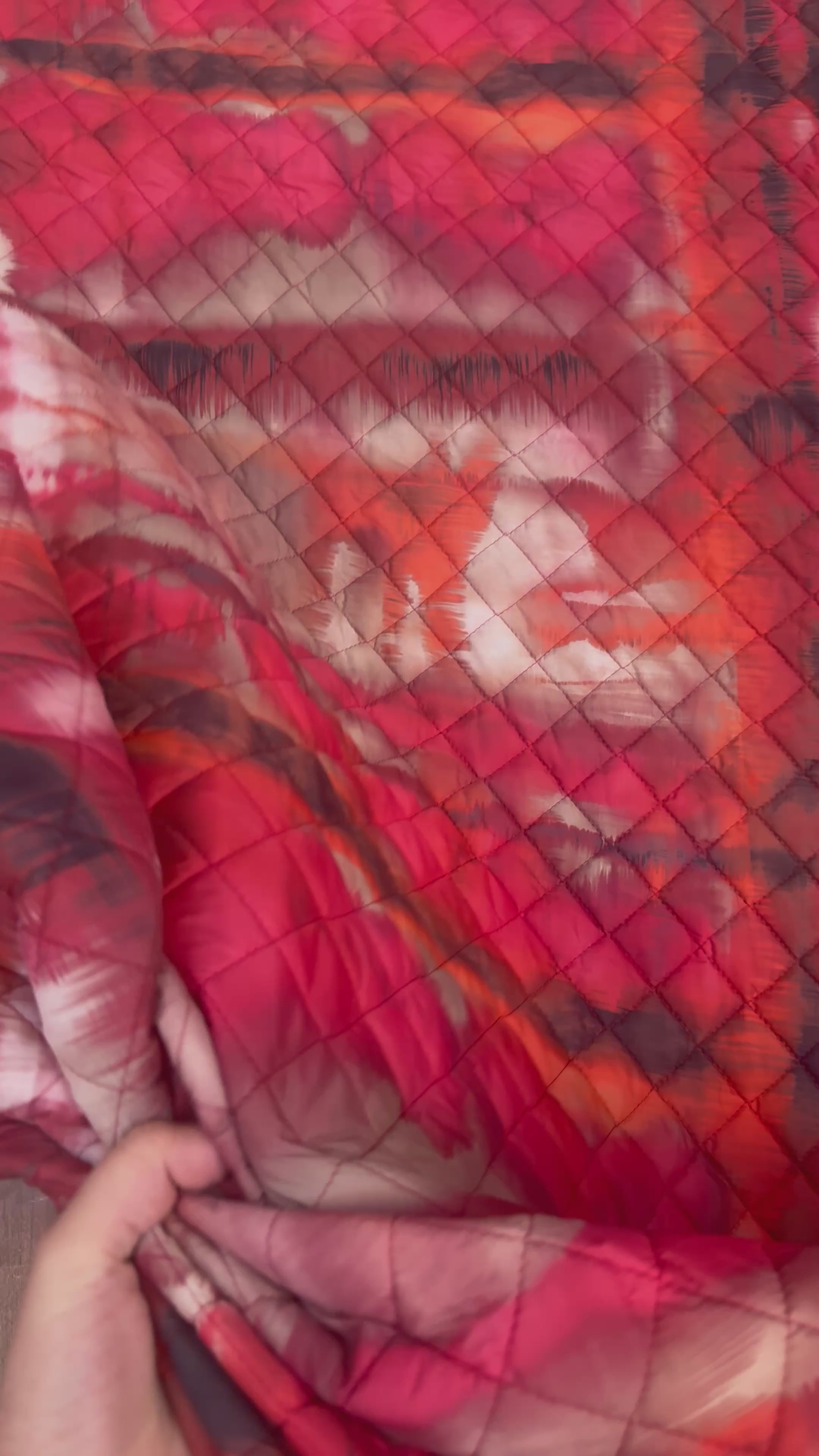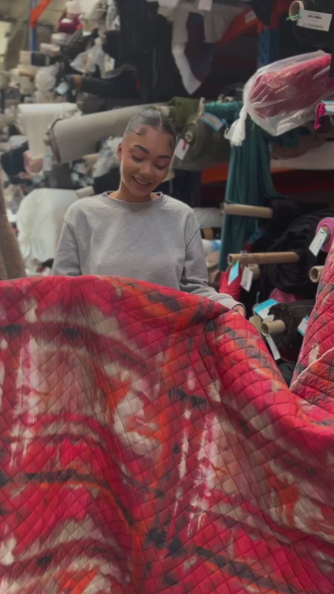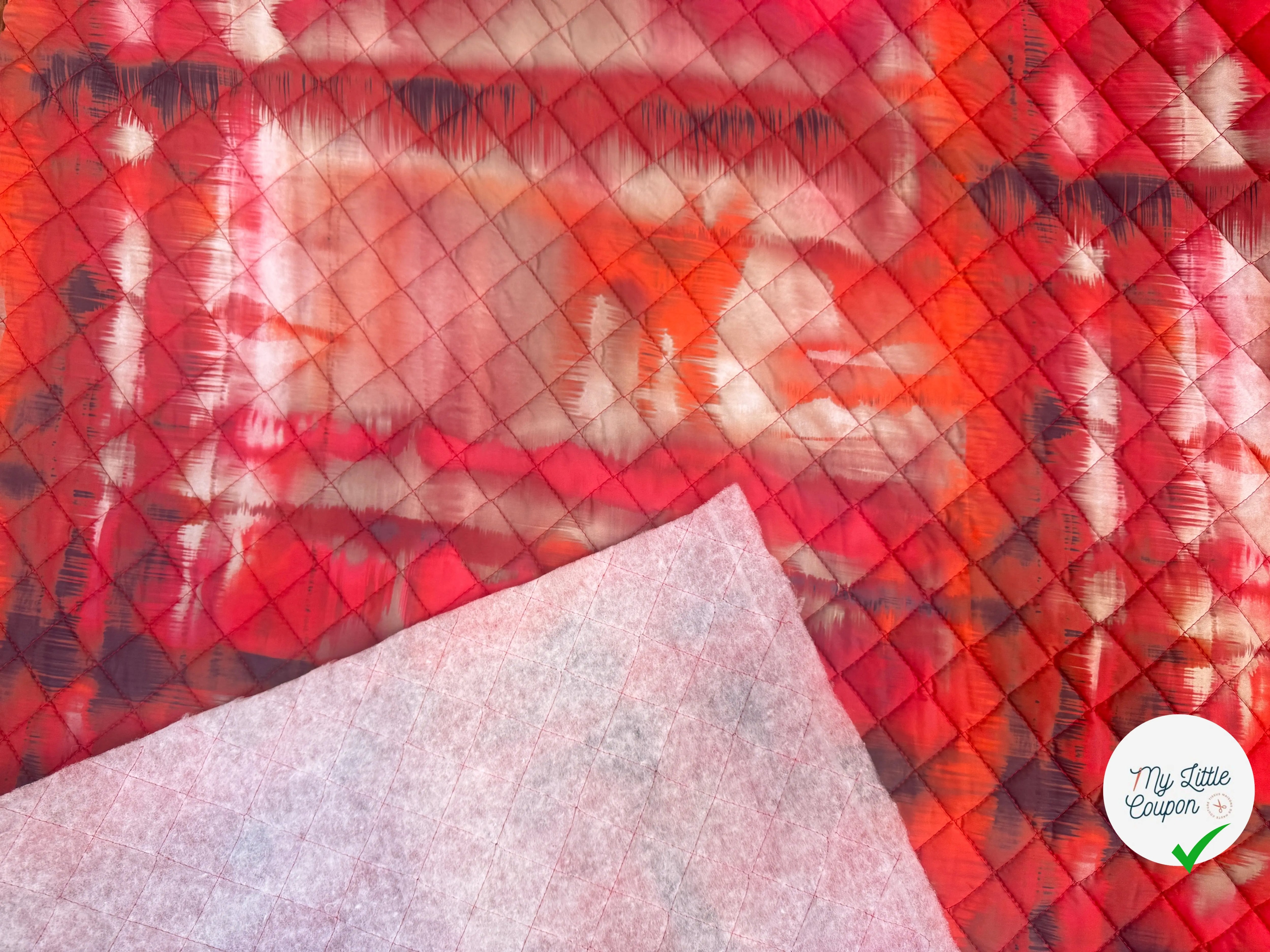Issu des fins de série d'une prestigieuse maison de couture, ce tissu a été soigneusement matelassé en France. Il est parfait pour des projets de vestes légères, doudounes, sacs ou accessoires contemporains. Son imprimé rouge vibrant ajoutera une touche audacieuse à toutes vos réalisations.