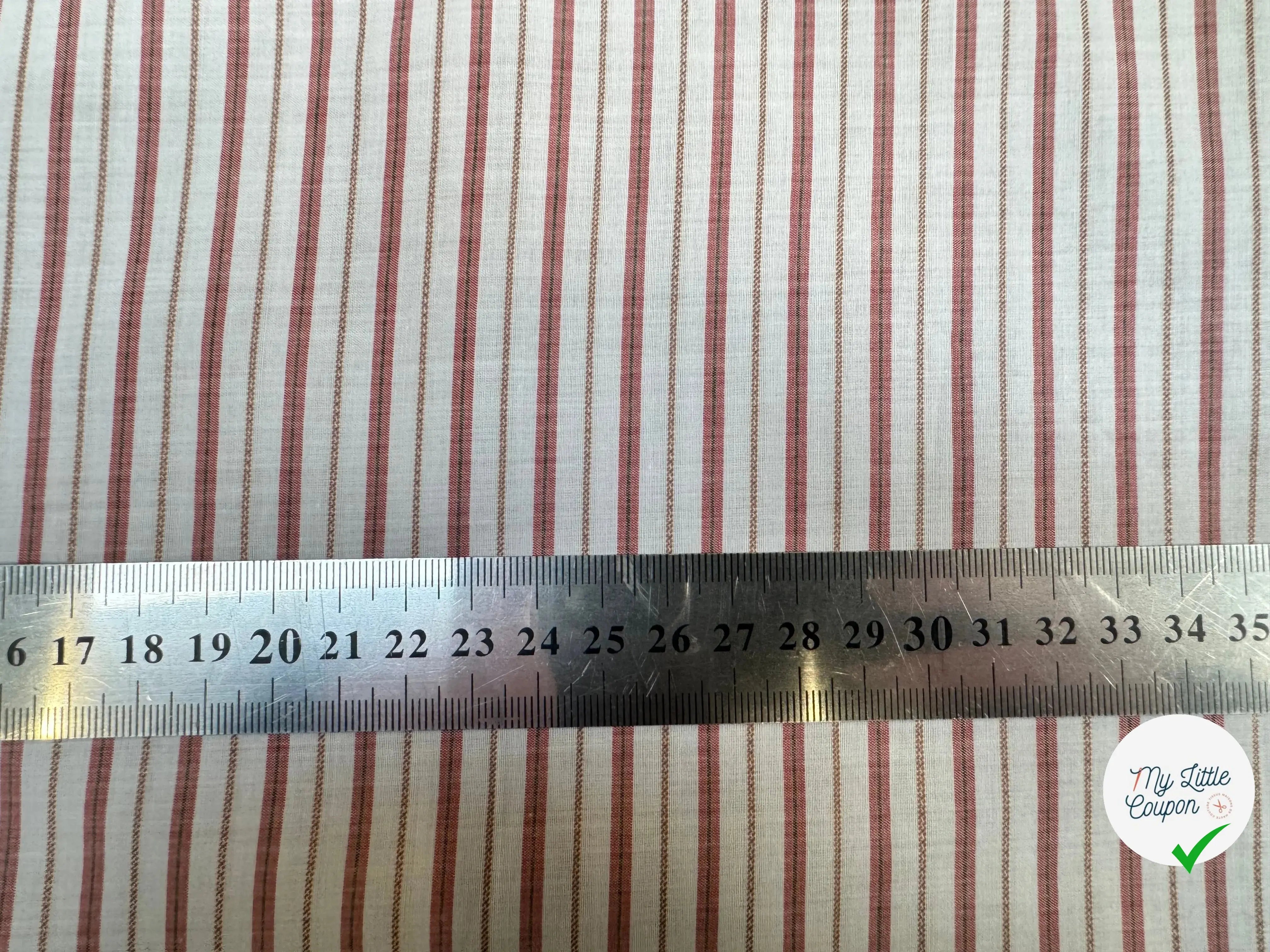POPELINE DE COTON RAYURES VERTICALES BLANCHES, ROUGE ET MARRON