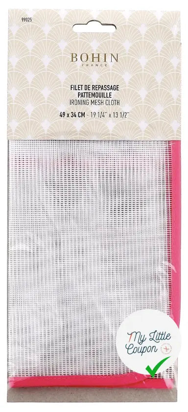 Conçu pour rendre le repassage plus simple et plus efficace, le filet de repassage, également appelé pattemouille, est indispensable dans vos projets de couture et de patchwork. Il assure un repassage doux, préservant la qualité et la texture des tissus délicats en évitant les marques brillantes souvent causées par une chaleur directe. La vapeur circule aisément à travers le filet, pour un lissage parfait des plis sans risque d'endommager vos vêtements ou créations.