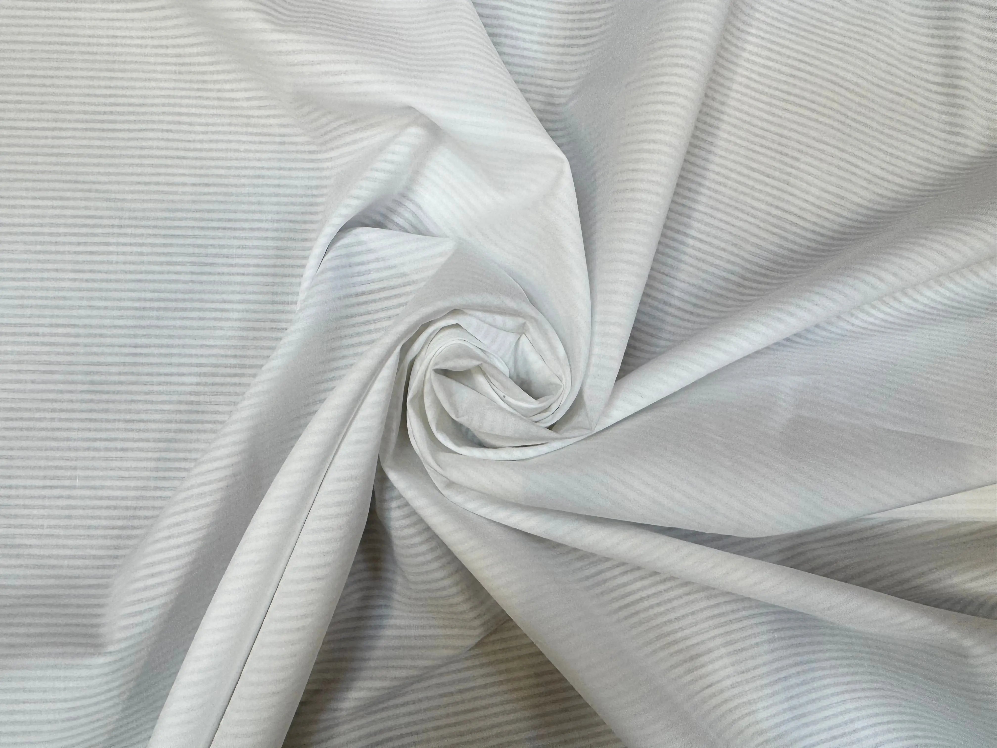 POPELINE DE COTON BLANCHE A RAYURES RÉGULIÈRES EFFET SATINÉ