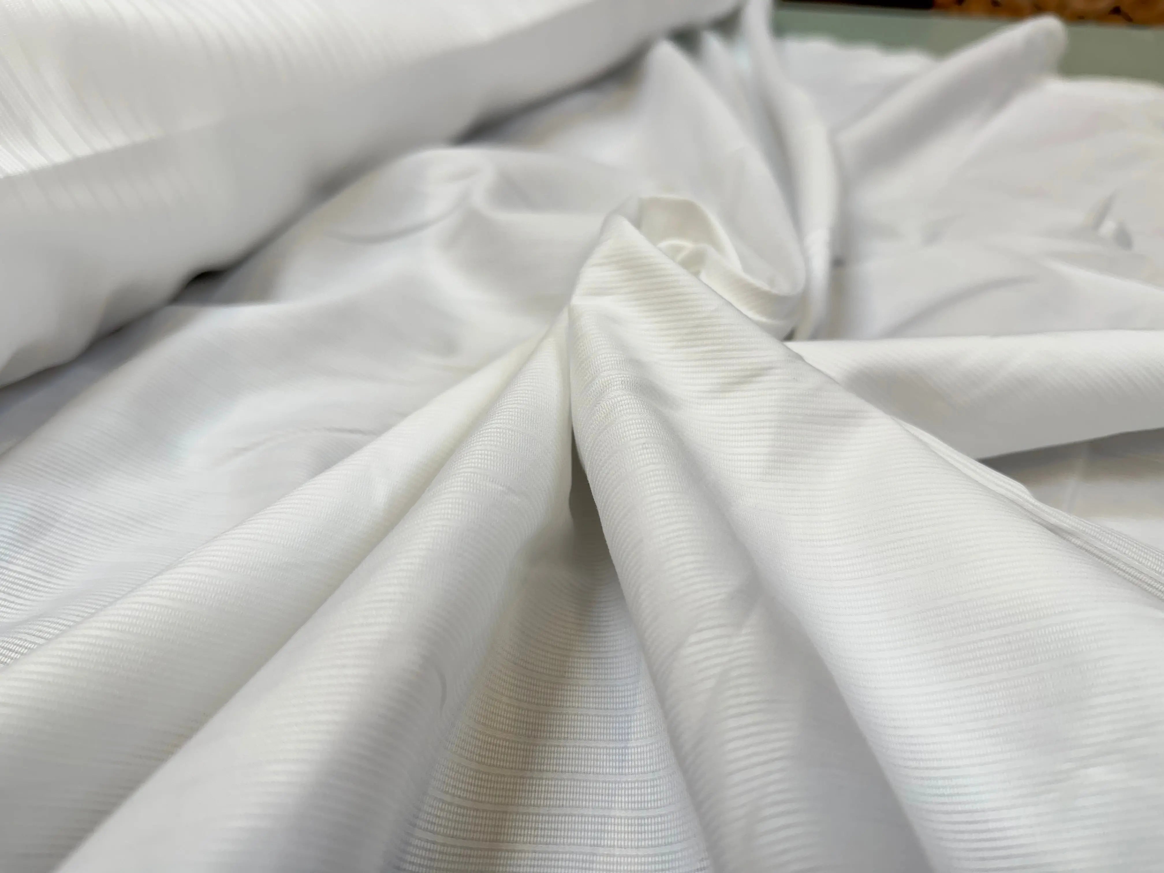 Découvrez notre POPELINE DE COTON BLANCHES RAYURES IRRÉGULIÈRES EFFET SATINÉ, un tissu d'une qualité exceptionnelle, fabriqué avec soin en Italie. Sa texture douce et élégante apporte une touche raffinée à vos créations.
