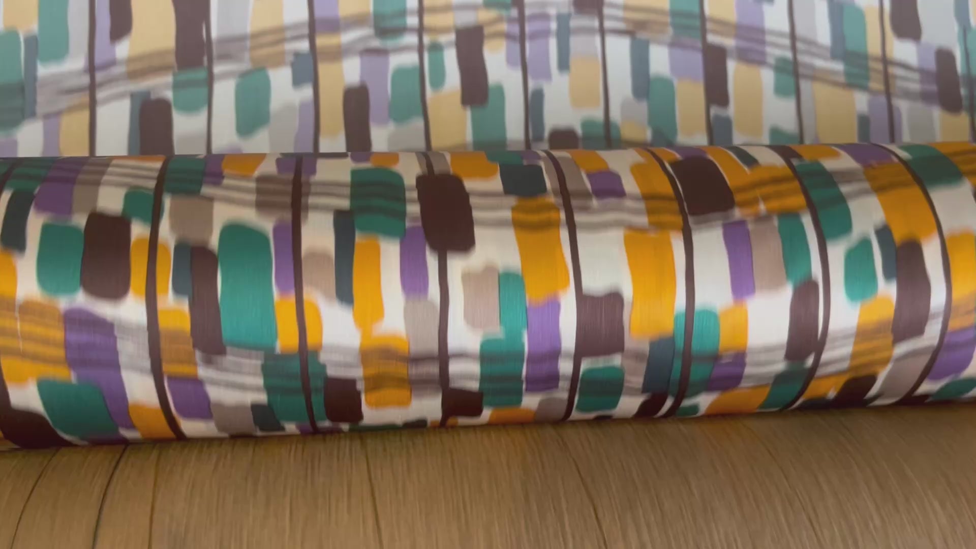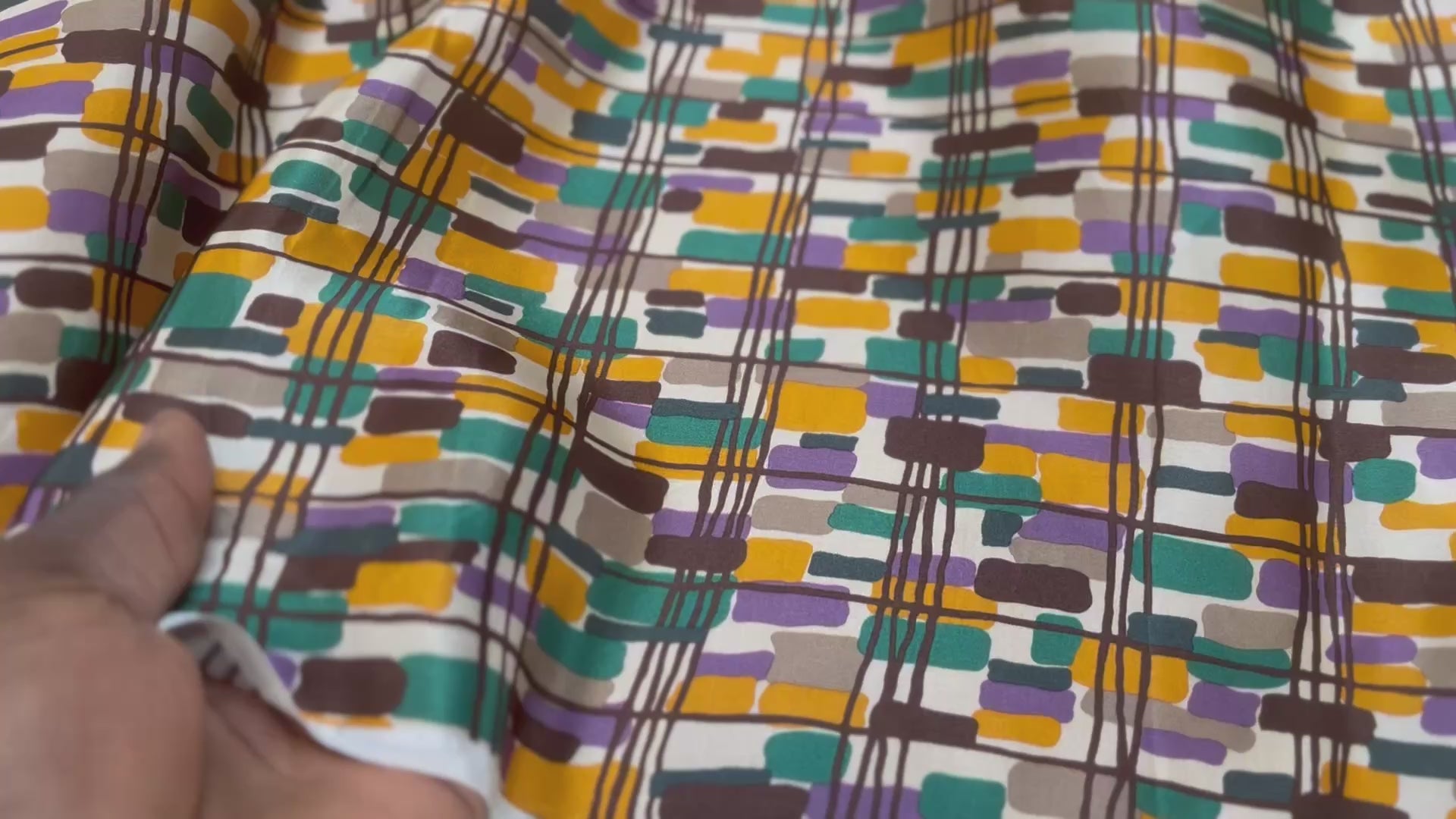 SATIN DE SOIE MOTIF RECTANGLE ABSTRAIT VERT JAUNE MARON ET VIOLET