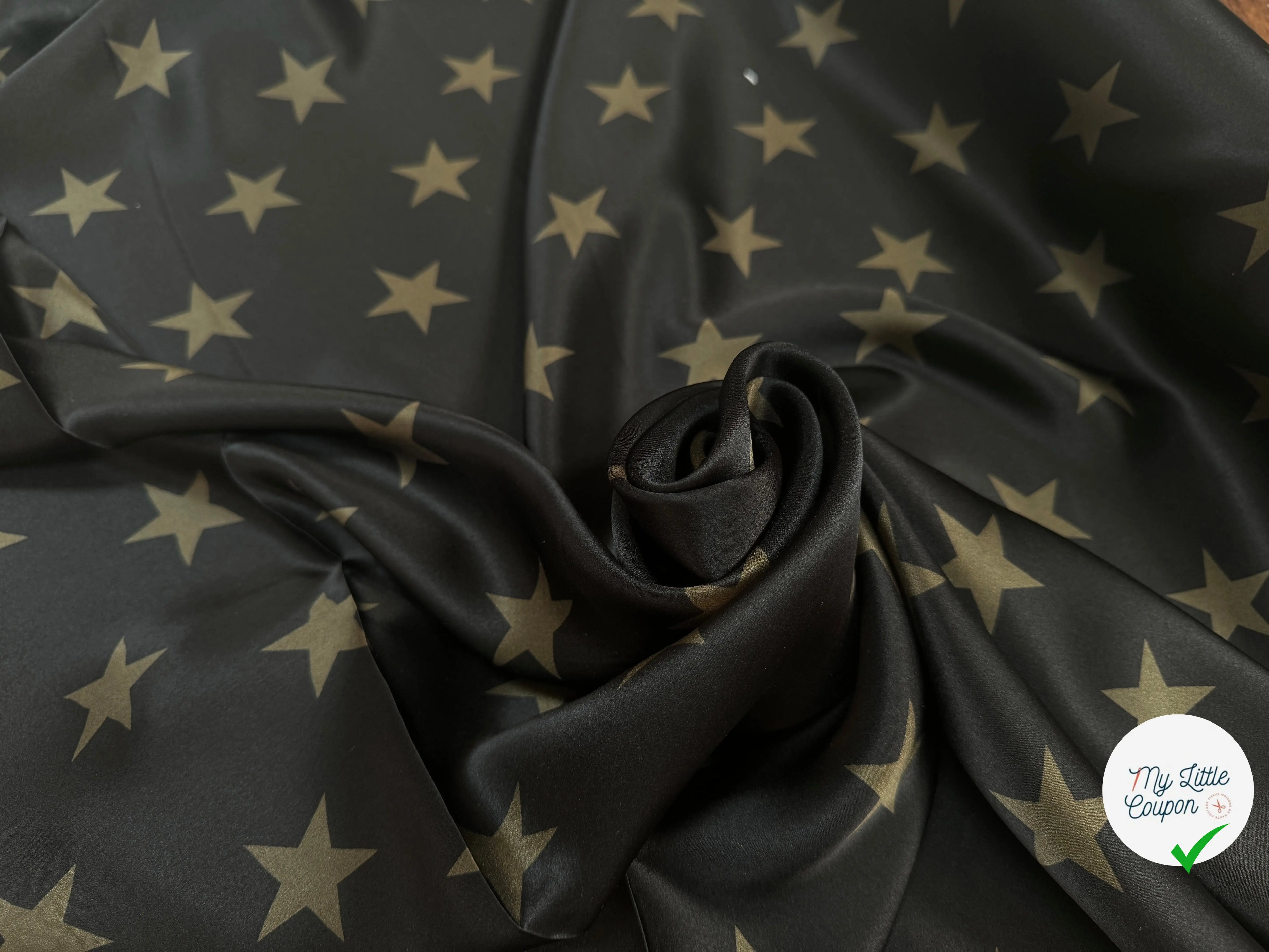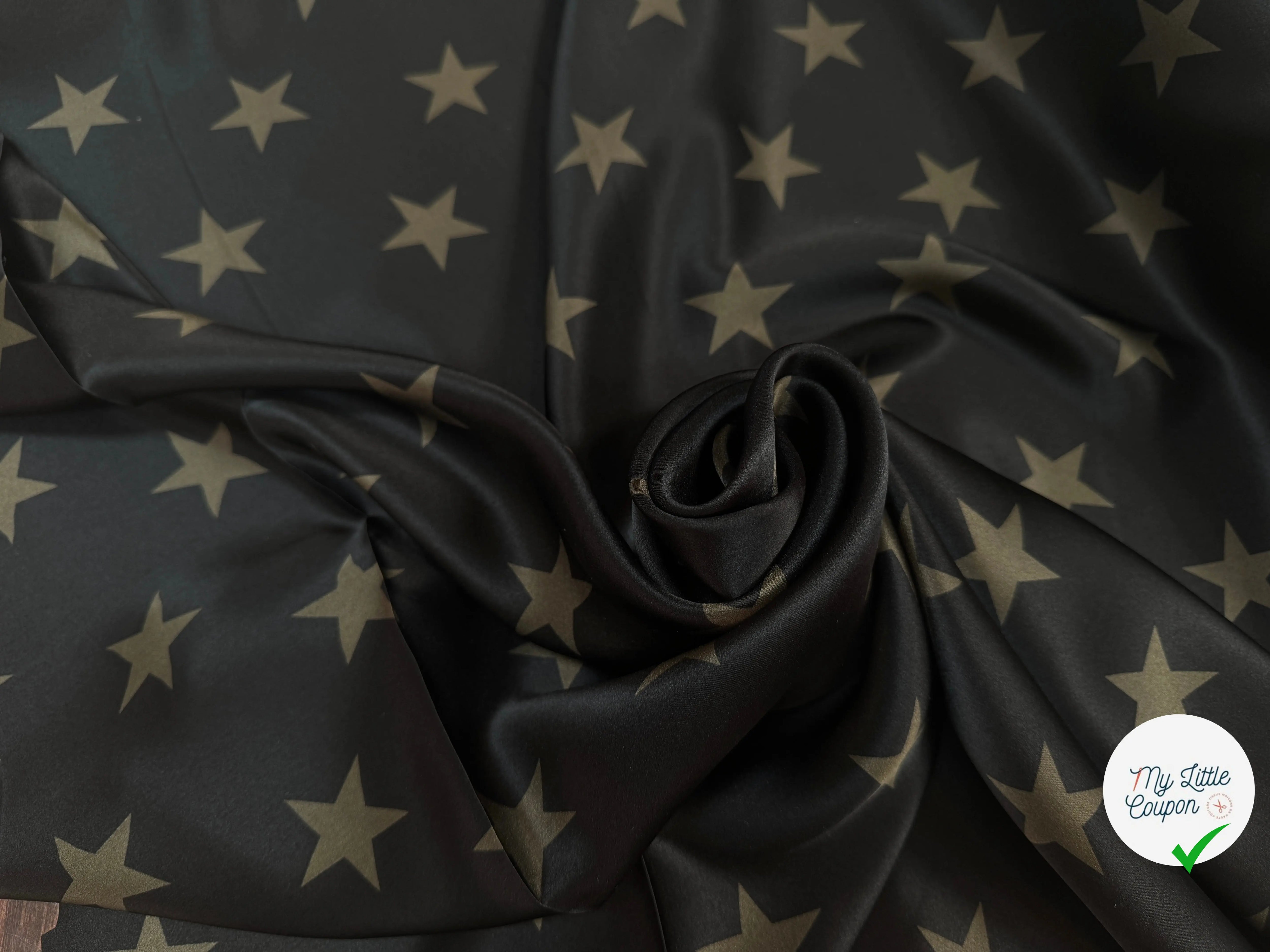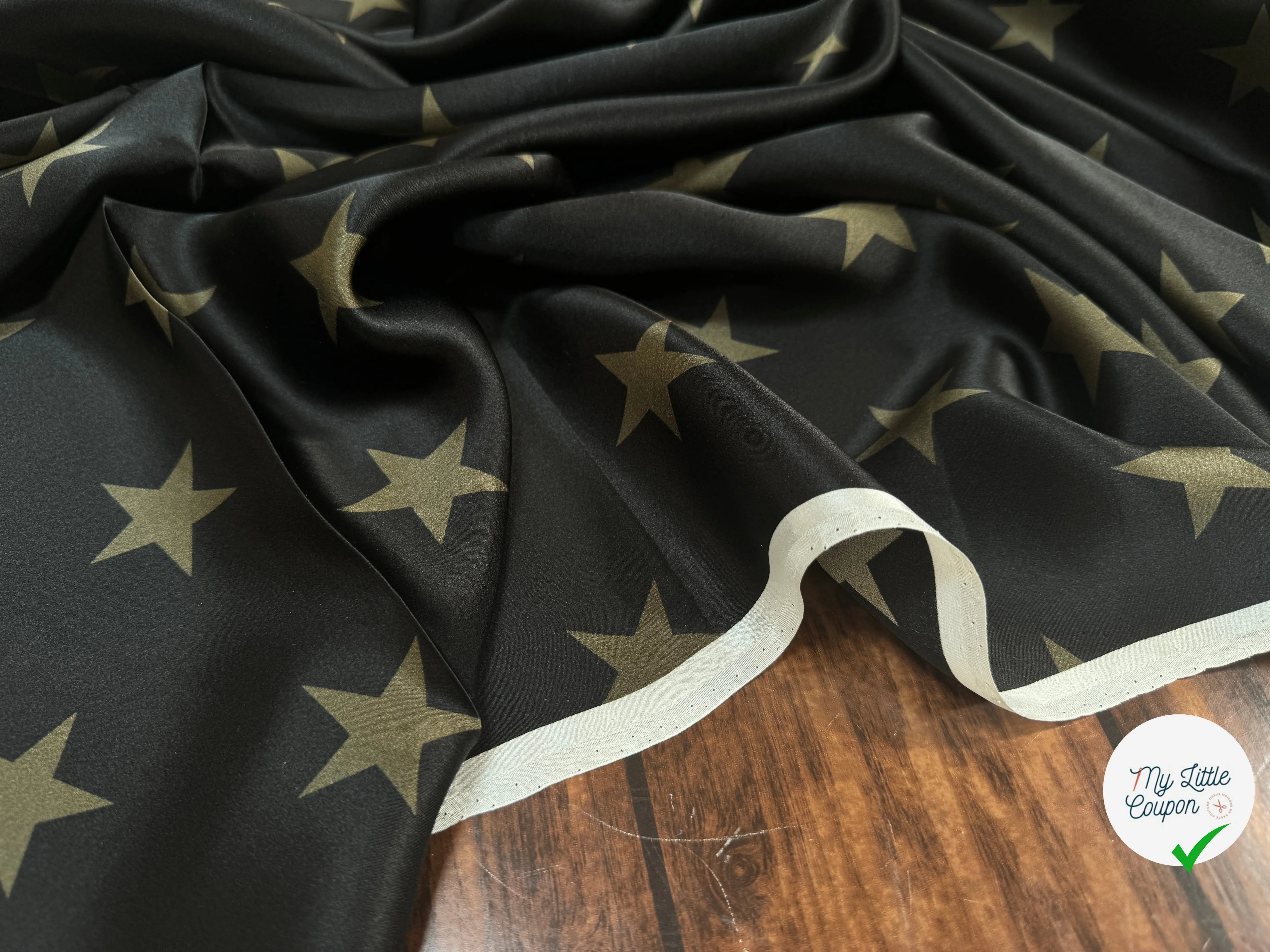 SATIN DE SOIE PRINT ÉTOILÉ KAKI FOND NOIR