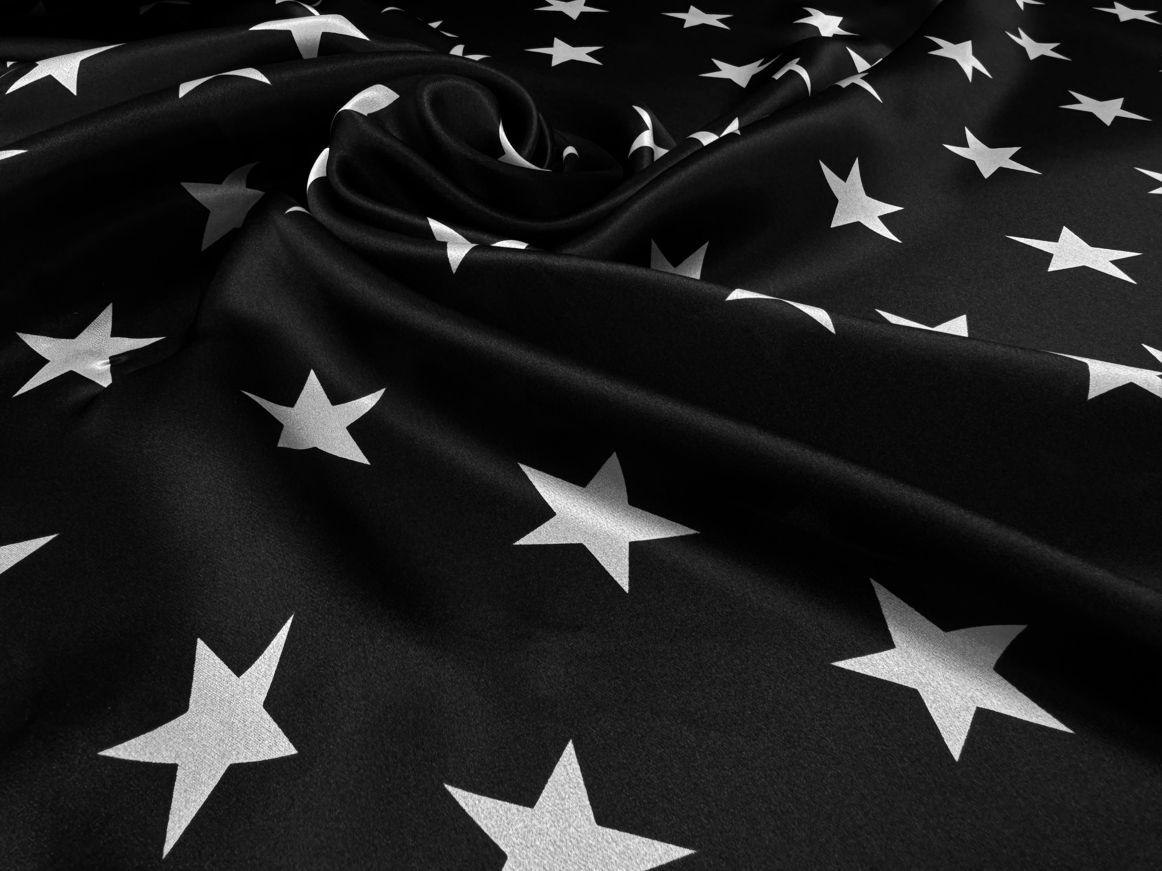 SATIN DE SOIE PRINT ÉTOILÉ FOND NOIR