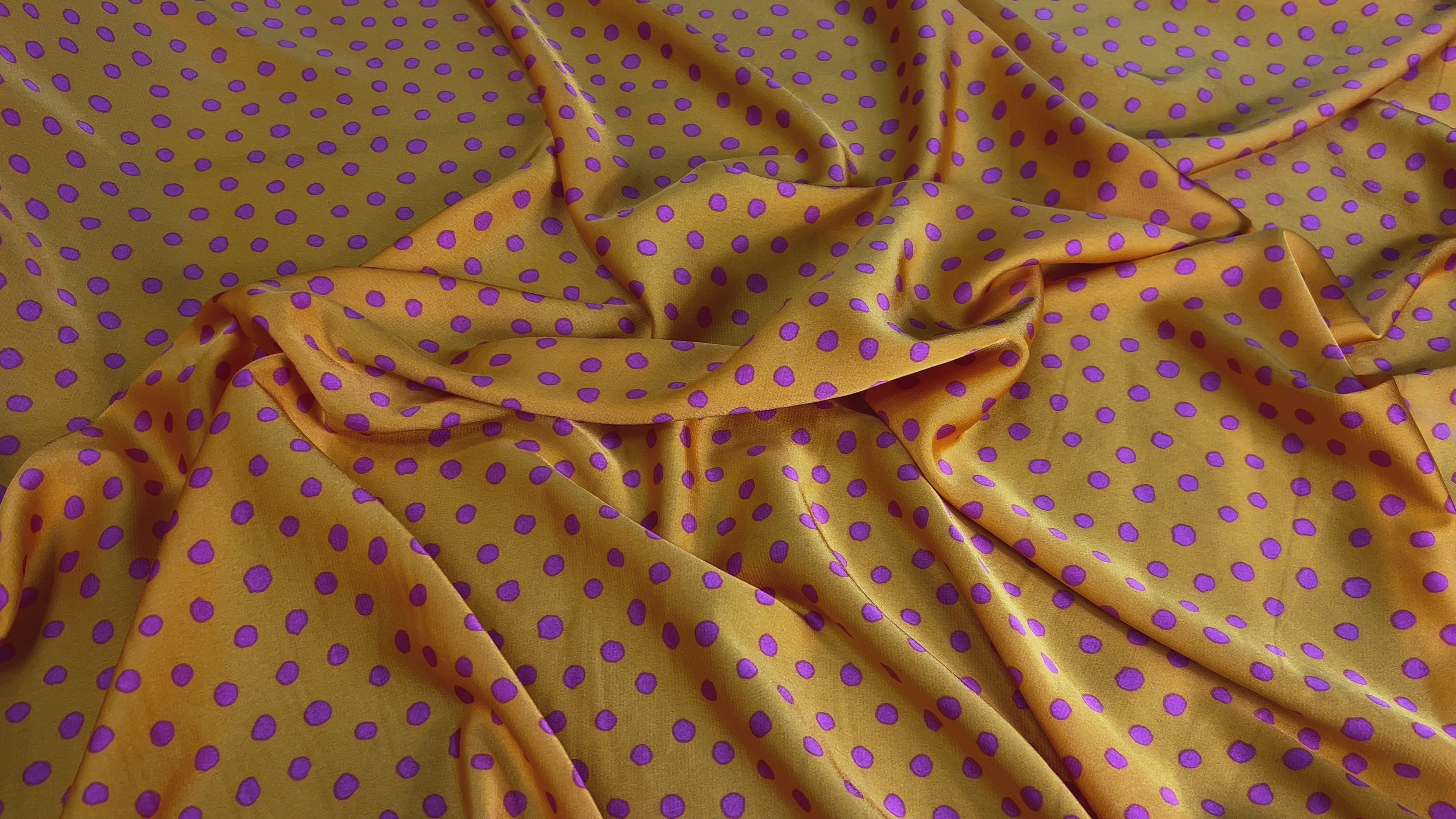 CRÊPE LÉGÈREMENT SATINÉ ORANGE À POIS ROSE VIOLET