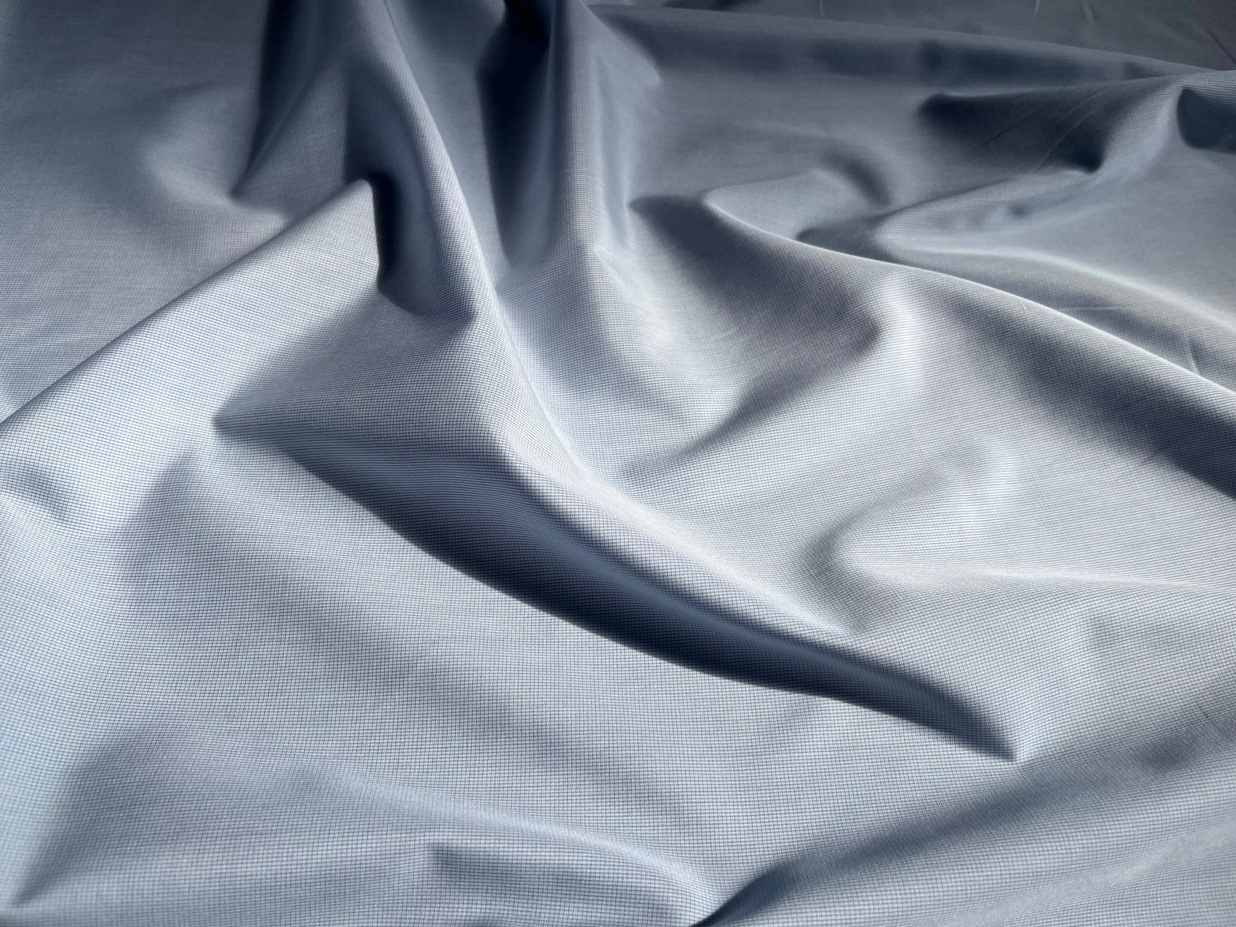 Découvrez la popeline de coton tout petit carreaux blanc bleu, un tissu chic et raffiné, idéal pour vos projets de couture. Fabriquée en Italie, cette popeline offre un largeur de 149 cm et un poids de 140 g/ml - 94 g/m², ce qui la rend à la fois légère et résistante.