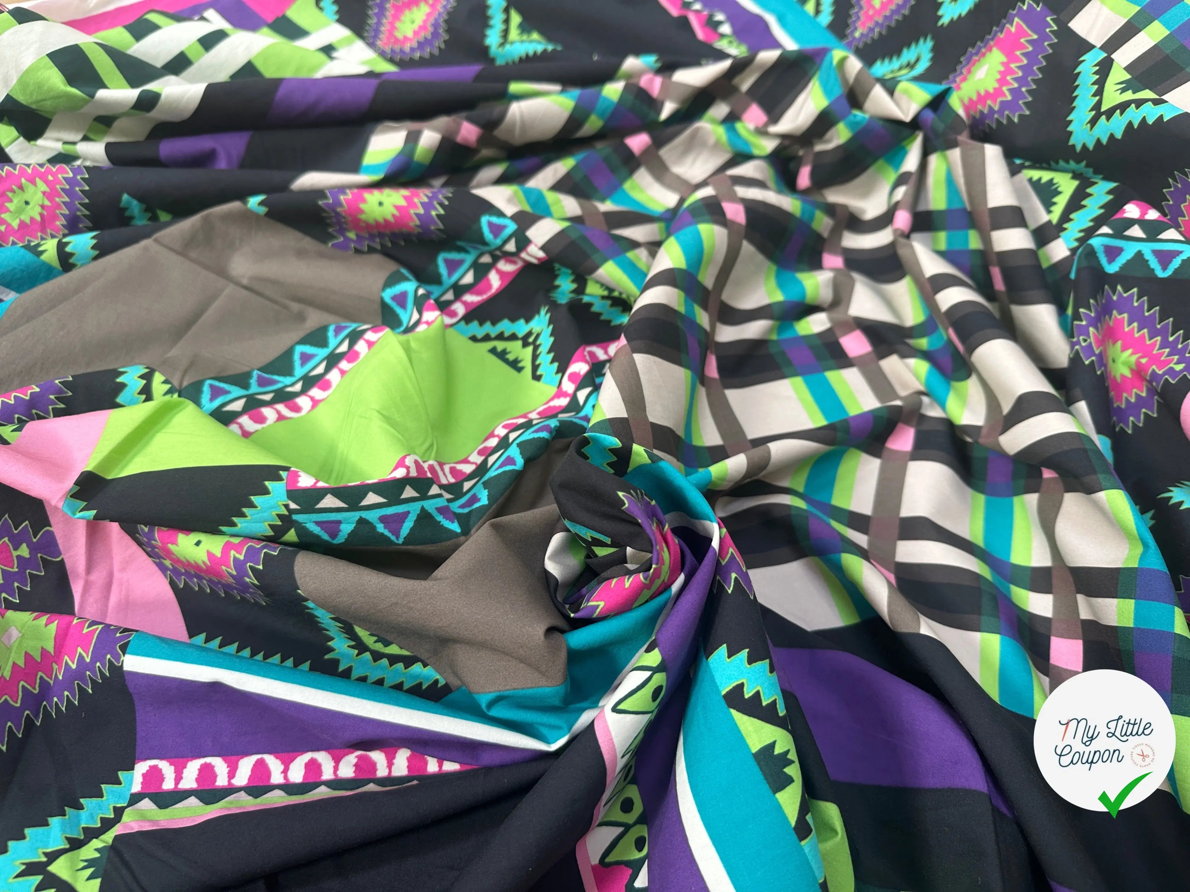 POPELINE IMPRIMÉE À GROS MOTIFS PERU ET TARTAN TENDANCE BEIGE