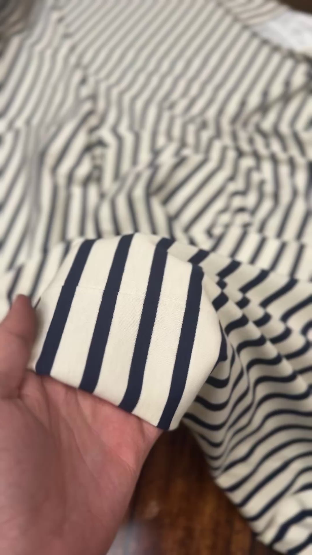 Le jersey écru sur marine est un tissu de poids plus élevé, idéal pour des projets qui nécessitent une certaine épaisseur et une bonne tenue. Sa combinaison de couleurs écru et marine crée un contraste élégant, ajoutant une touche de sophistication à vos créations. Sa texture douce et extensible offre un confort optimal tout en assurant une belle esthétique.