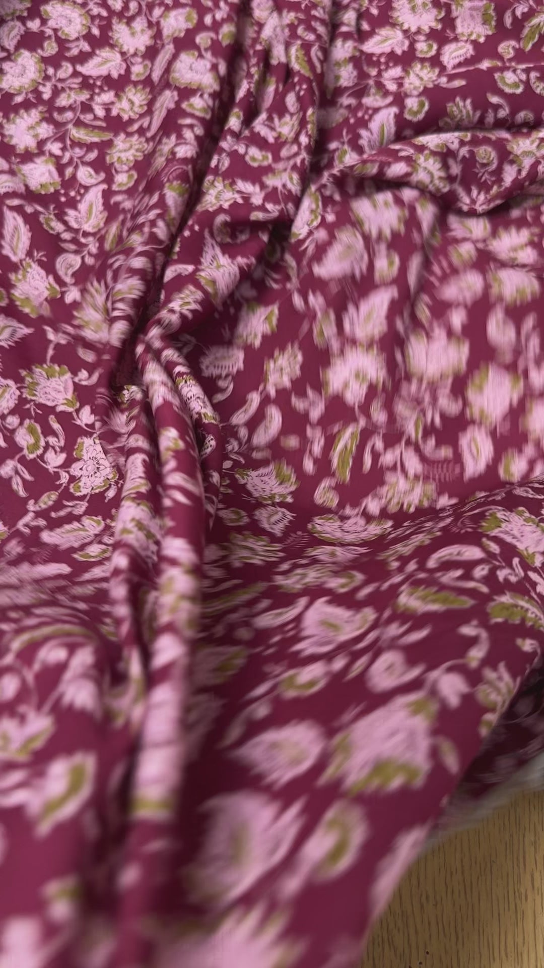 Ce tissu se distingue des autres par sa qualité supérieure, sa souplesse et sa capacité à bien tomber, offrant ainsi un rendu chic et raffiné. Que vous soyez une couturière débutante ou expérimentée, le voile de viscose fond bordeaux avec motif fleurs rose pale saura vous séduire par ses multiples possibilités.