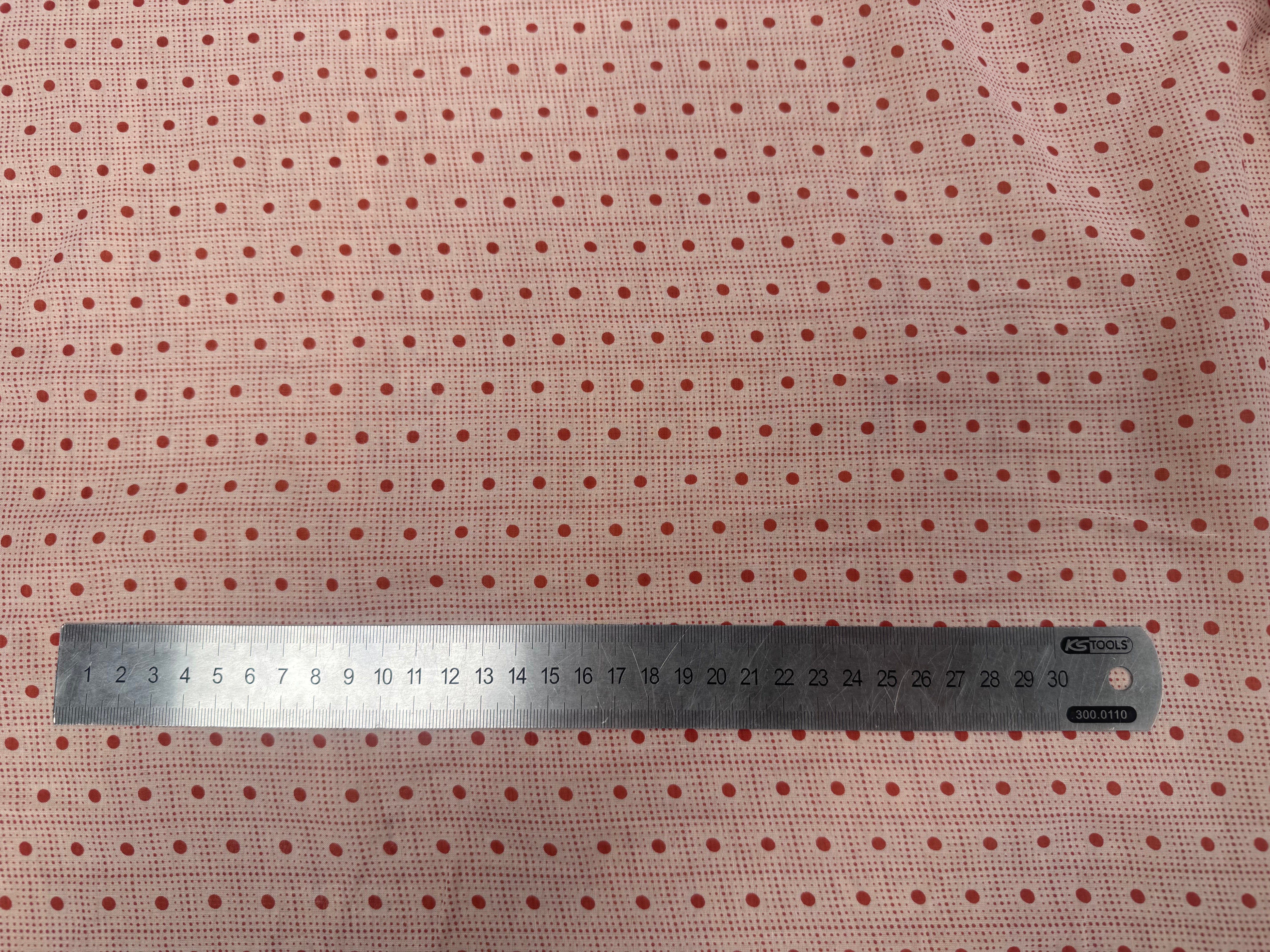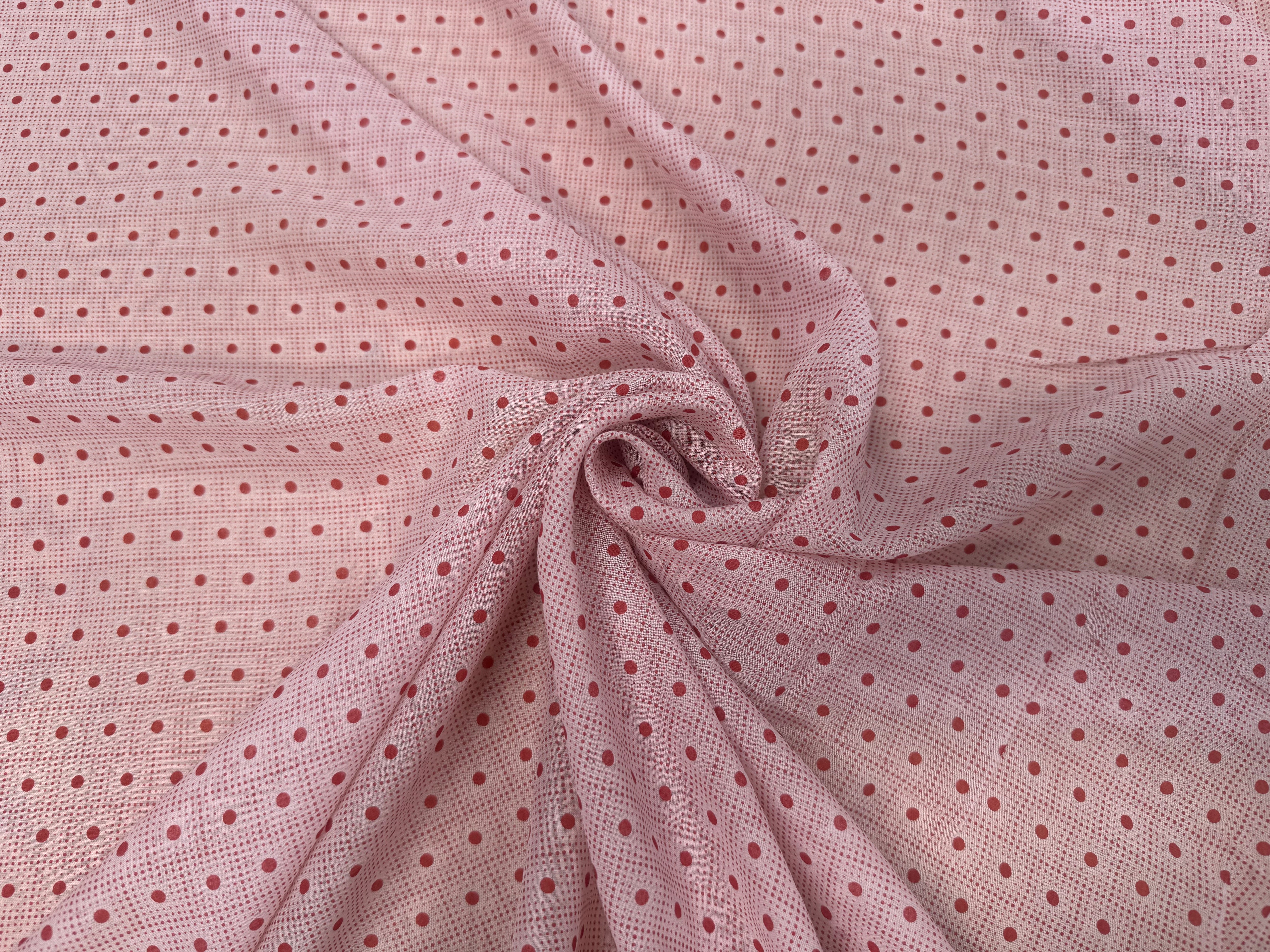VOILE DE COTON FOND BEIGE MOTIFS PETITS POIDS ROUGE IRREGULIERS