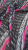 VOILE DE COTON FOND NOIR MOTIFS GÉOMÉTRIQUE ROSE ET BLANC