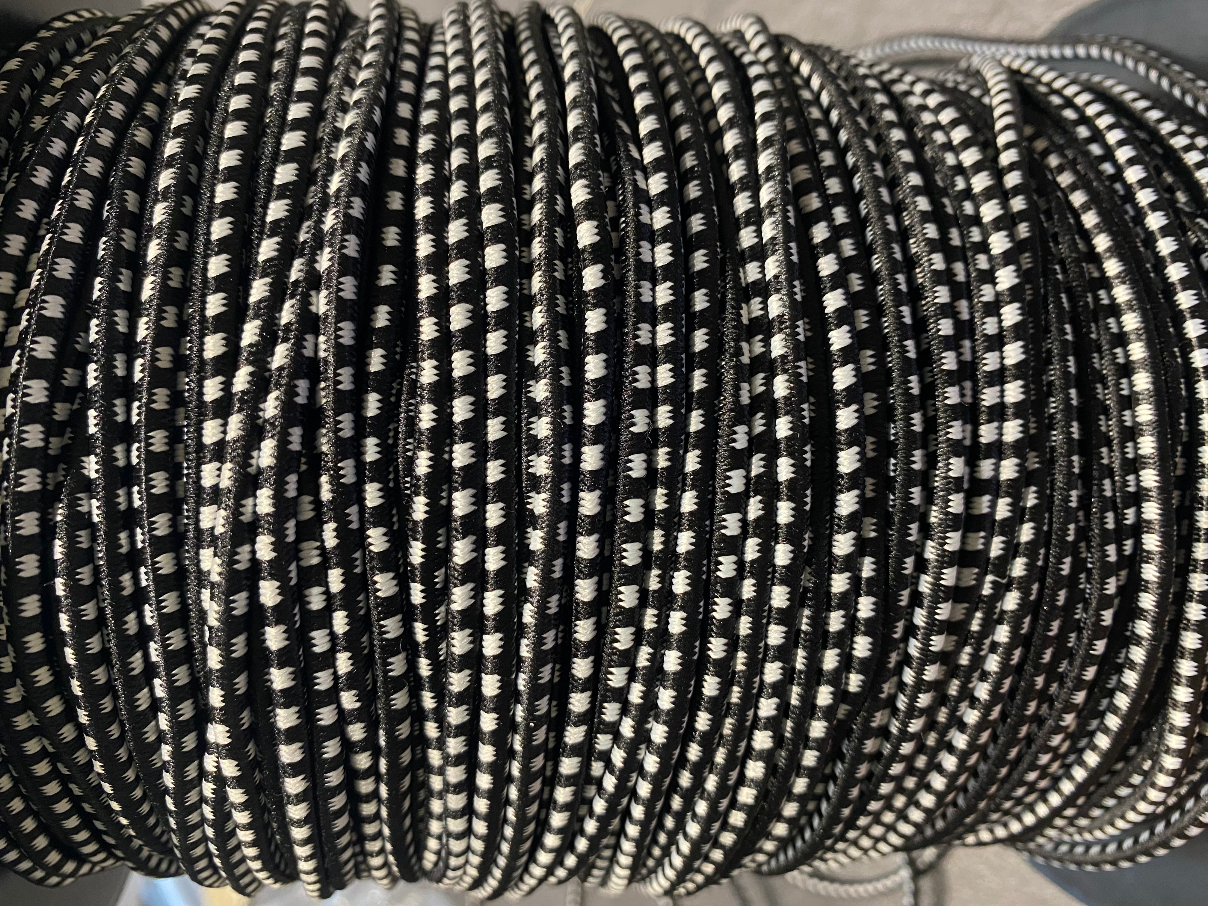 CORDON TRESSÉ ROND ELASTIQUE BLANC ET NOIR 5mm