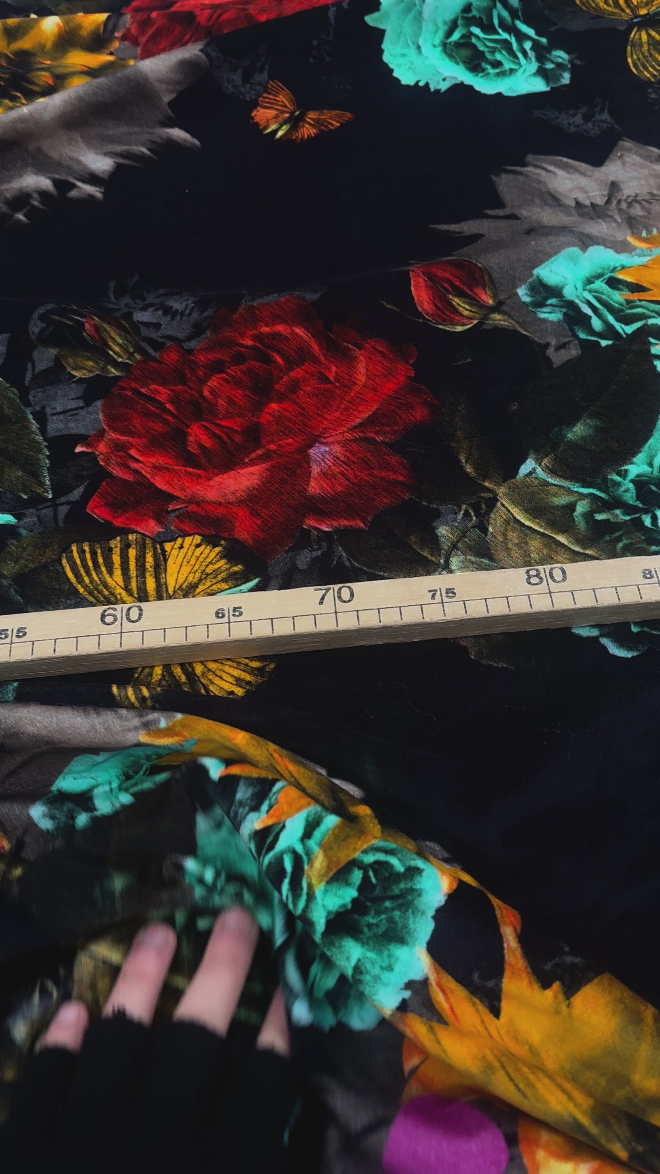 VELOURS DE COTON IMPRIMĂ FLORAL ET PAPILLONS BLACK