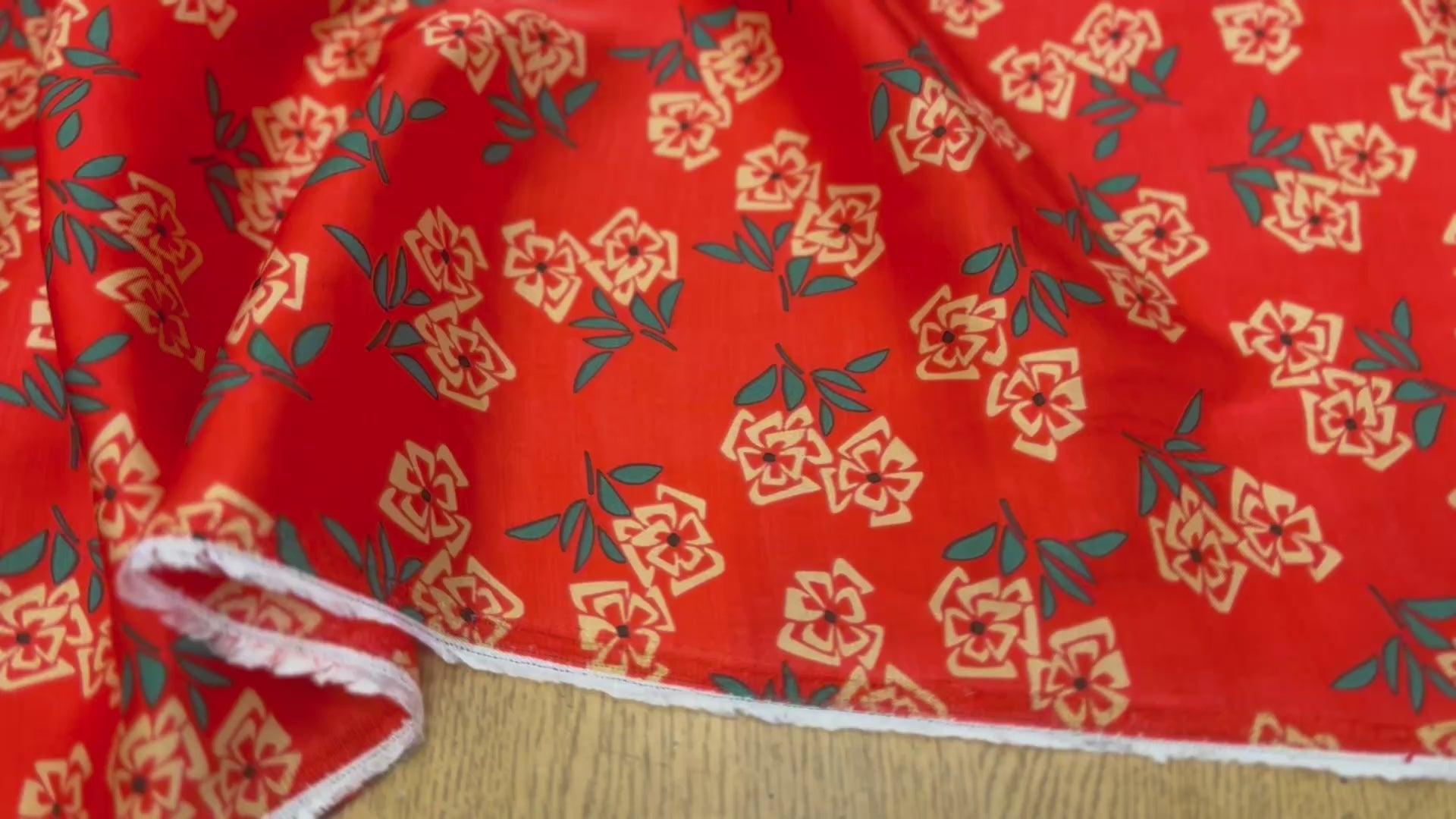 SATIN VISCOSE IMPRIMÉ FLEURS FOND CORAIL SUPER FLUIDE