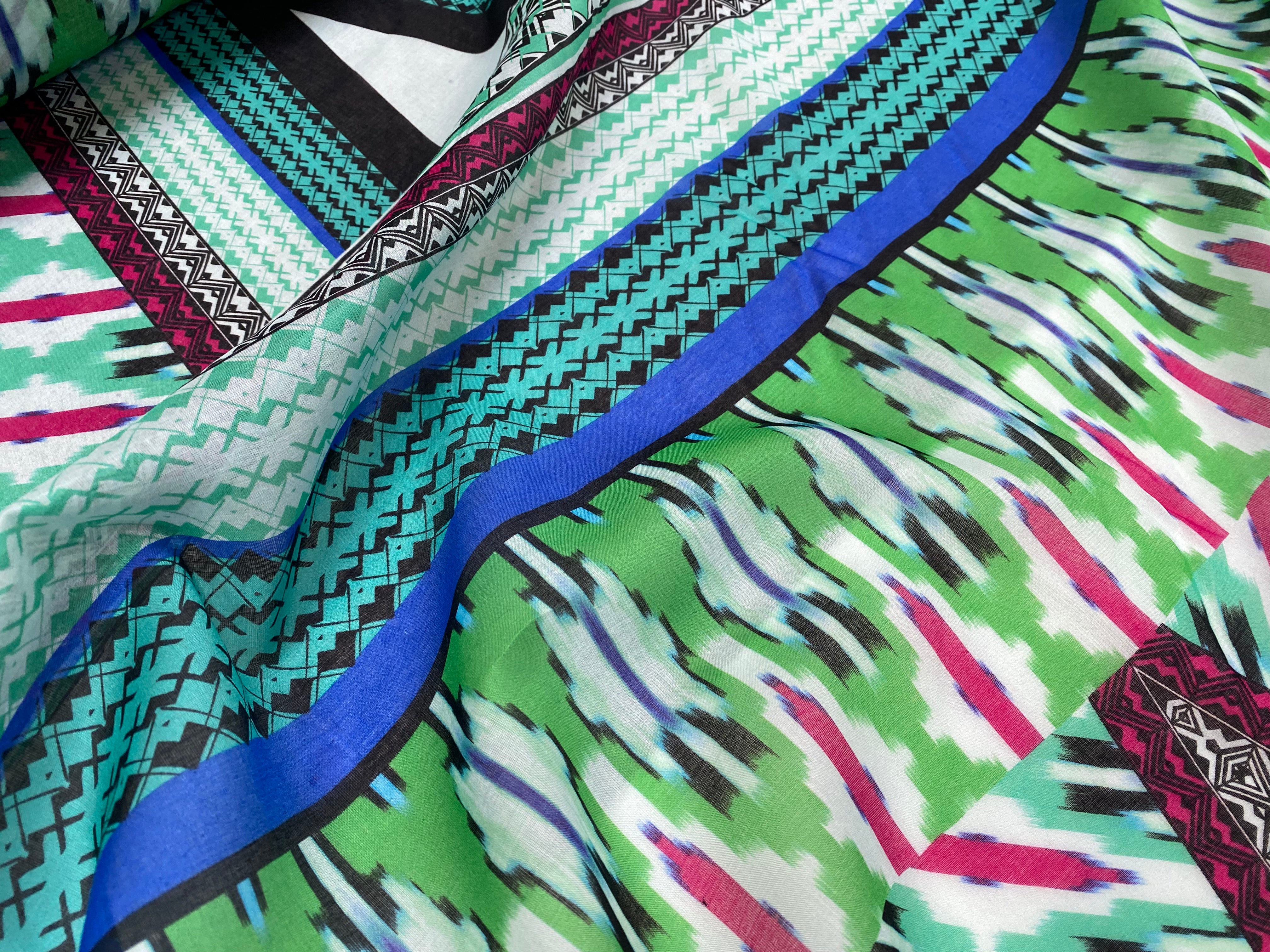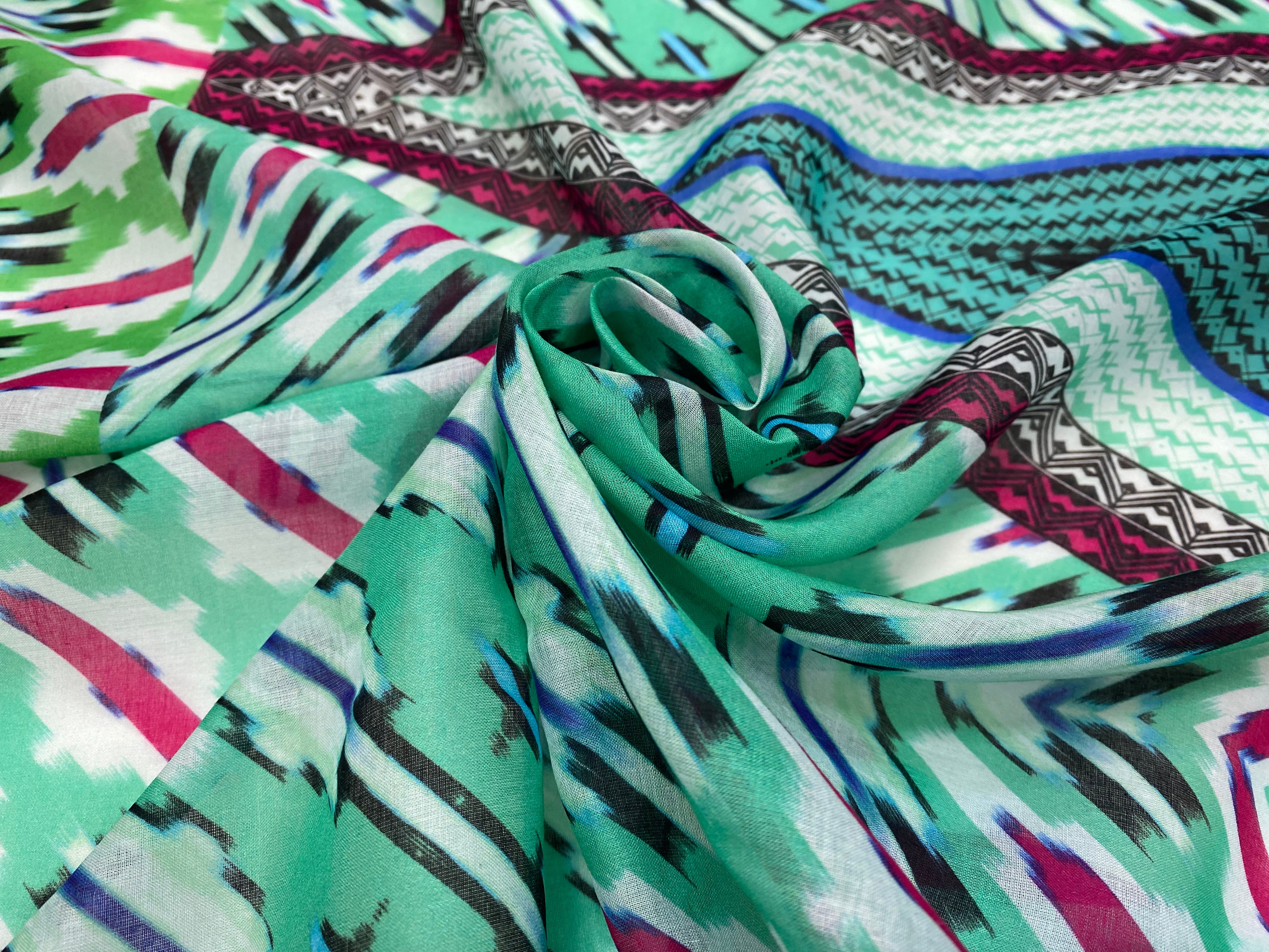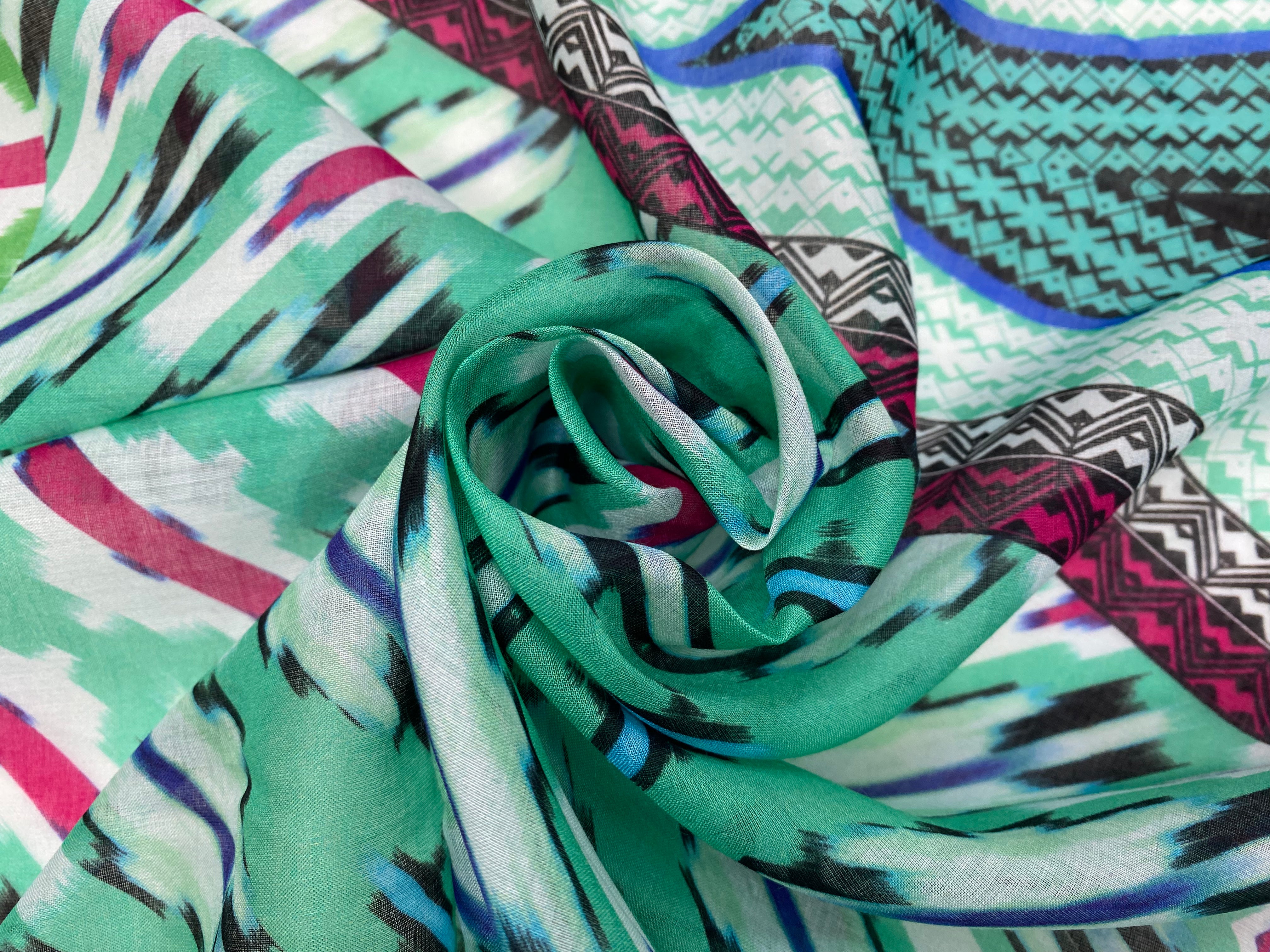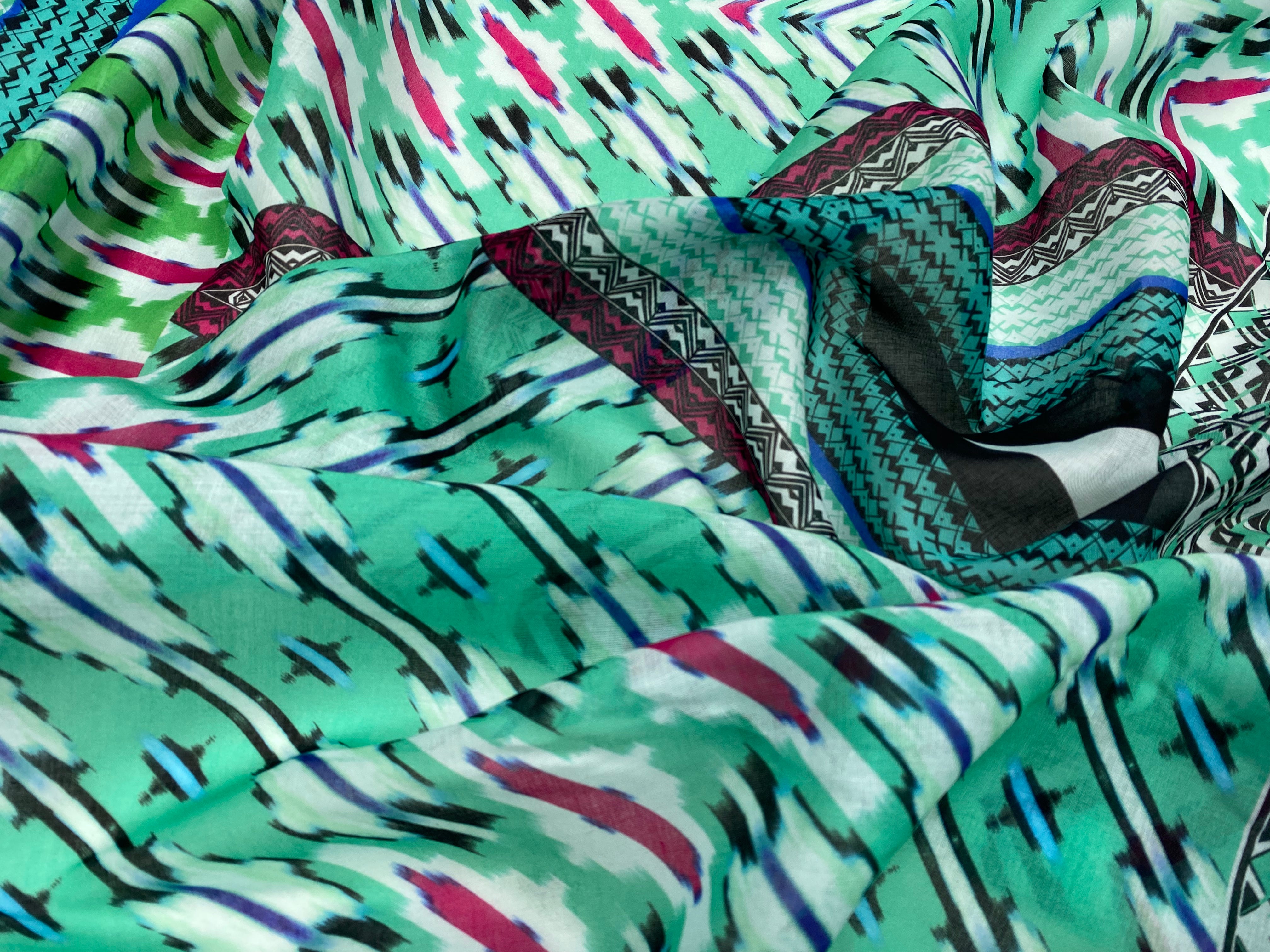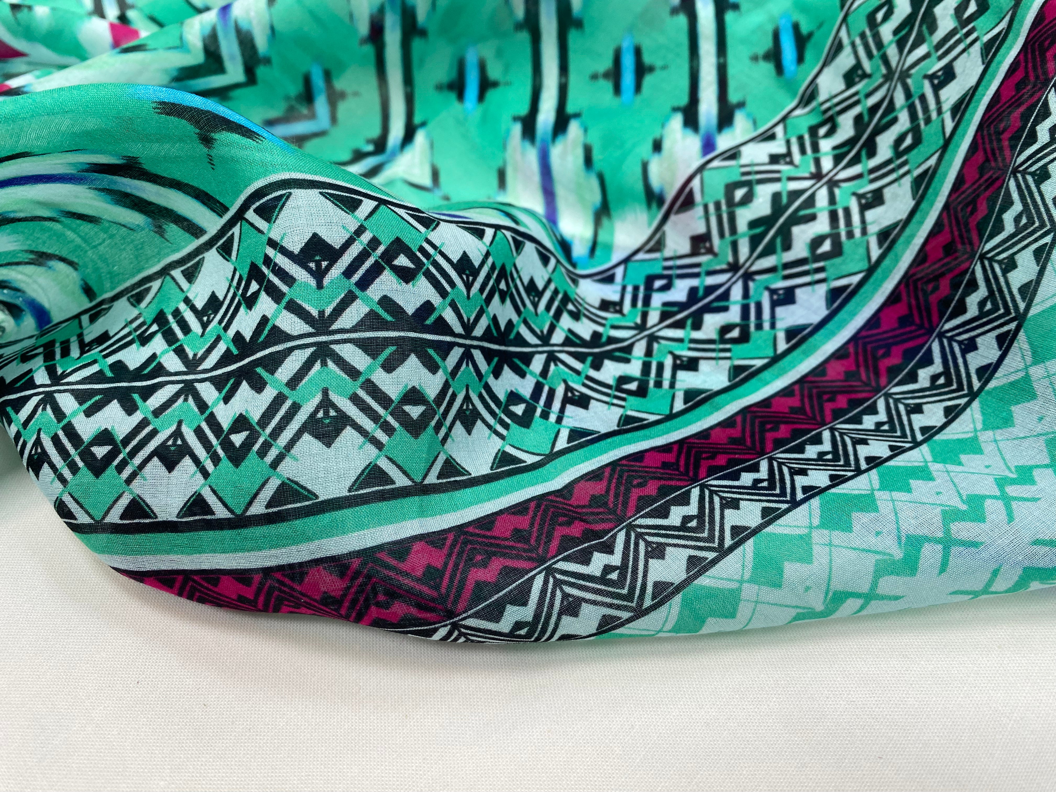 VOILE DE COTON GÉOMETRIE BORDURE ETHNIQUE