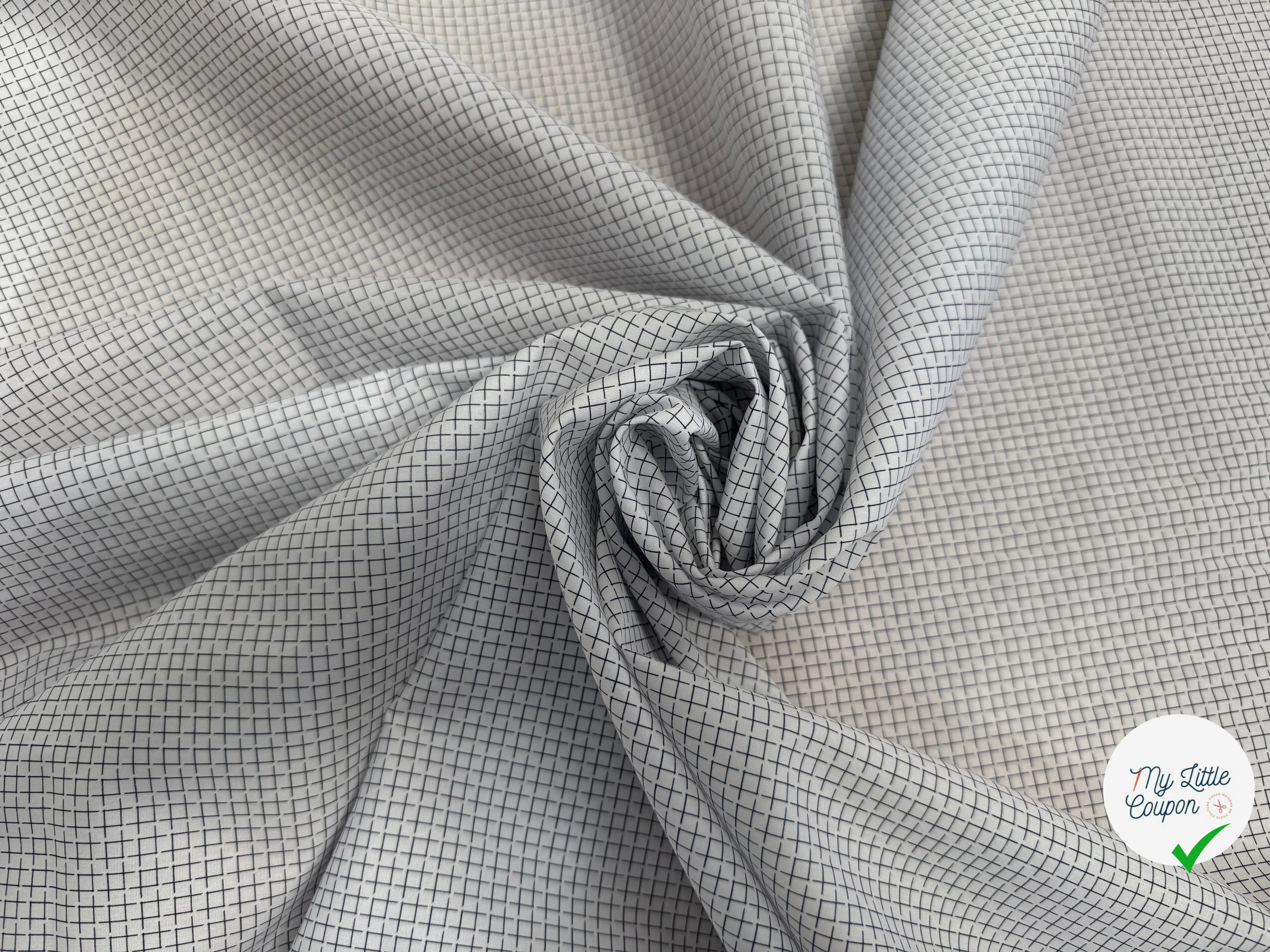Dieses Baumwolle dünne FOND weiß À CARREAUX NOIR, entworfen in Italien, verkörpert zeitlose Eleganz und überlegene Qualität. Mit einer breite von 151 cm bietet es eine großzügige Fläche für verschiedene Nähprojekte und vereint Praktikabilität und Raffinesse.