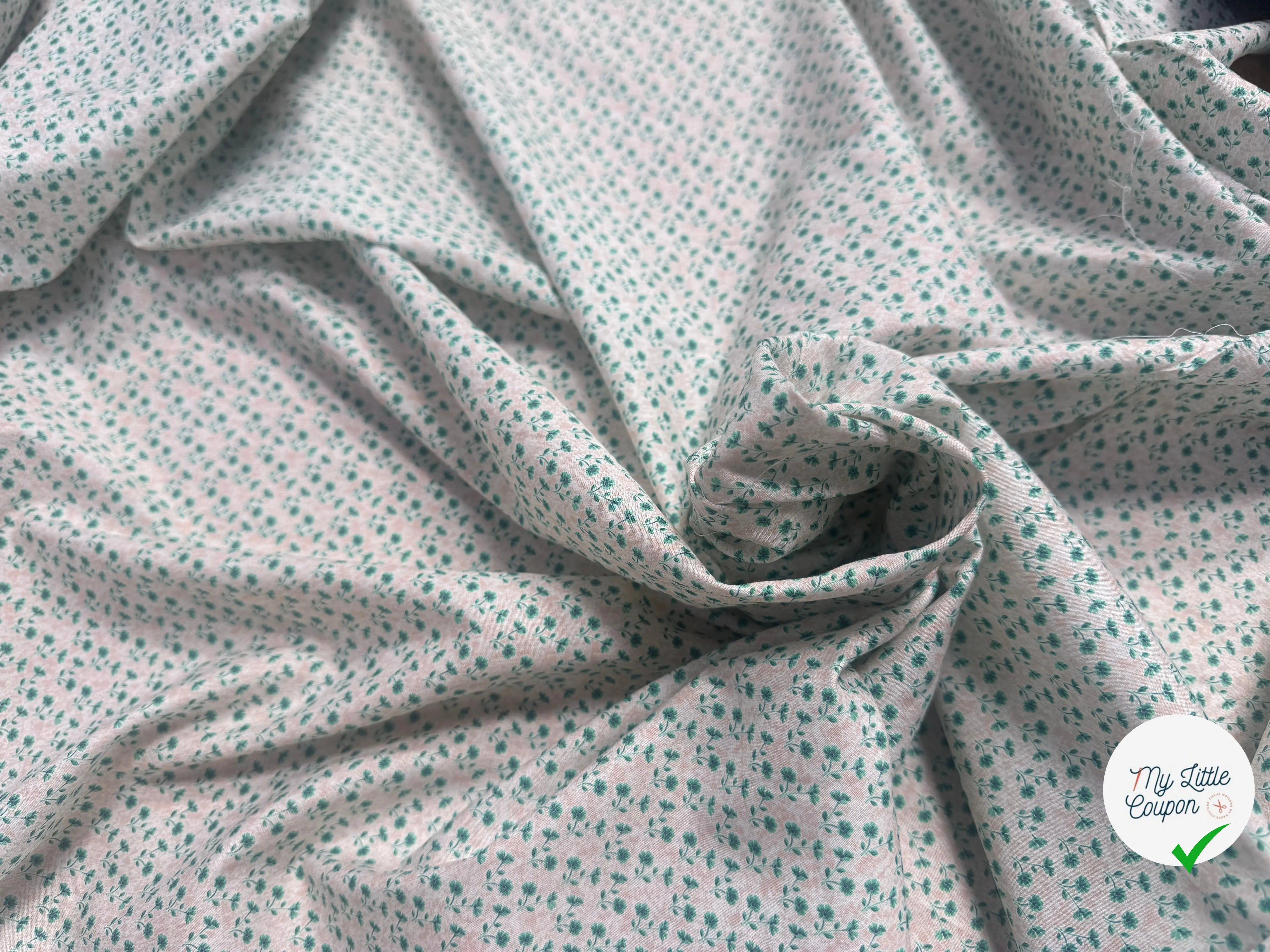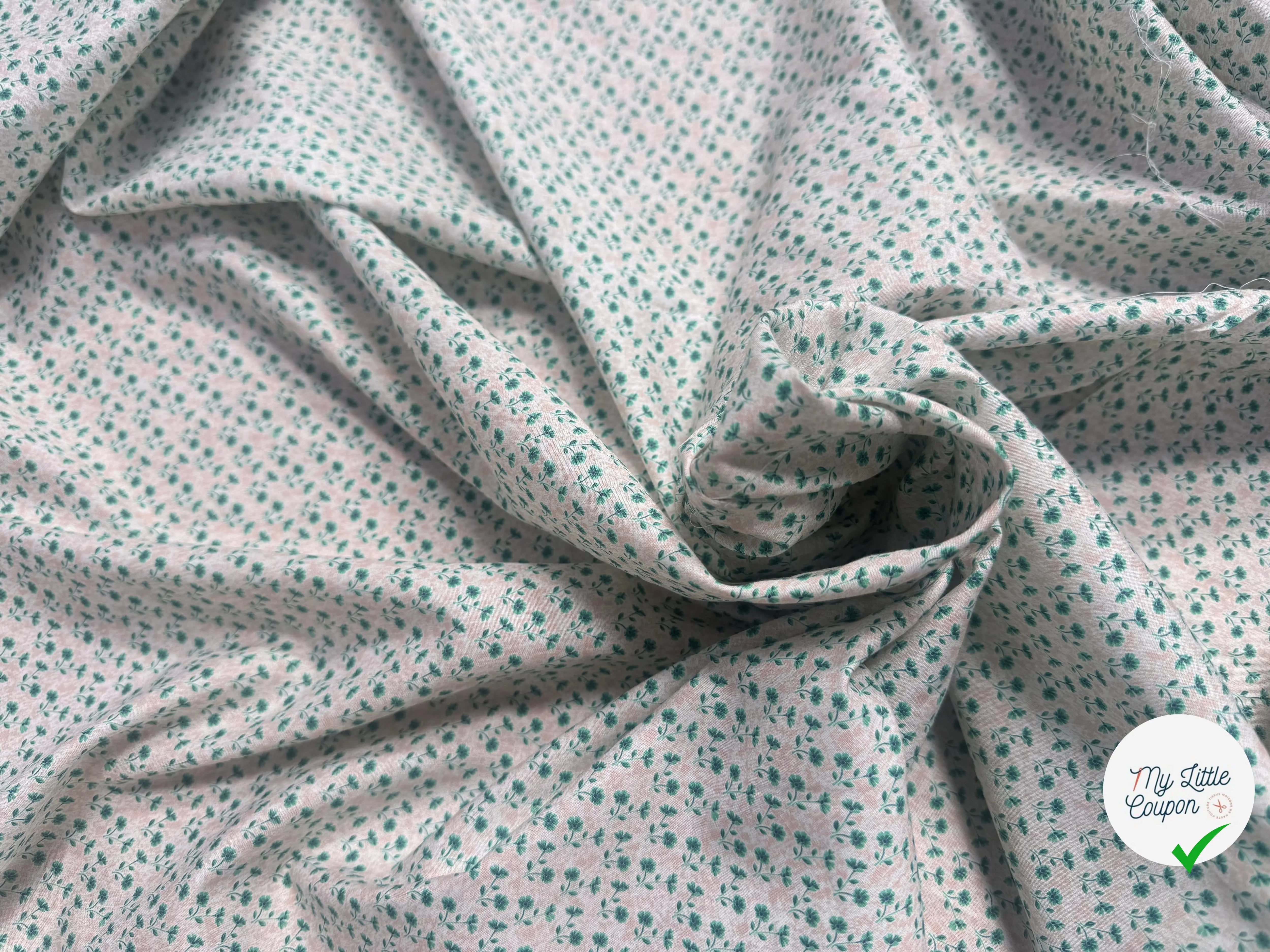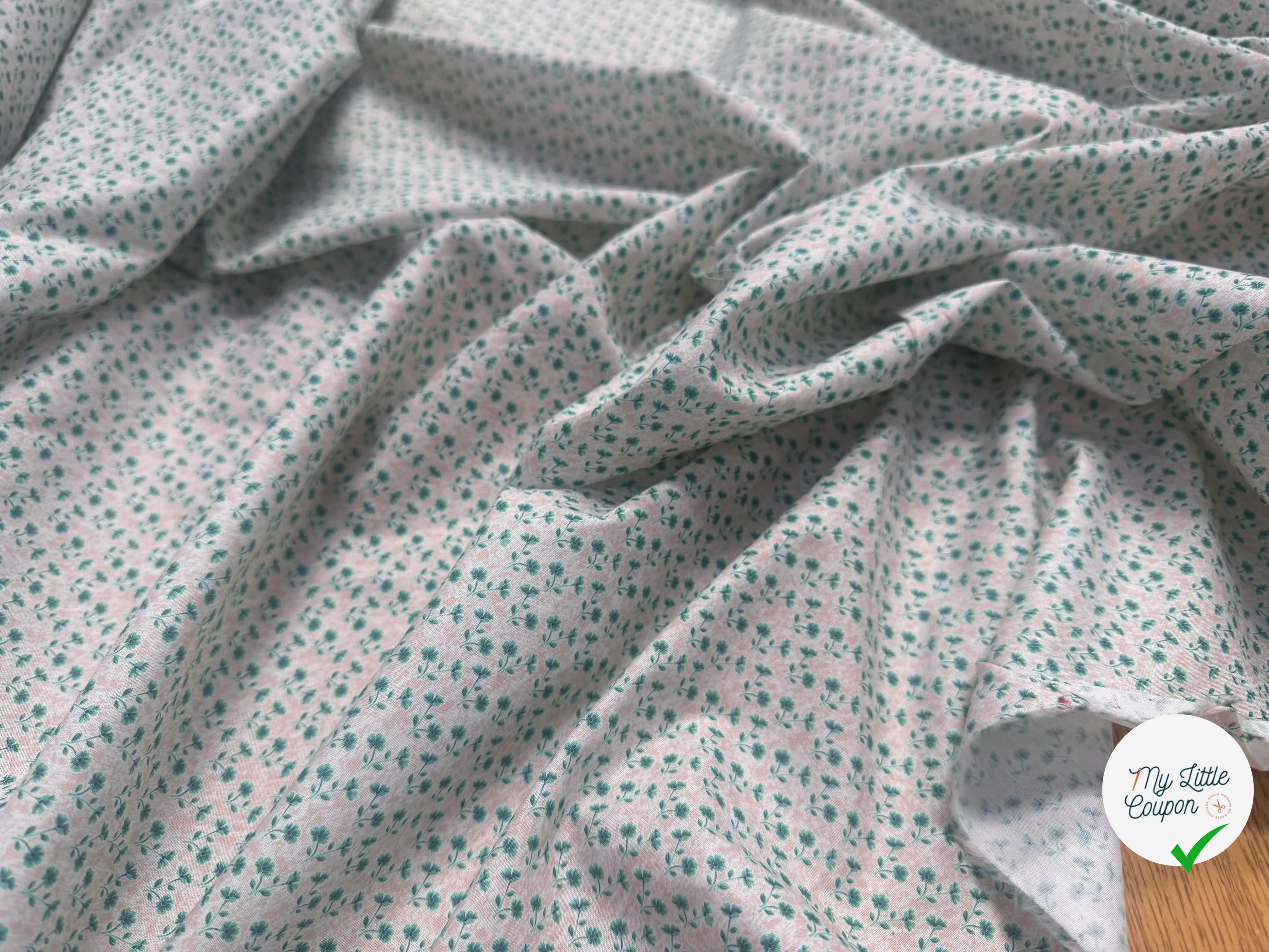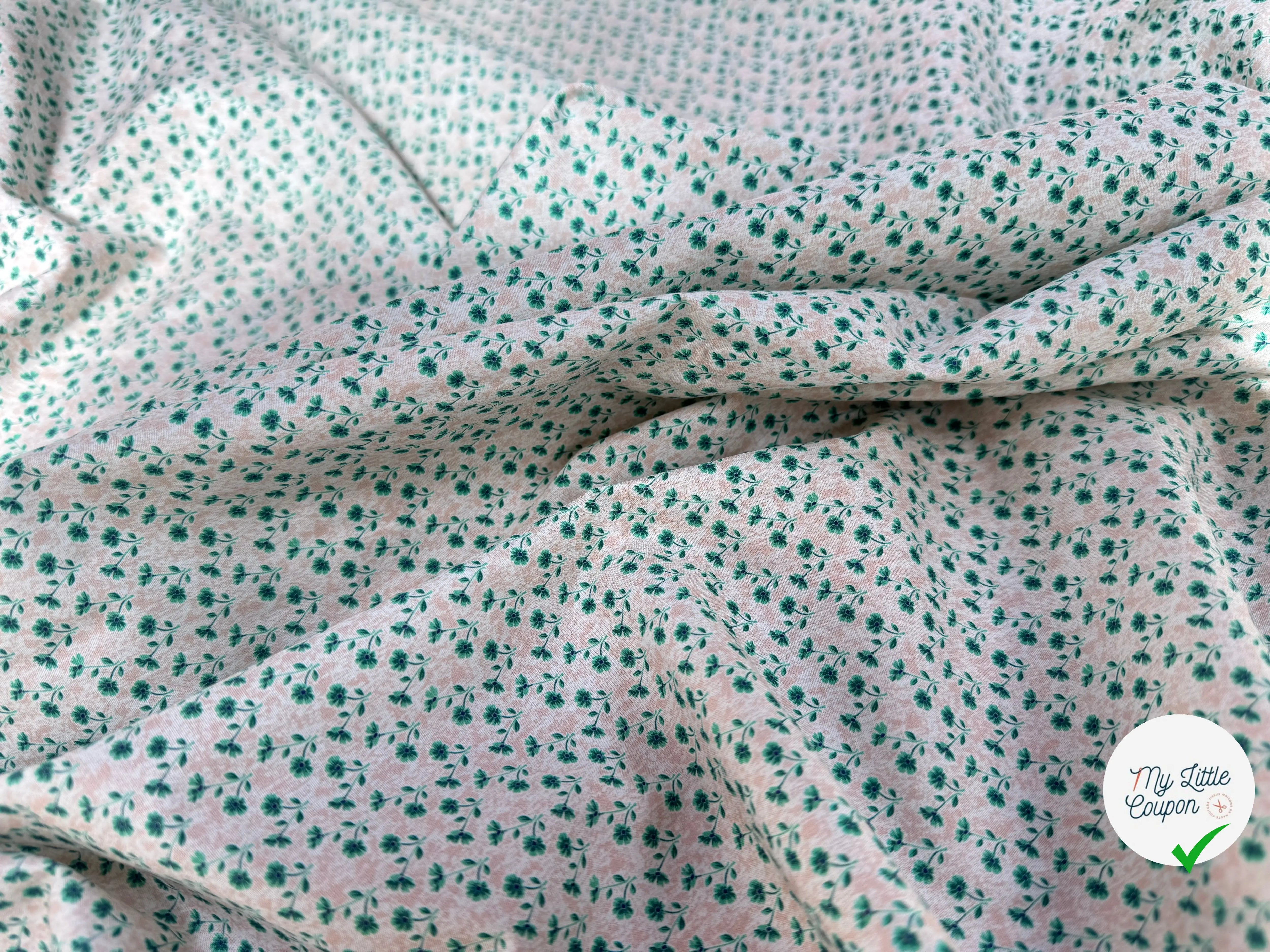 Entdecken Sie unser POPELINE Baumwolle KLEINE GRÜNE BLUMEN AUF ROSA PFIRSICH, ein stoff von außergewöhnlicher Qualität, hergestellt in Italien, das für Qualität und Eleganz steht. Mit einer breite von 151 cm bietet dieses stoff Ihnen große Flexibilität für verschiedene Nähprojekte.