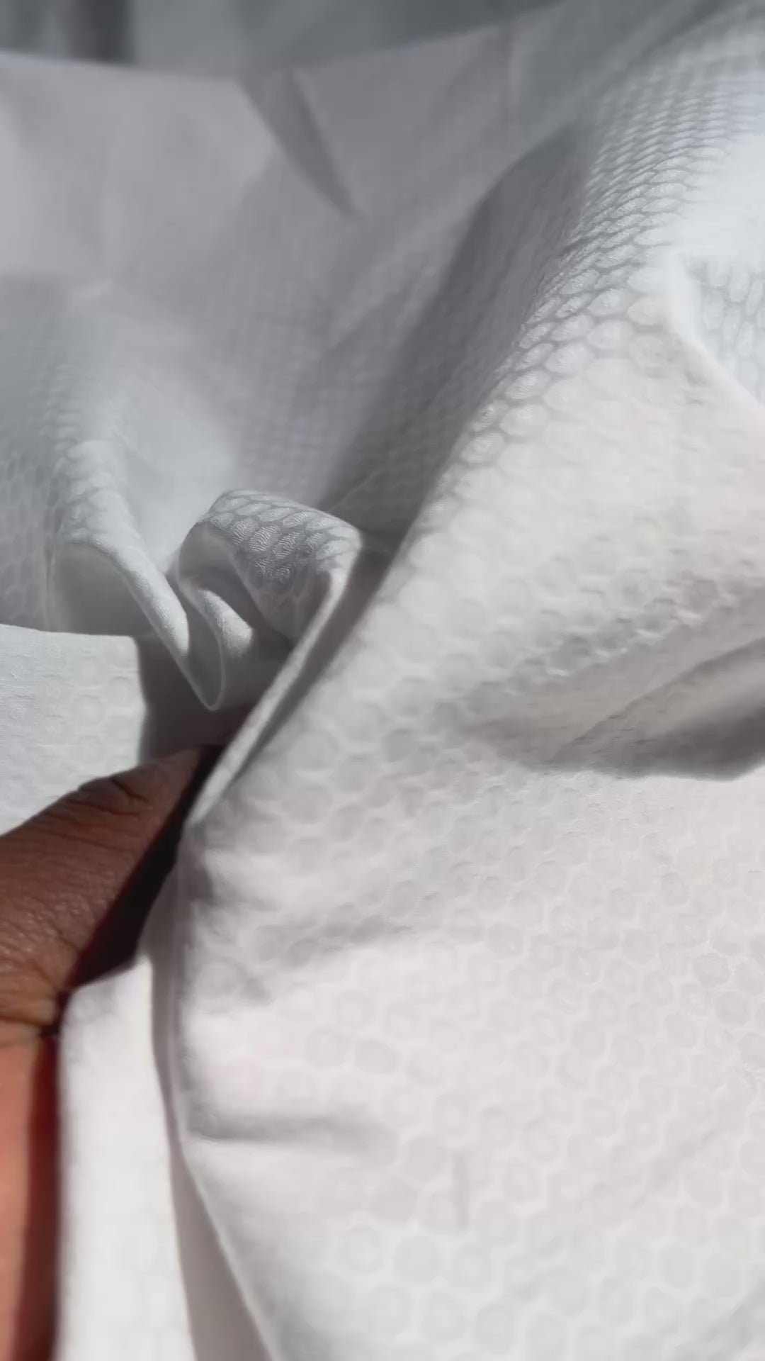 Entdecken Sie unser wunderschönes popeline weiß jacquard kreisförmiges Muster, ein stoff raffiniertes, das all Ihre Nähkreationen aufwerten wird. Sorgfältig in Italien gefertigt, kombiniert dieses stoff Eleganz und Komfort, perfekt für vielfältige Realisierungen.